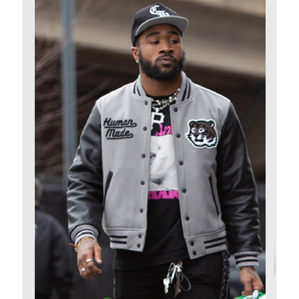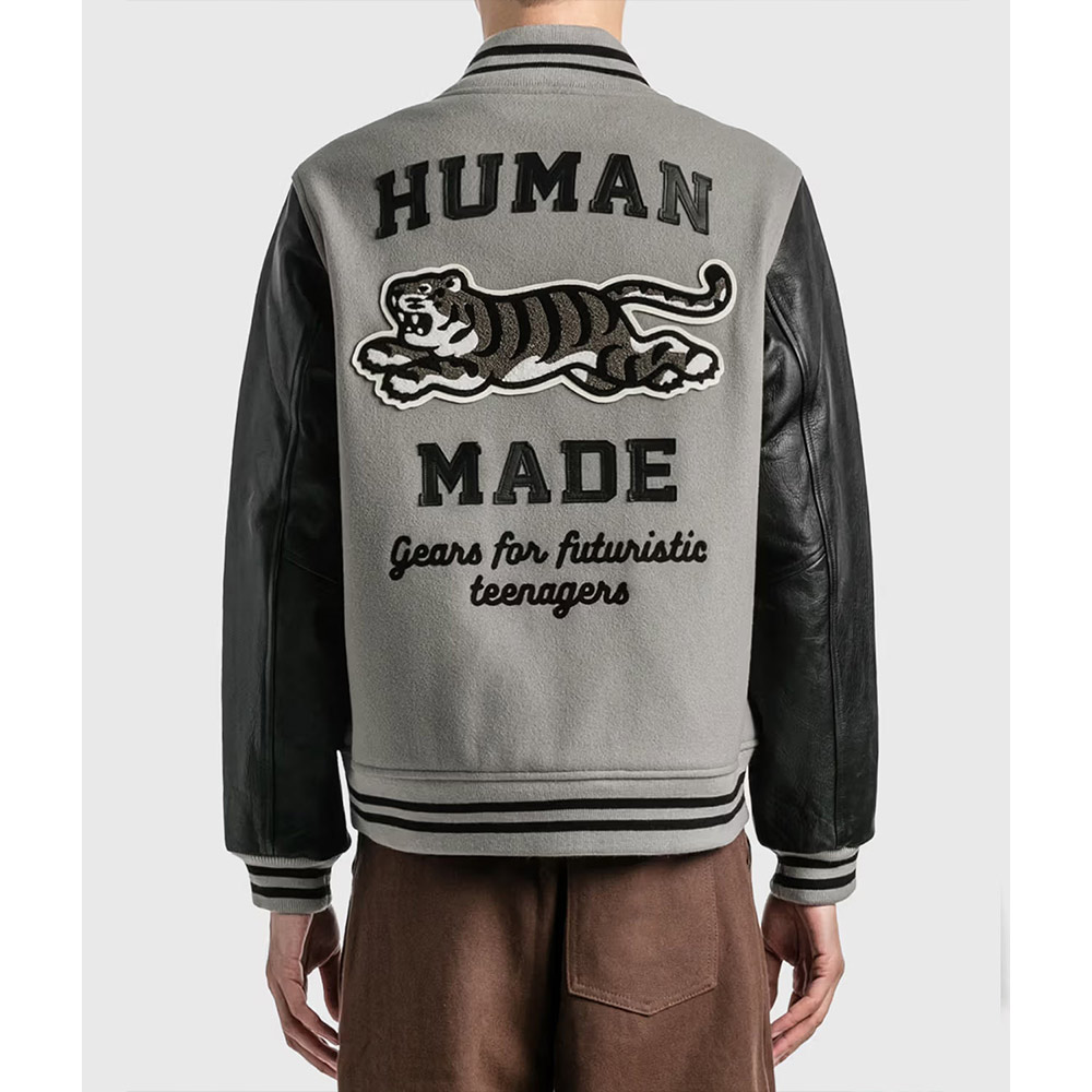 Miles Sanders Human Made Gray and Black Varsity Wool/Leather Jacket