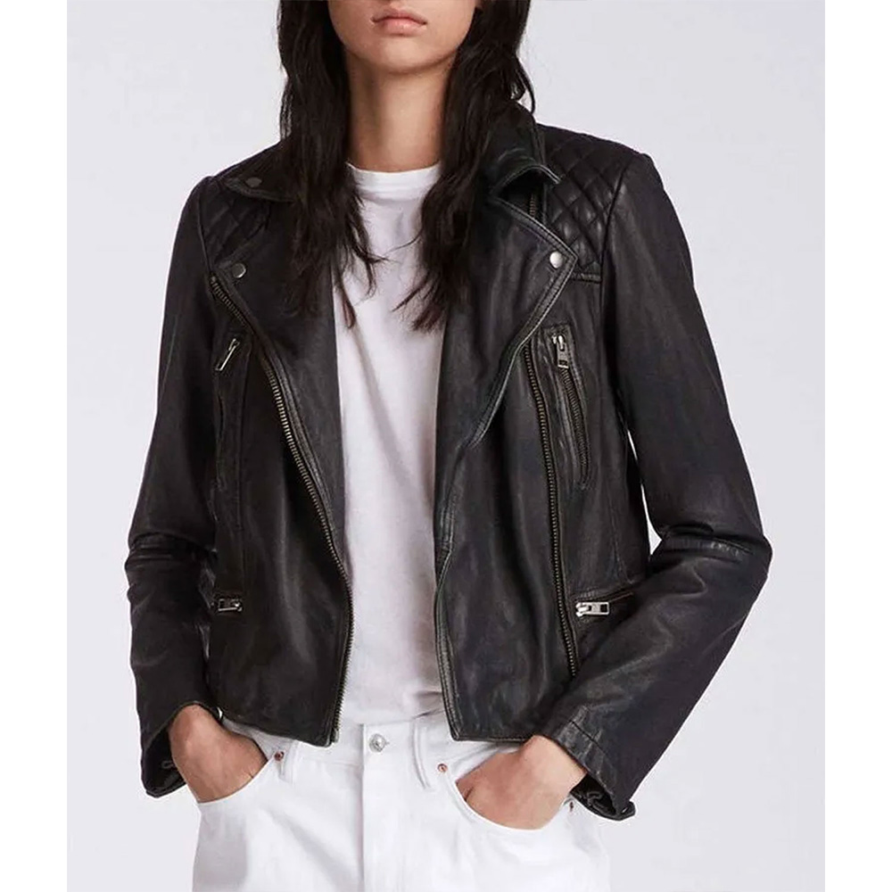Hypnotic Diana Cruz Biker Quilted Black Leather Jacket