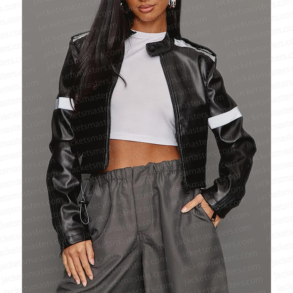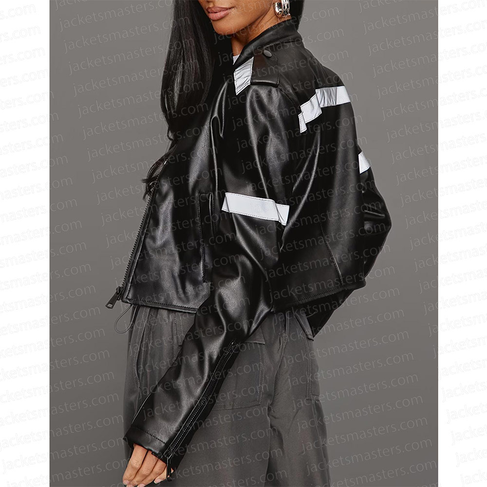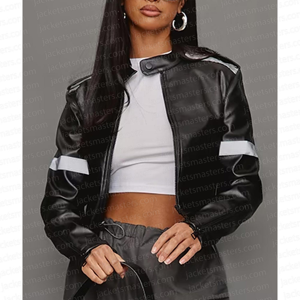 Love Island Indiyah Polack Black Leather Cropped Jacket