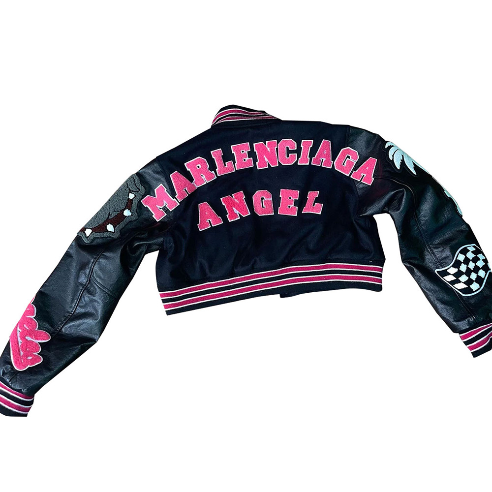 Lined with smooth Viscose, this jacket ensures a luxurious feel against your skin, making it as comfortable as it is stylish. Whether you’re hitting the streets or heading out for a night on the town, the Marlenciaga Angel Varsity Jacket is the ultimate fashion statement that combines elegance, comfort, and urban flair. Embrace the allure of high fashion with this must-have piece and make a bold fashion statement wherever you go.