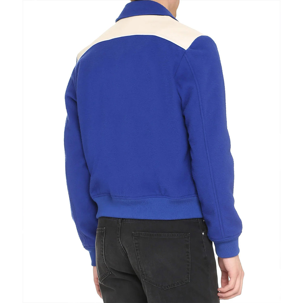 Expertly tailored from high-quality wool, this varsity jacket offers durability and warmth while maintaining a sleek, polished look. The royal blue color enhances its visual appeal, making it eye-catching without being overwhelming. A shirt-style collar and full-snap buttoned closure add elegance and ease of wear, making it versatile enough for both casual outings and elevated occasions.