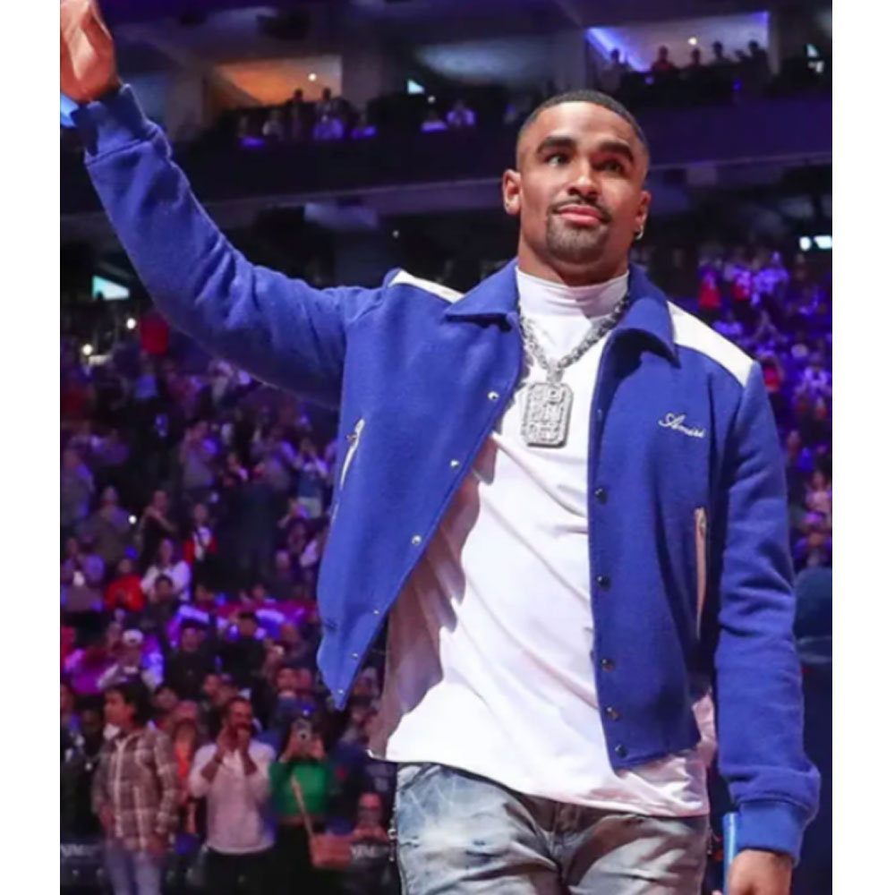 Varsity jackets, also known as letterman jackets, carry a long tradition in American sports and pop culture. As noted by Wikipedia, these jackets started as team uniforms and later evolved into global fashion staples. The Amiri Jalen Hurts Varsity Jacket continues this legacy with a luxurious and modern twist.