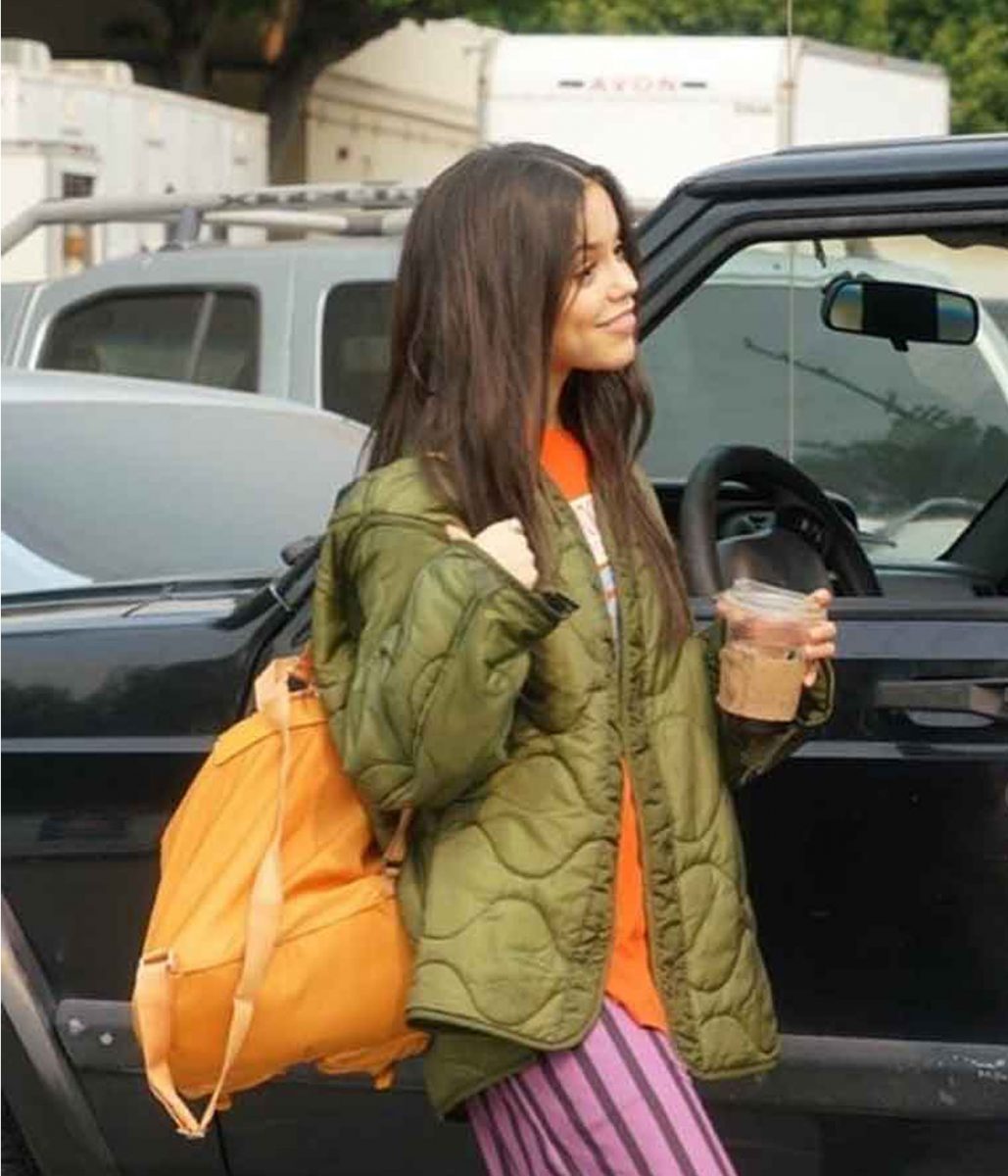 Vada Cavell Jacket is fabricated from satin. The alluring orange jacket has a collarless design with buttoned closure. The sleeves of The Fallout Jenna Ortega Green Jacket are full with open hem cuffs. The jacket is comfortable to wear as it has soft viscose lining on the inside. To keep things the jacket has two waist pockets outside and two pockets inside. Fine quality stitching of The Fallout Vada Cavell Jacket adds to its perfection.