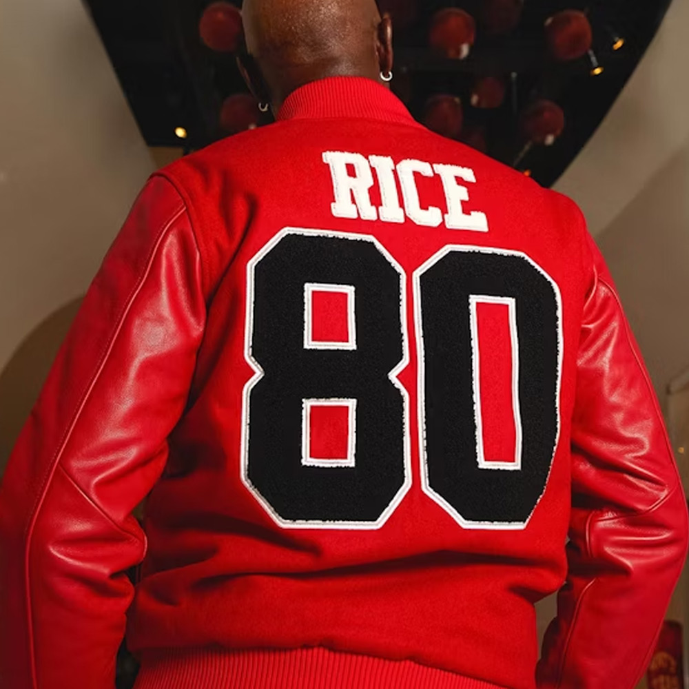 San Francisco 49ers Jerry Rice Varsity Red Wool/Leather Jacket
