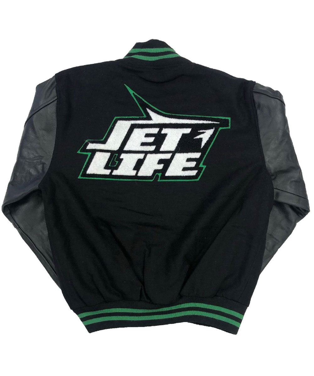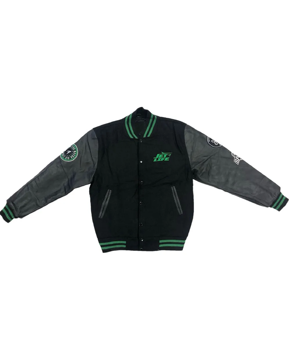 The Never Die Corporation Jet Life Varsity Black and Green Jacket