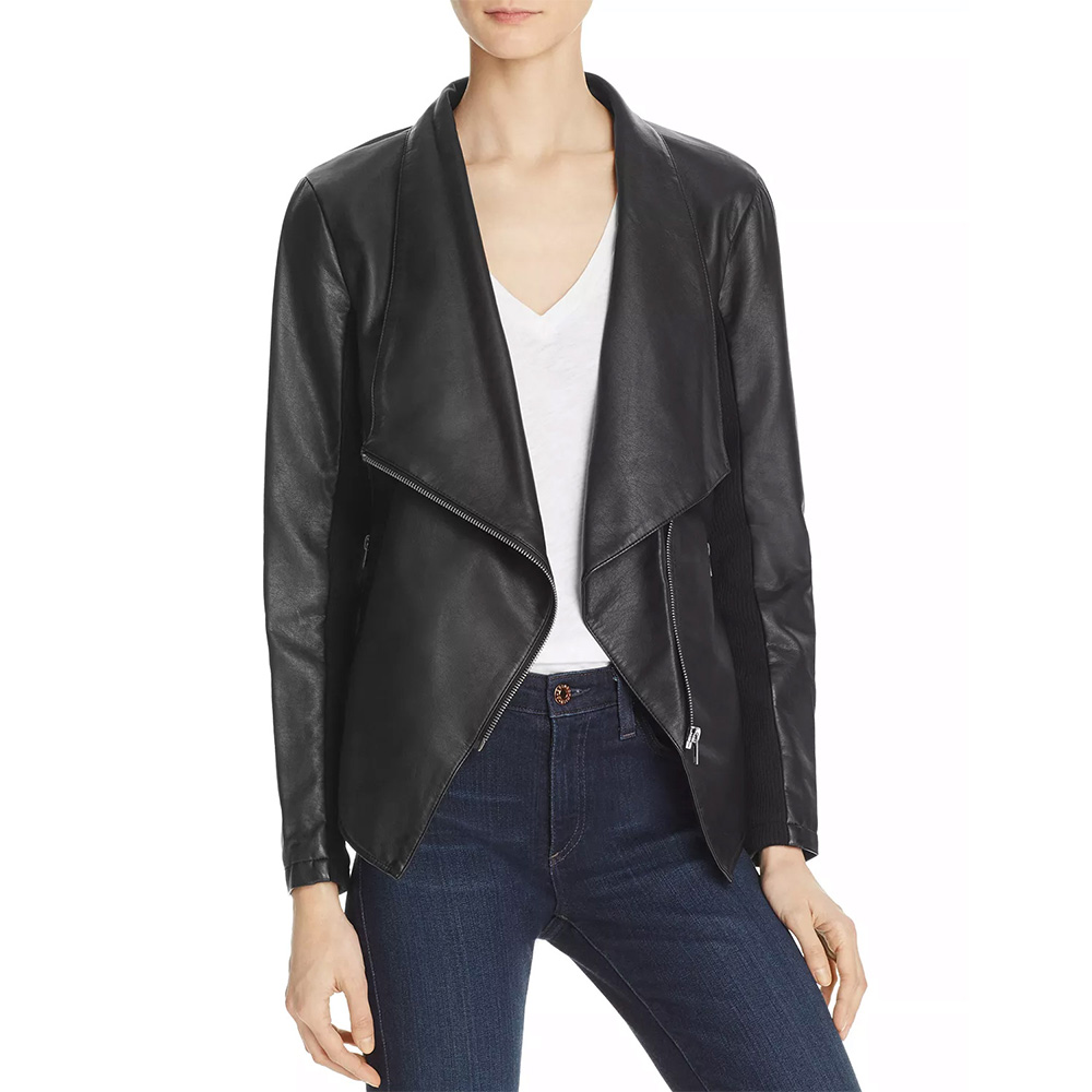Embark on a journey through the world of love and drama with the “Bachelorette Jojo Fletcher Black Draped Leather Jacket.” As worn by Jojo Fletcher, this black leather jacket is more than just clothing; it’s a symbol of individuality and enigmatic charm. Wrapped in a soft viscose lining, it cocoons you in comfort as you navigate your own love story. The draped-style collar adds a unique and sophisticated touch, setting it apart from ordinary jackets. The open front closure seamlessly merges form and function. Long sleeves with zipper cuffs evoke timeless elegance, and the Jojo Fletcher The Bachelorette Black Draped Leather Jacket boasts two side zipper pockets for added style and practicality. Meticulous craftsmanship ensures that the “Bachelorette Jojo Fletcher Black Draped Leather Jacket” isn’t just an ensemble; it’s an embodiment of your unique style and romantic spirit.