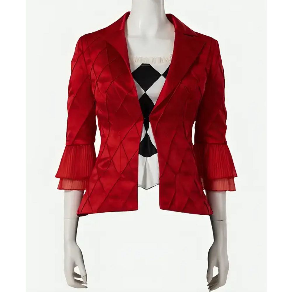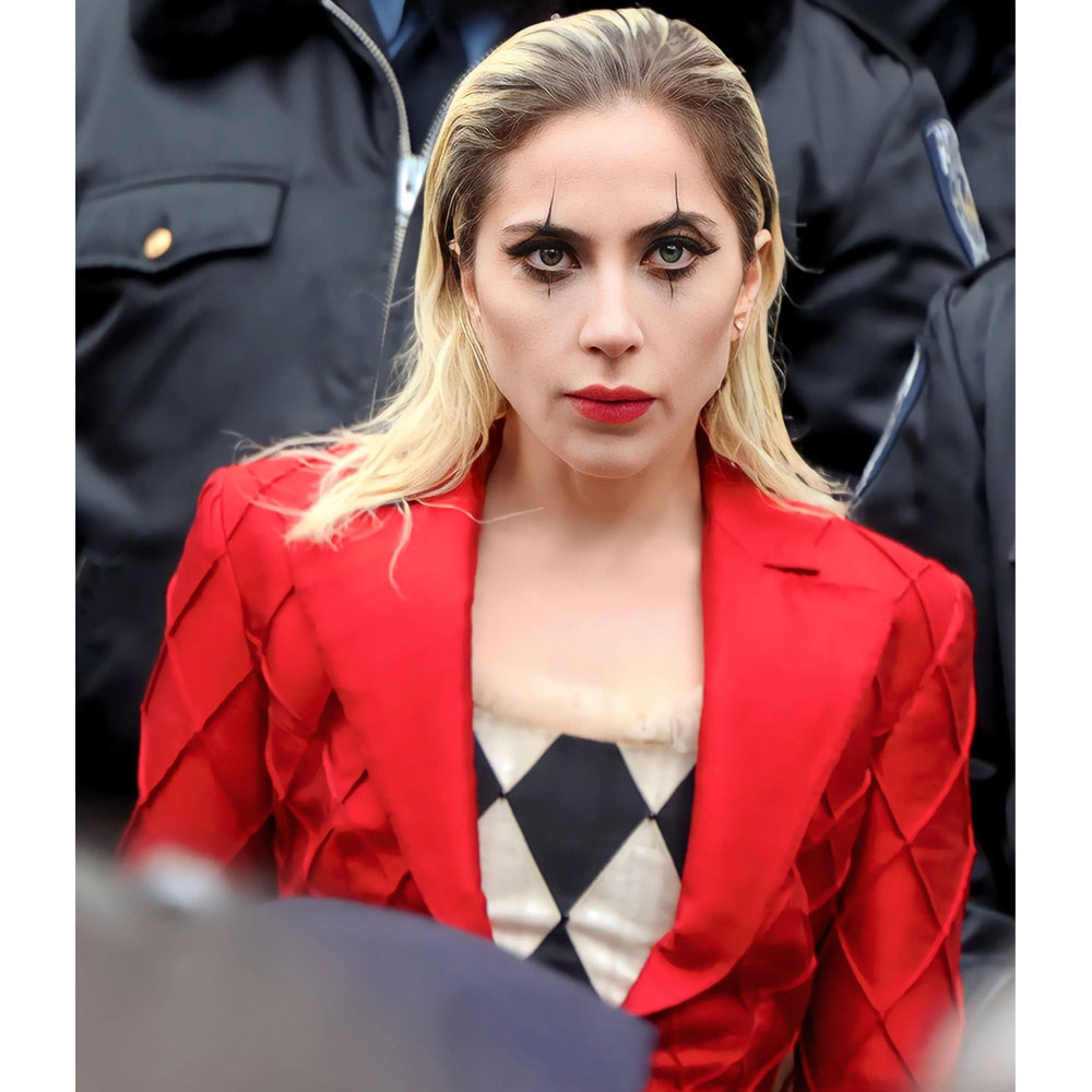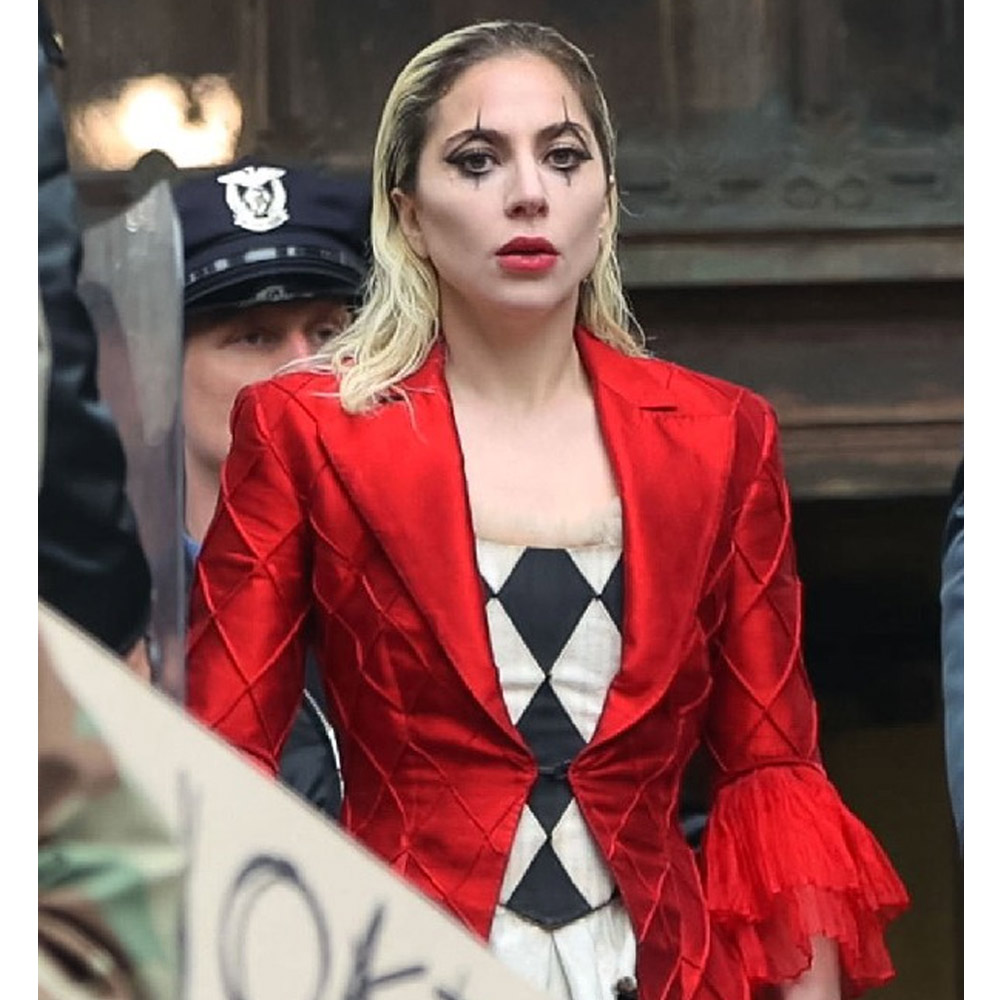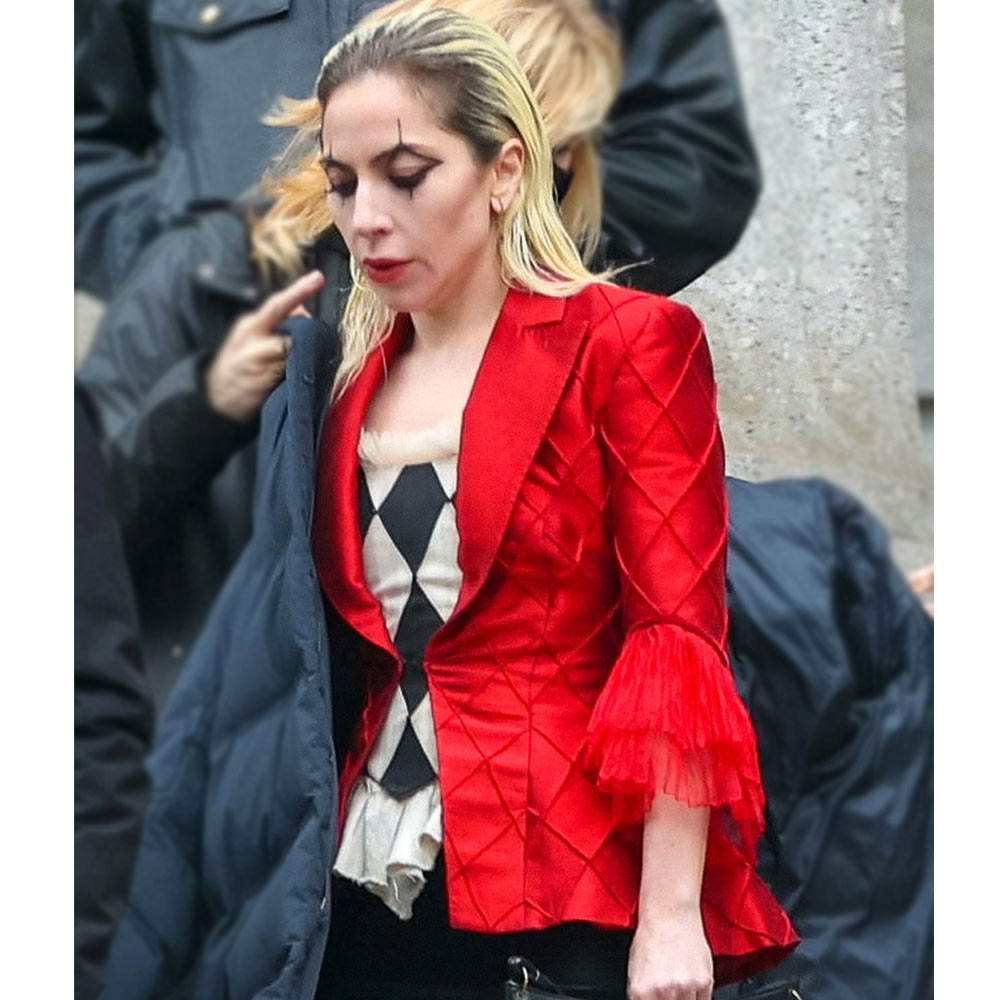 Lady Gaga Joker 2 Harley Quinn Satin Red Blazer