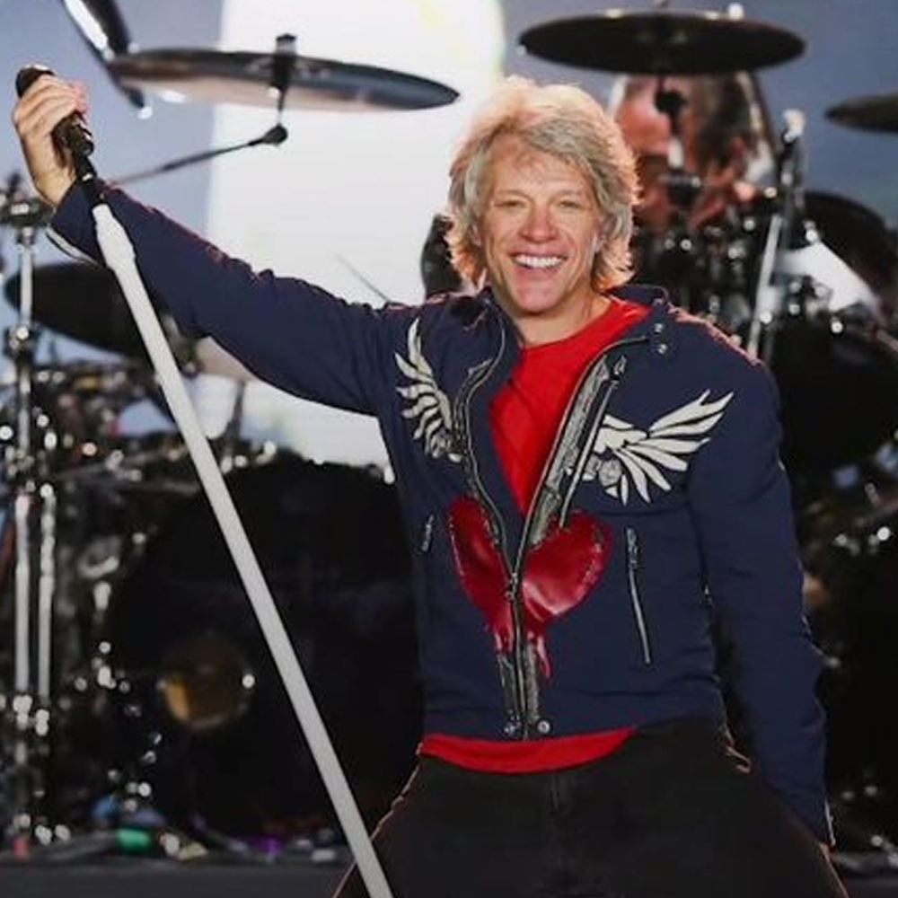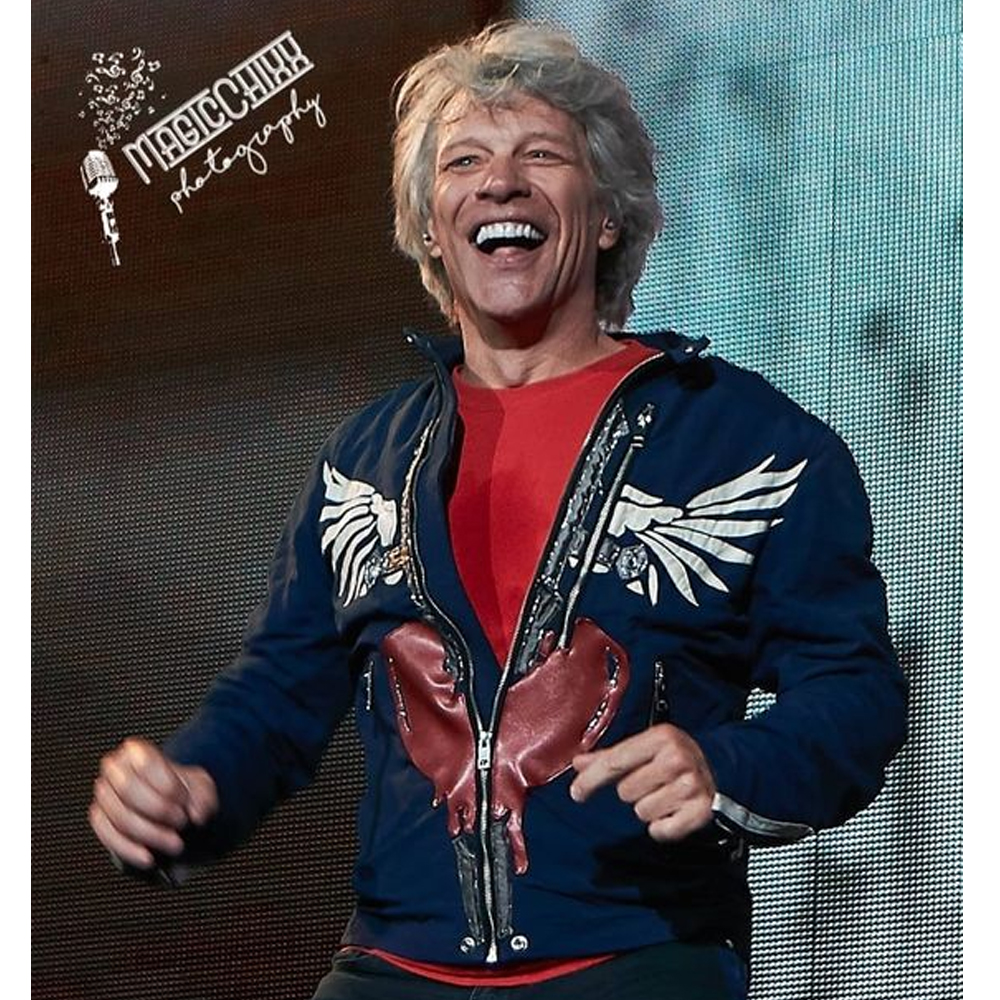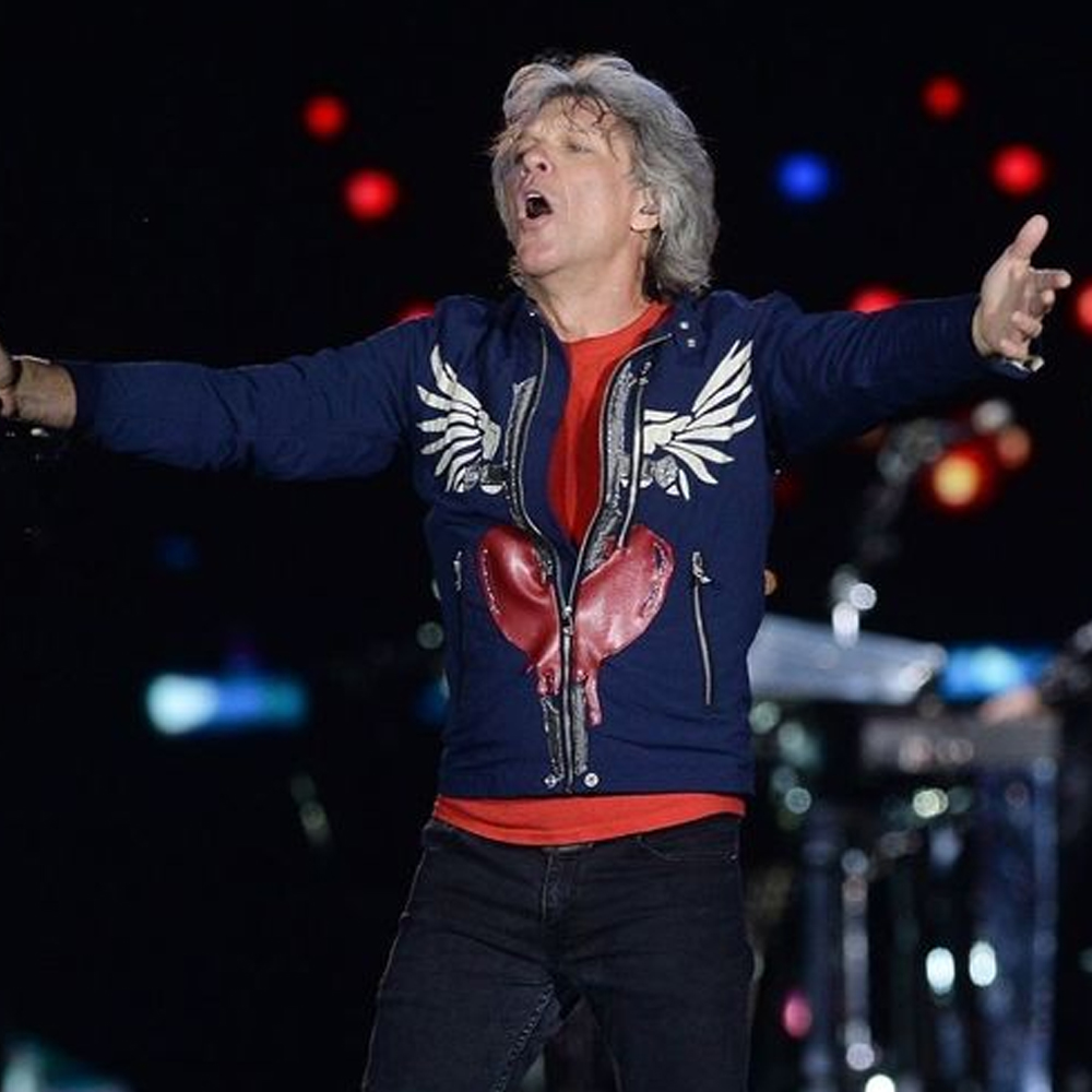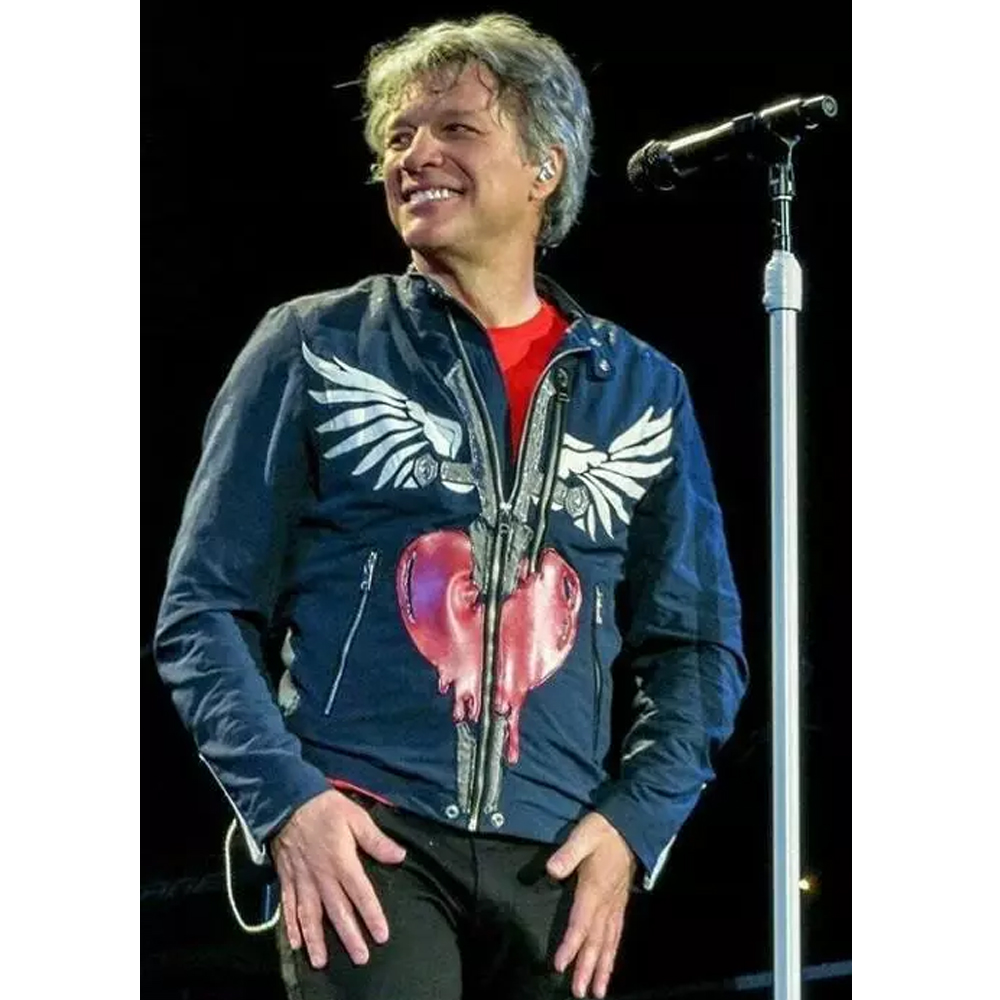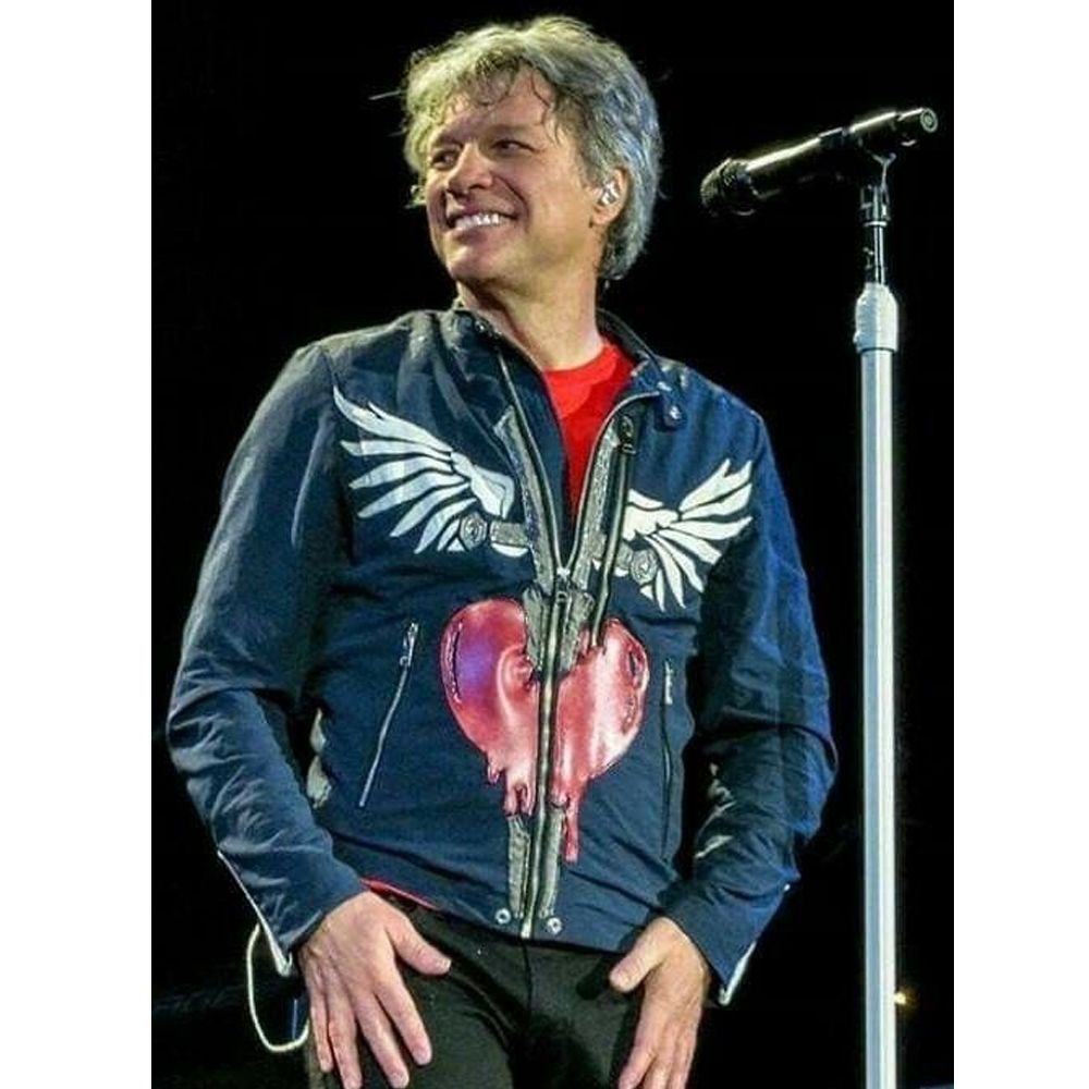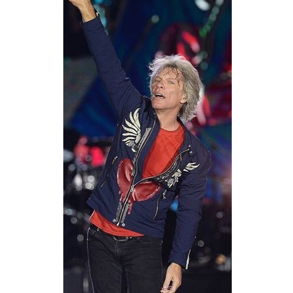 The Jon Bon Jovi jacket is made from high-quality cotton. The jacket is available in glorious blue color, which gives it an innovative and bright look. The collar of the jacket is snap tab style. It has a branded YKK front zipper closure. A soft viscose inner lining of the jacket keeps you calm and relaxed. The sleeves of the Concert 2019 Jon Bon Jovi blue jacket are full-length ends with zipper cuffs. The jacket has two side waist pockets on the inside for keeping stuff. The fine quality stitching of the Jon Bon Jovi jacket makes it durable and desirable to wear. The jacket is an ideal choice for fashion fanatics.