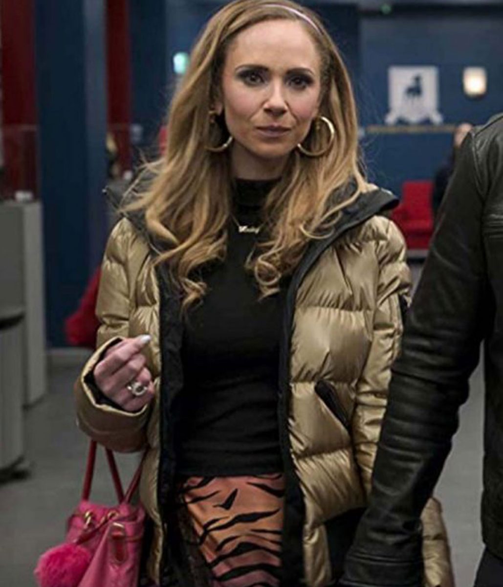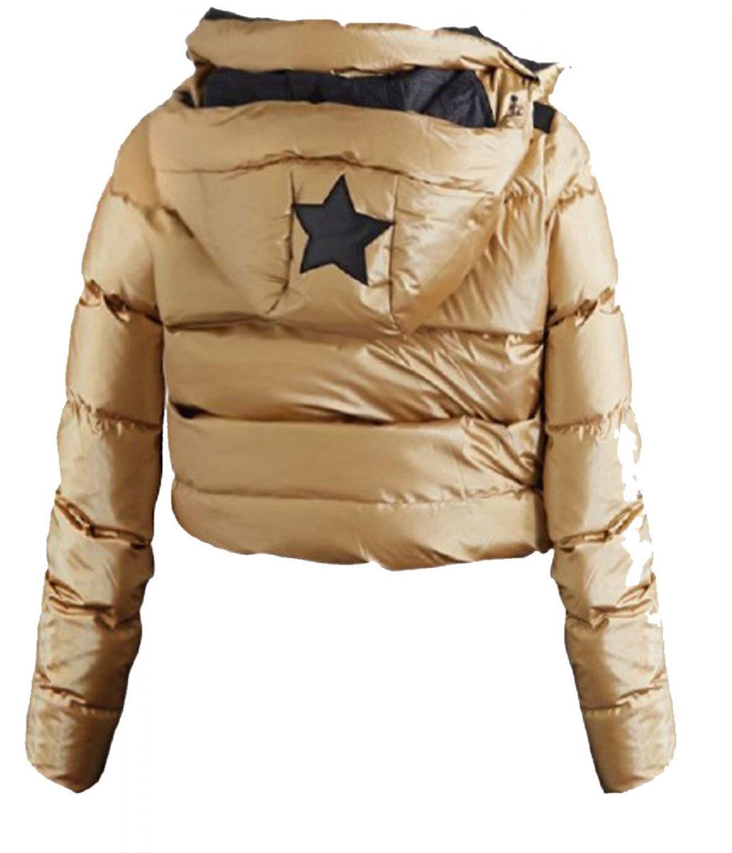 The Keeley Jones puffer jacket is made from high-quality polyester fabric. The jacket is available in glorious golden color, which gives it an innovative and bright look. The collar of the jacket is stand-up style with hood. It has a branded YKK front zipper closure. A soft viscose inner lining of the jacket keeps you calm and relaxed. The sleeves of the Ted Lasso Juno temple puffer jacket are long ends with open hem cuffs. The jacket has two side waist zipper pockets and one zipper pocket on arm for keeping stuff. The fine quality stitching of the Keeley Jones puffer jacket makes it durable and desirable to wear. The jacket is an ideal choice for stylish men.