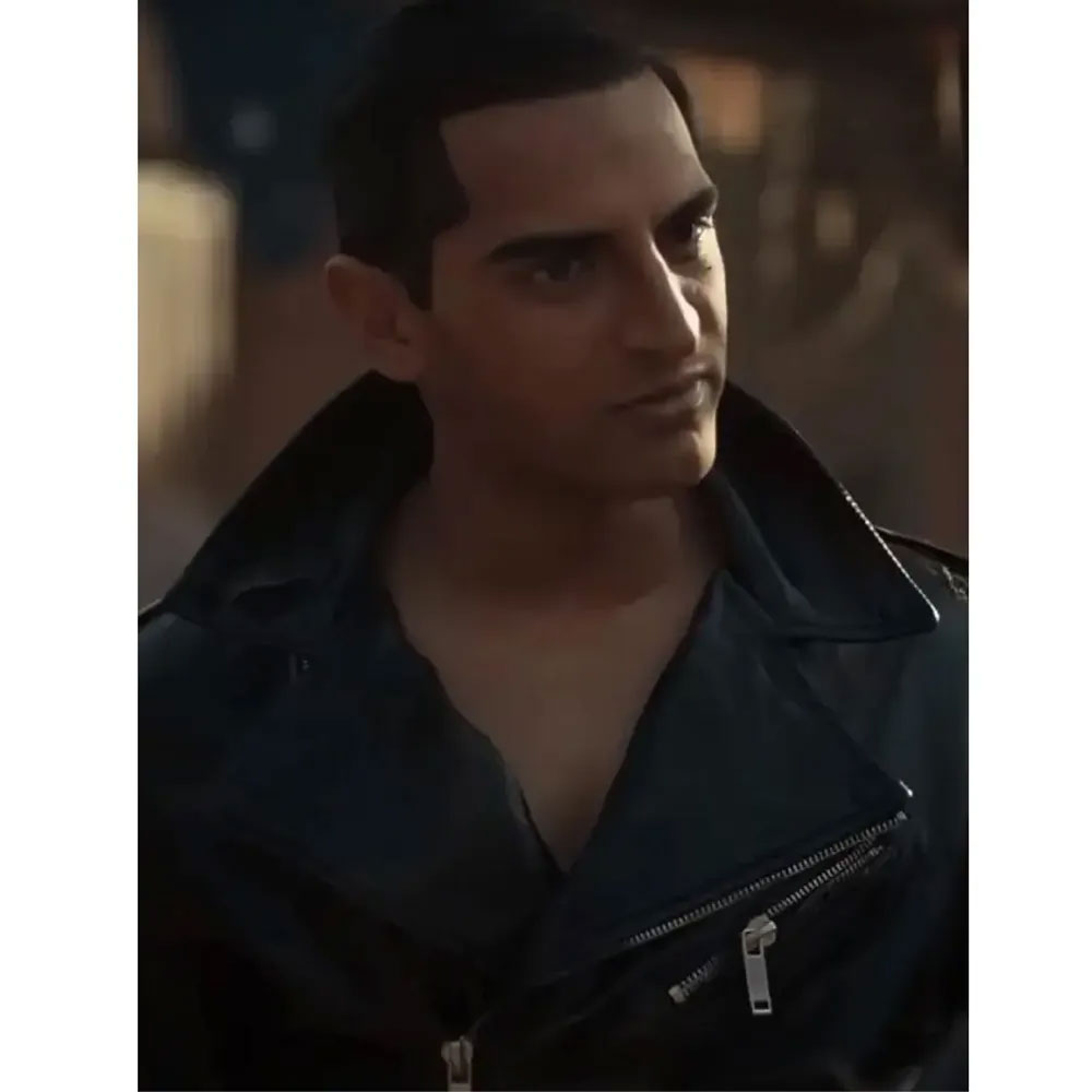 Prepare to embark on a sartorial journey like no other with the Gunslinger Leather jacket, a visionary masterpiece crafted from genuine leather the finest threads of imagination and craftsmanship. Its mesmerizing black is reminiscent of a celestial dance, where darkness and light intertwine to create a harmonious symphony of style. This Miracle Workers Season 4 Karan Soni Leather jacket boasts a lapel style collar, inspired by the elegance of a swan’s neck, gracefully embracing the wearer with an air of regality. The asymmetrical zipper front closure acts as a portal to a world where boundaries blur and possibilities abound. With its soft viscose inner lining, the Gunslinger Leather jacket becomes a wearable sanctuary, enveloping you in warmth and tranquility. Prepare to make a bold and fearless fashion statement that defies the norms and celebrates the spirit of individuality
