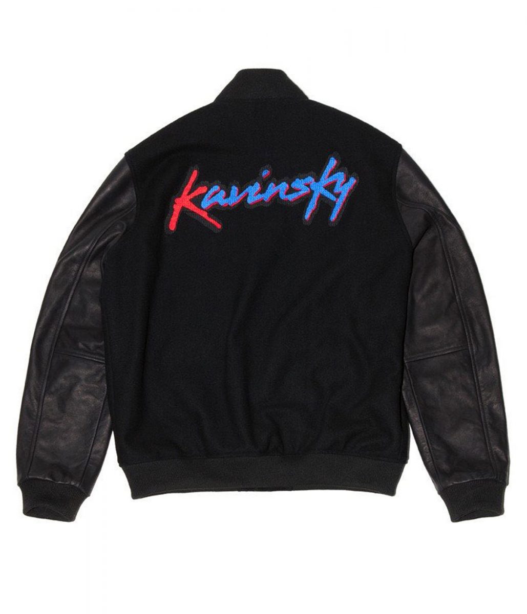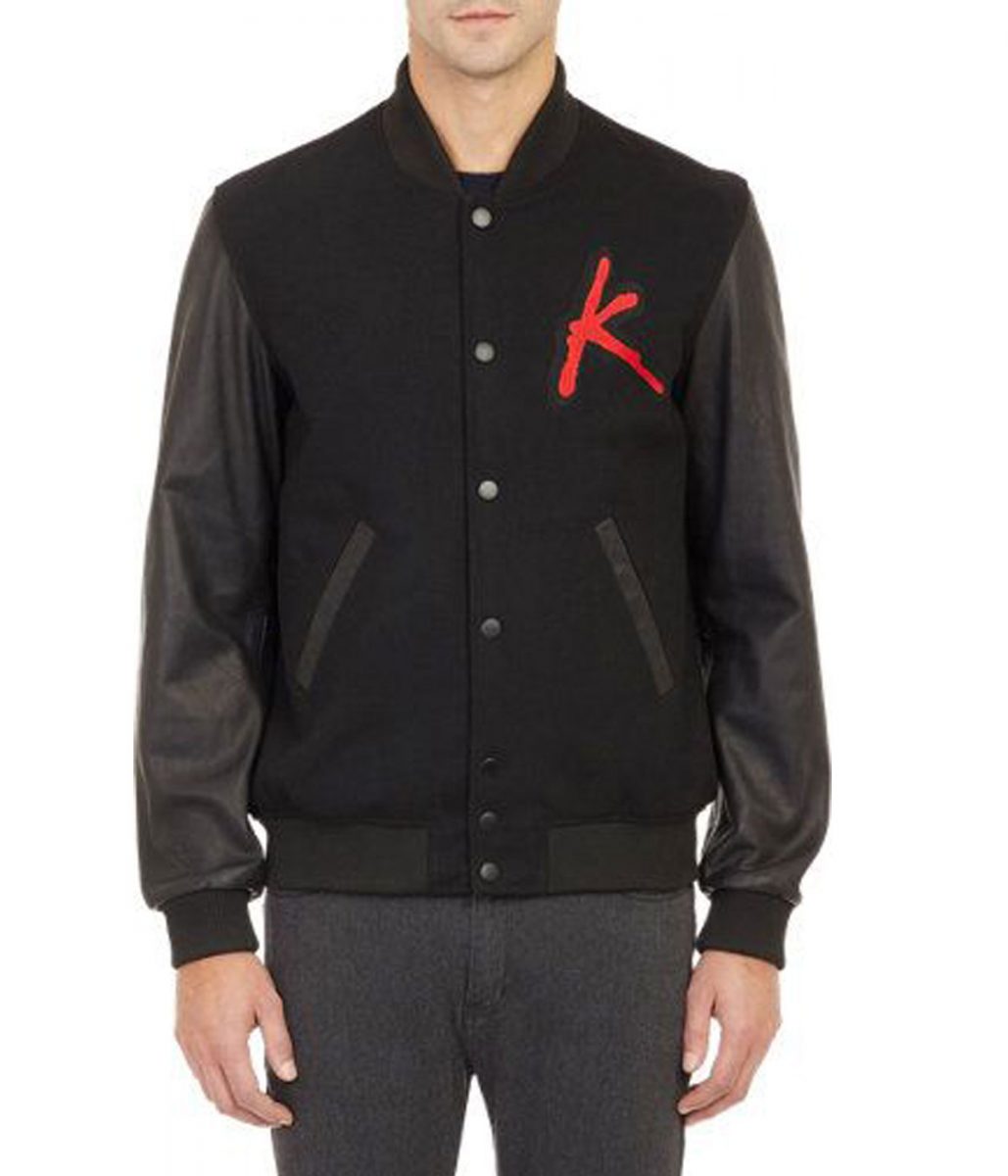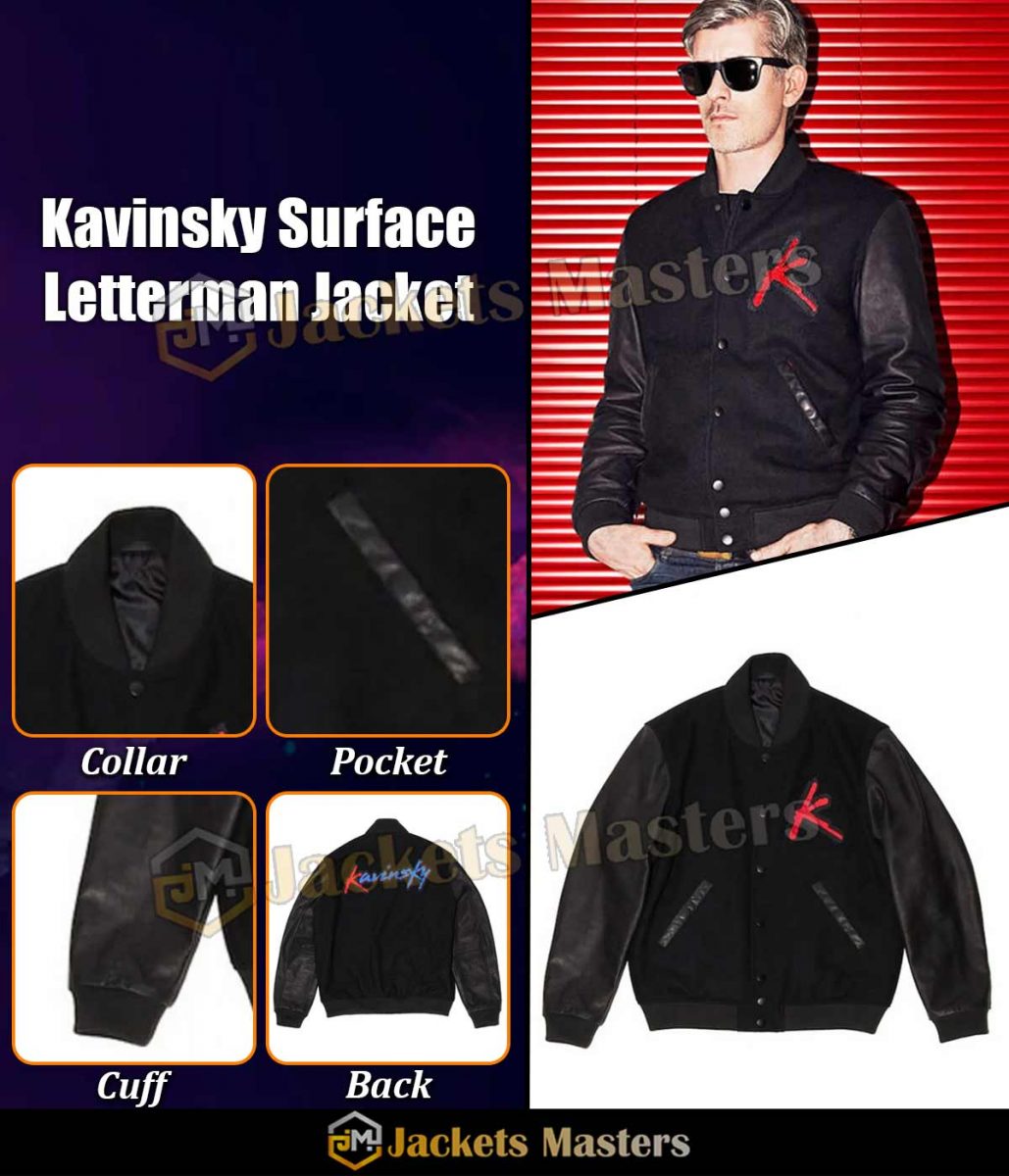 The Kavinsky jacket is made from high-quality wool and sleeves made from genuine leather. The jacket is available in a mesmerizing black color, which gives it an innovative and striking look. The collar of the jacket is a rib-knitted style. It has a snap tab buttoned front closure. A soft viscose inner lining of the jacket keeps you warm and relaxed. The sleeves of the Surface to Air X Kavinsky varsity jacket are full-length ends with rib-knitted cuffs. The jacket has two side waist pockets for keeping stuff. The fine quality stitching of the Kavinsky jacket makes it durable and comfortable to wear. The jacket is an ideal choice for stylish men.
