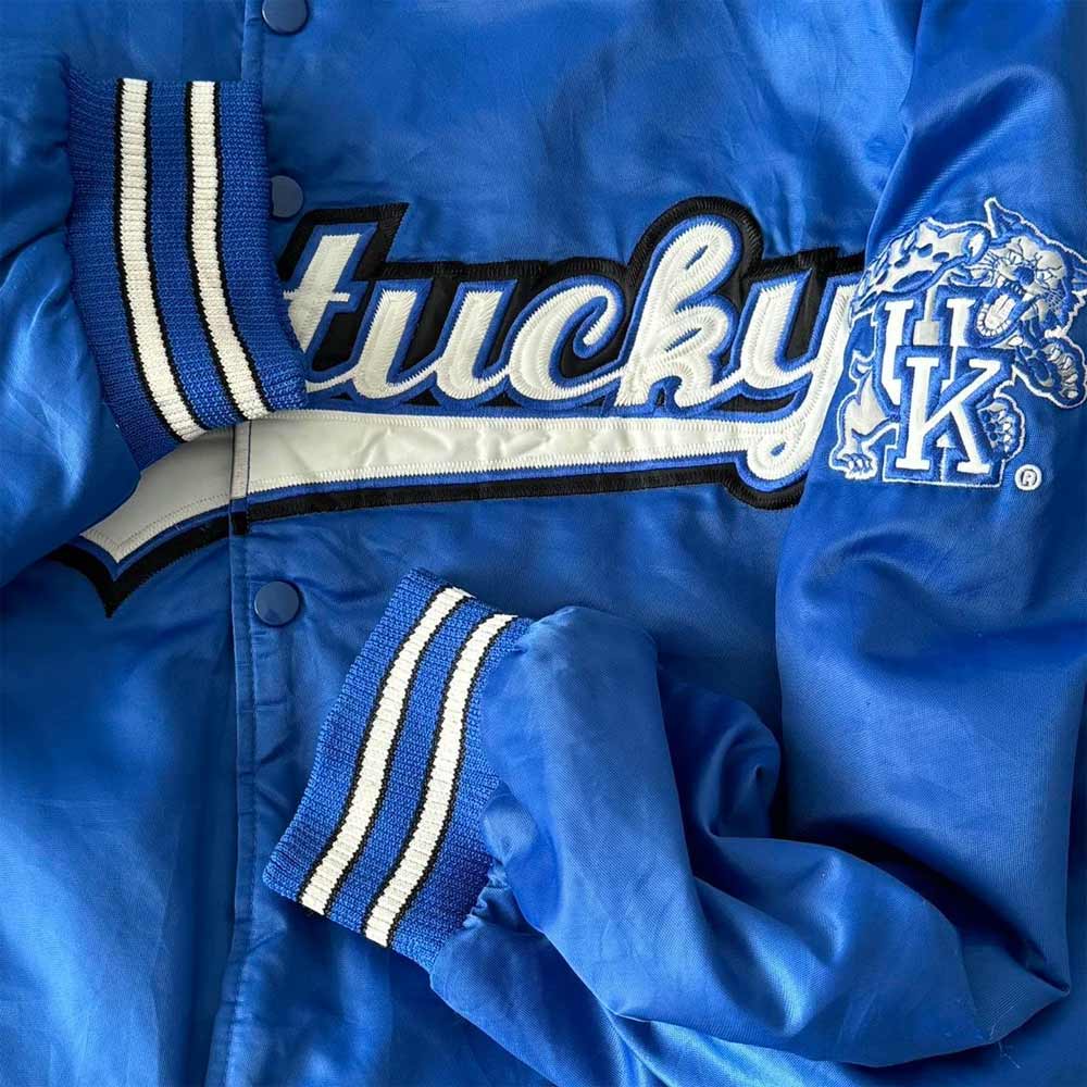 Blue 1990’s NCAA Kentucky Wildcats Full-Snap Bomber Satin Jacket