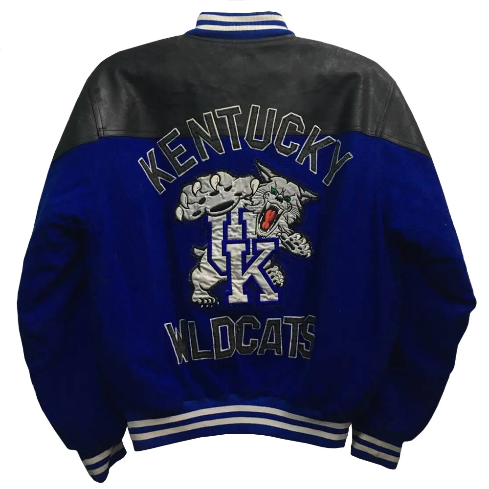 Show your love and loyalty for the Kentucky Wildcats by wearing the contemporary styled Kentucky Wildcats Blue and Black Varsity Jacket, for males and females alike. This jacket is inspired by the Kentucky Wildcats baseball team with some twist added to it. Made from wool body and genuine leather sleeves, it will offer the firmness and comfort the consumer requires. The viscose lining is incorporated to give an extra layer of sophistication because it gives a silky feel against the skin. The Kentucky Wildcats NCCA Varsity Blue and Black Jacket has an amazing color combination of blue and black that makes it look and feel very energetic. The collar, cuffs and the hemline are knitted in ribs, giving it a fabulous varsity flavor; it has a full front zippered closure for easy dressing and can perfectly be adjusted. The long sleeves with ribbed cuffs and the variable ribbed hemline are added that augment the conventional varsity design.