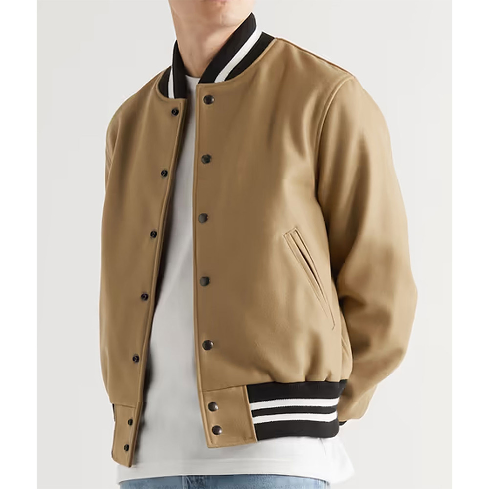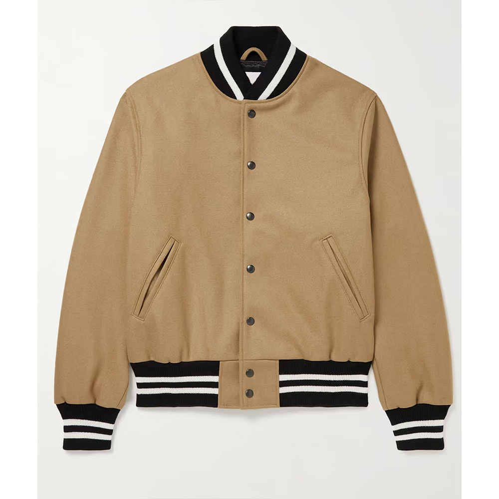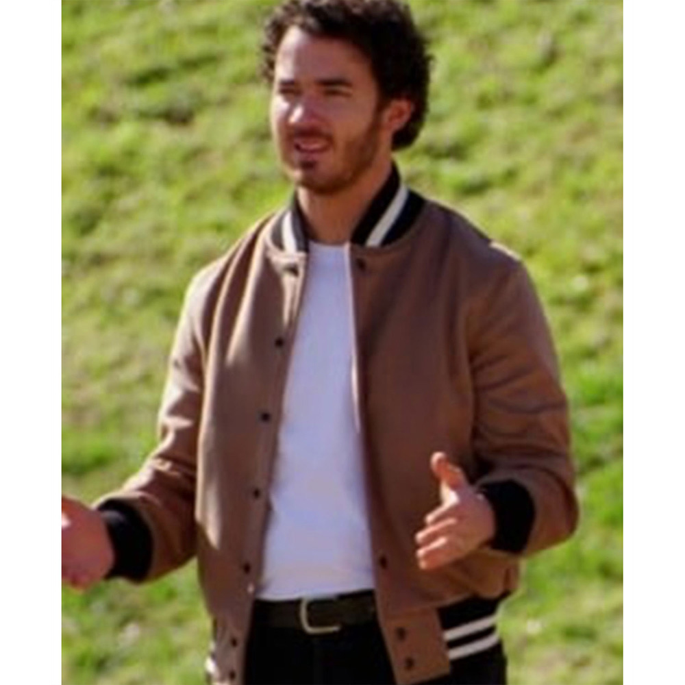 Presenting the Claim to Fame Kevin Jonas Varsity Jacket, an exceptional creation influenced by Kevin Jonas’s Season 2 style. Fabricated from top-tier wool in a sumptuous brown hue, this varsity jacket features a front closure adorned with snap-tab buttons and a collar expertly rib-knitted for a timeless finish. The rib-knitted cuffs harmonize with the elongated sleeves, bestowing both warmth and refinement to the ensemble. Enhanced with two exterior pockets, this woolen jacket seamlessly marries comfort with style. The precise stitching augments the overall design, establishing the Kevin Jonas Claim to Fame Varsity Jacket as an indispensable addition to any wardrobe. Elevate your style with the Claim to Fame Kevin Jonas Varsity Jacket, where celebrity-inspired fashion converges with timeless sophistication.