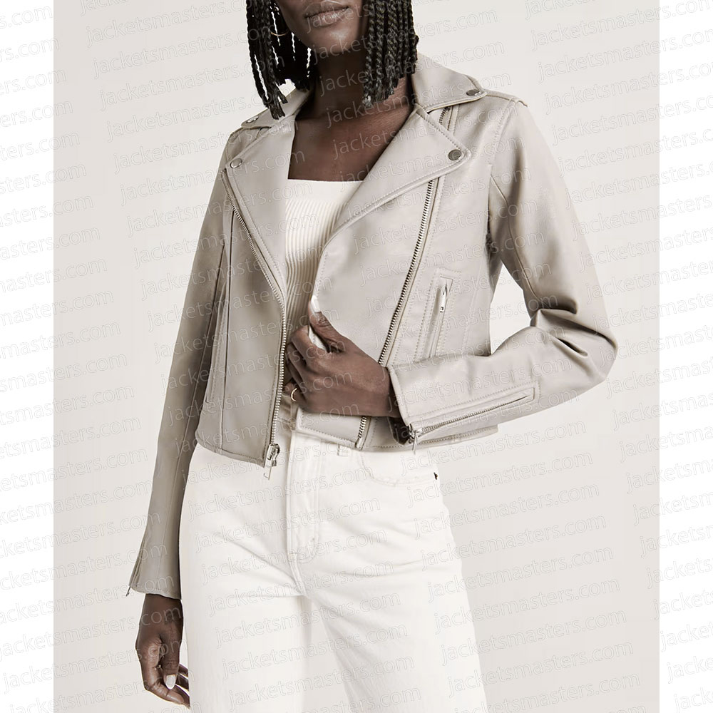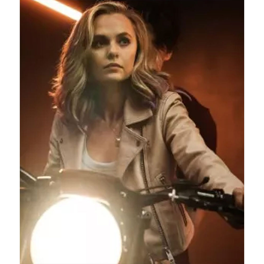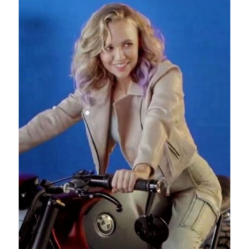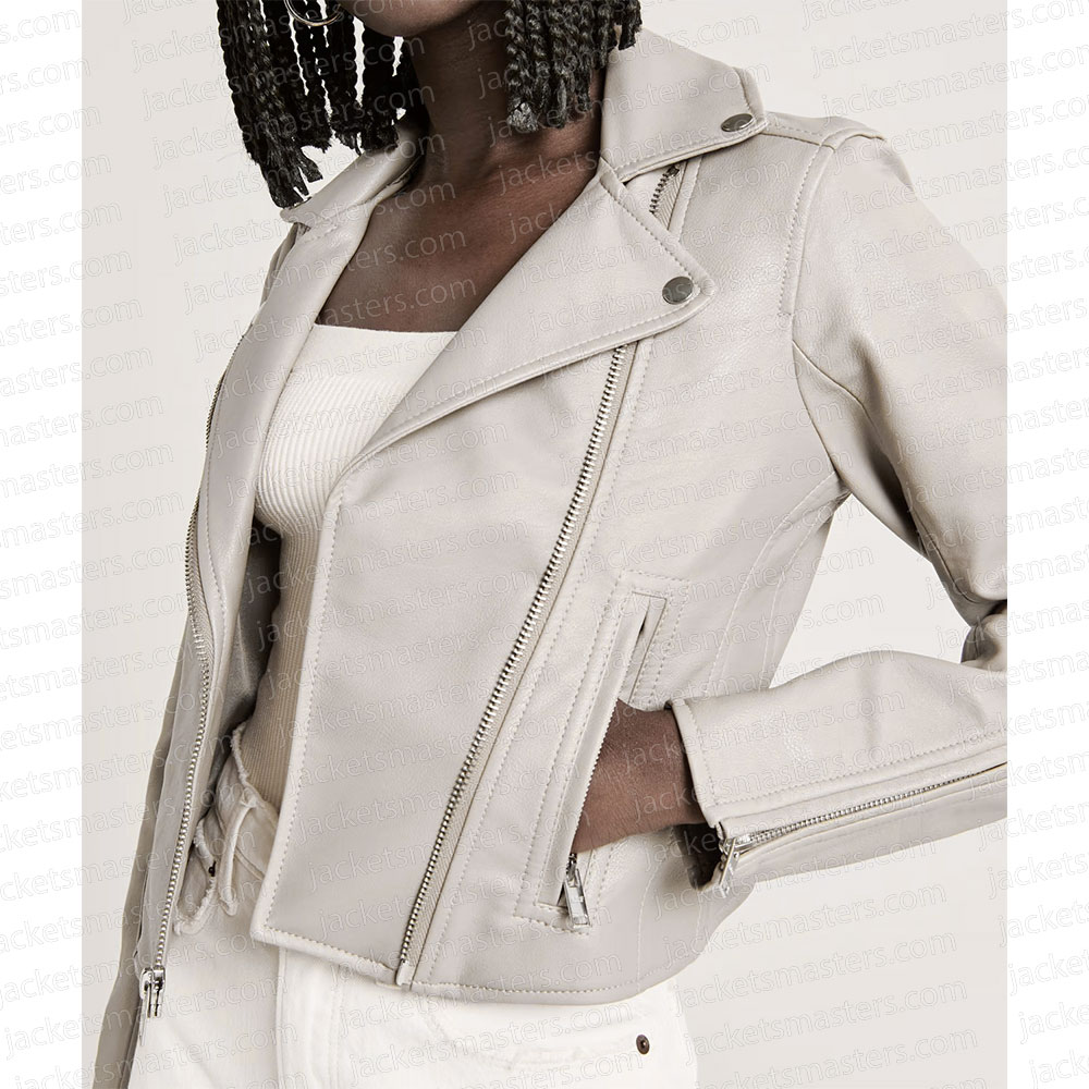 Madison Iseman Knights of the Zodiac Athena White Leather Biker Jacket