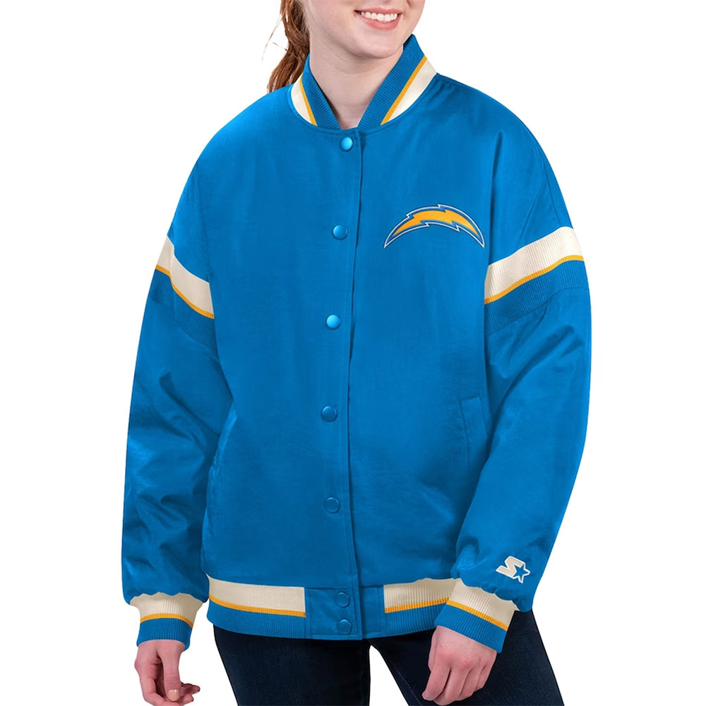 Powder Blue Los Angeles Chargers Tournament Varsity Full-Snap Satin Jacket