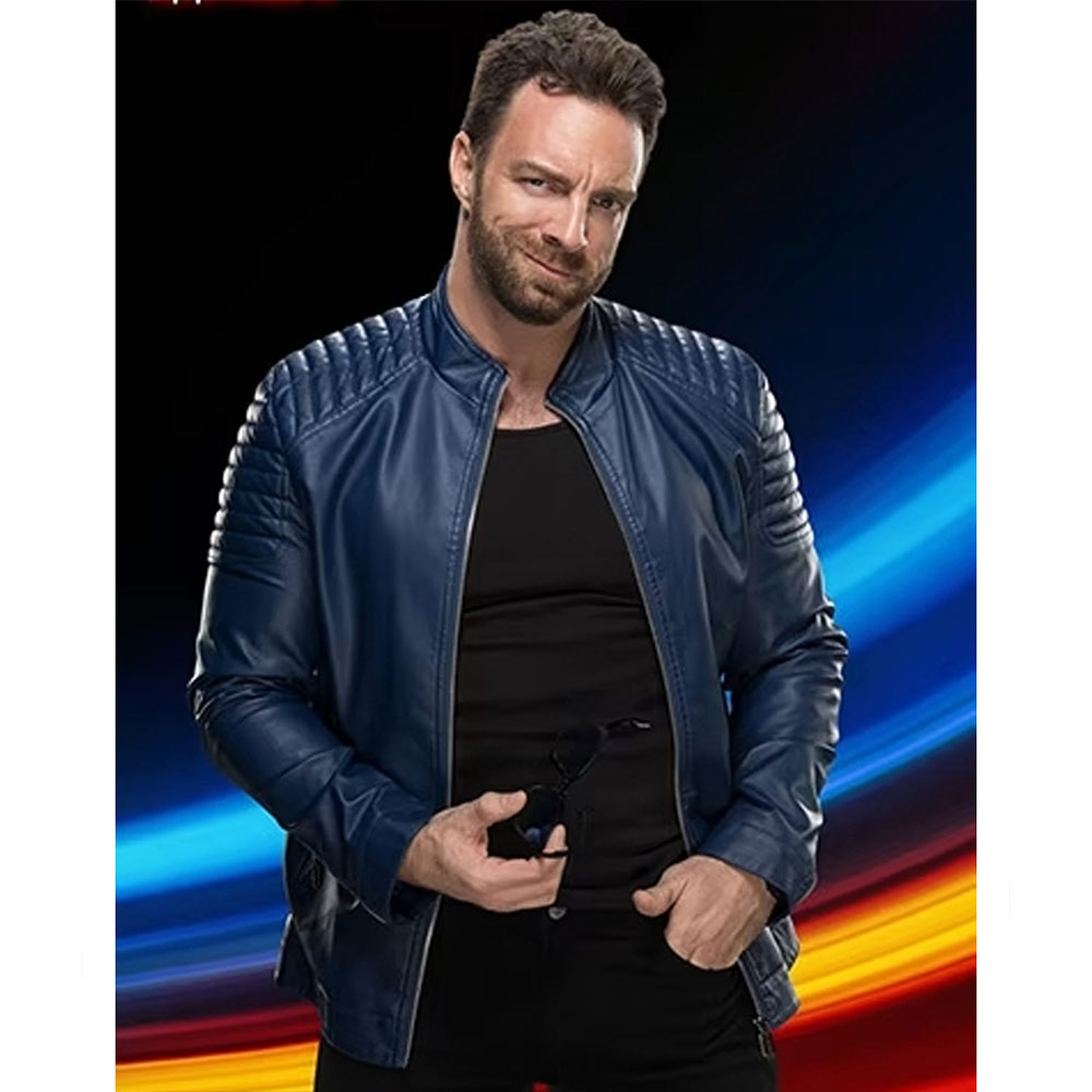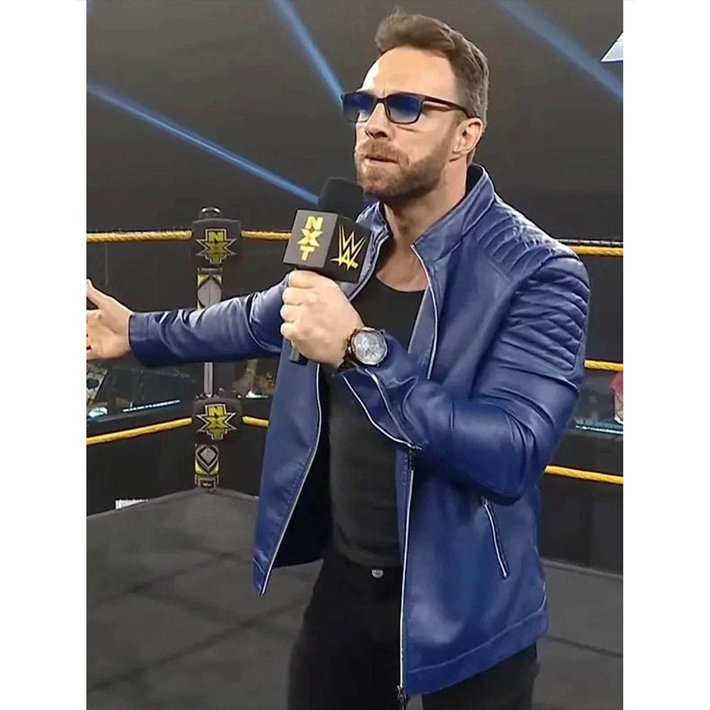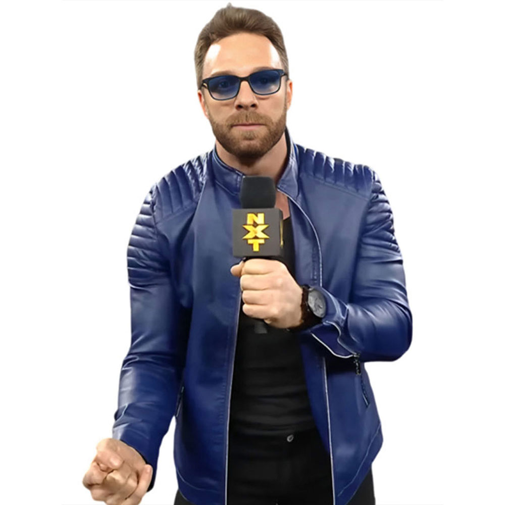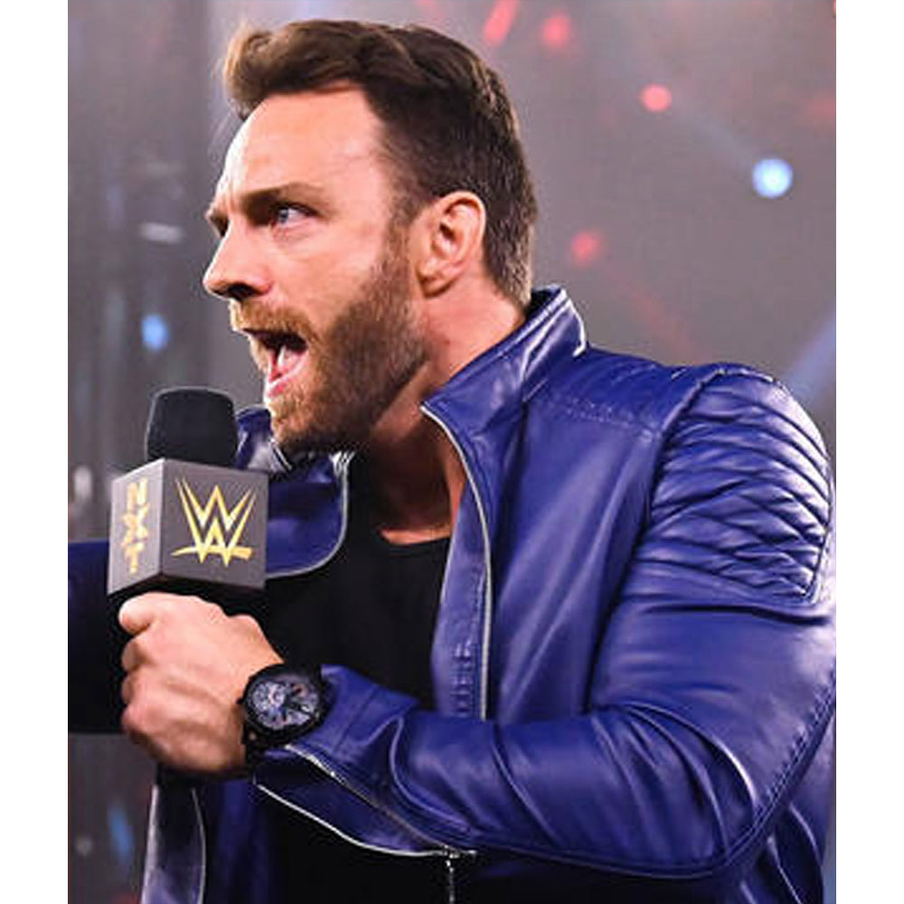 LA Knight NXT Padded Blue Leather Jacket