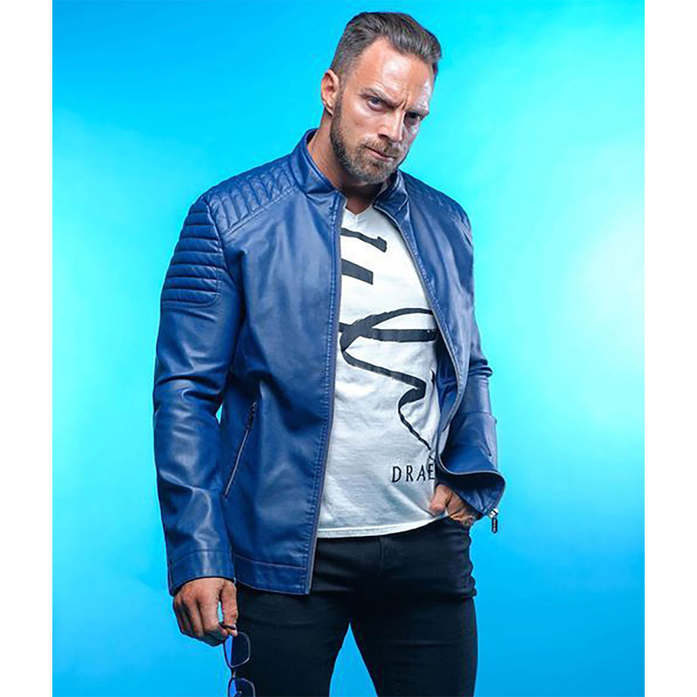 Elevate your wardrobe with the NXT Padded LA Knight Blue Leather Jacket, inspired by the acclaimed American actor LA Knight. Crafted from authentic and supple genuine leather, this jacket is a testament to craftsmanship and luxury. The glorious blue color captures attention while exuding sophistication. The erect style collar adds an element of uniqueness, setting the jacket apart. The branded YKK zipper front closure enhances convenience without compromising on style. Soft viscose lining ensures comfort throughout your wear, while the zipper cuffs and long, fitting sleeves infuse a touch of elegance. Impeccable stitching attests to the garment’s quality, ensuring it withstands the test of time. The jacket features two side waist pockets, marrying practicality with style. Designed to cater to both genders, it’s more than an article of clothing; it’s a statement of individuality and luxury.