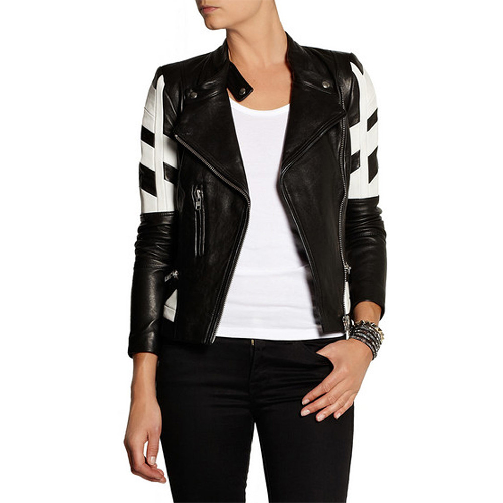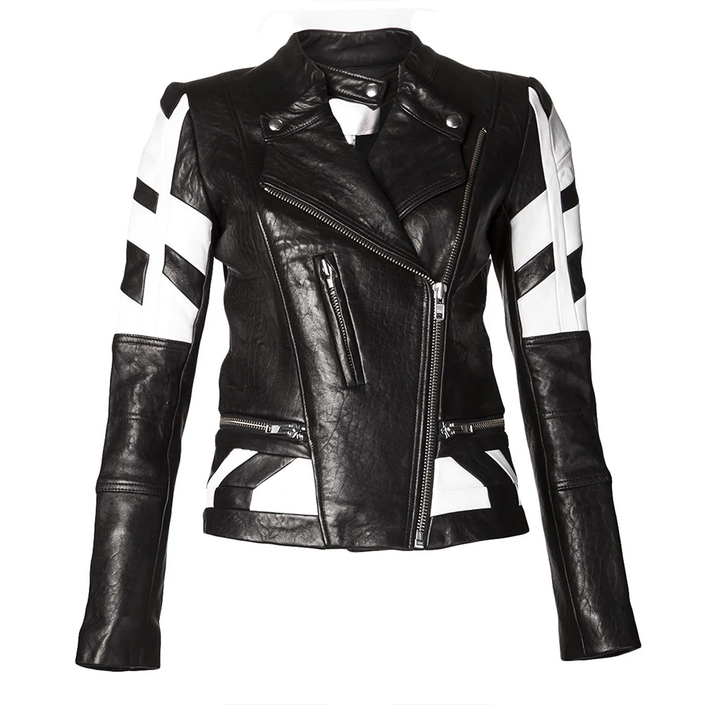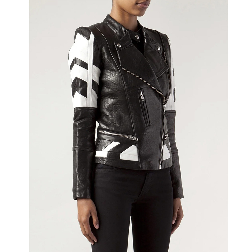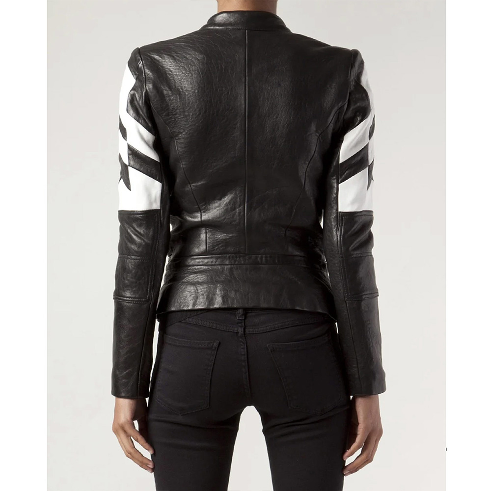 La La’s Full Court Life La La Anthony Black and White Leather Biker Jacket