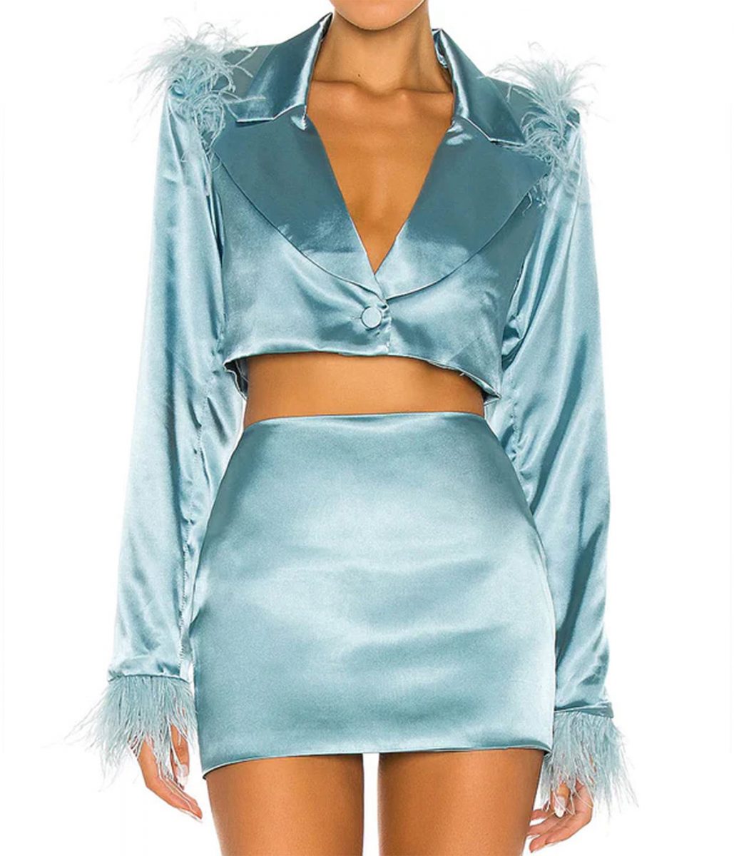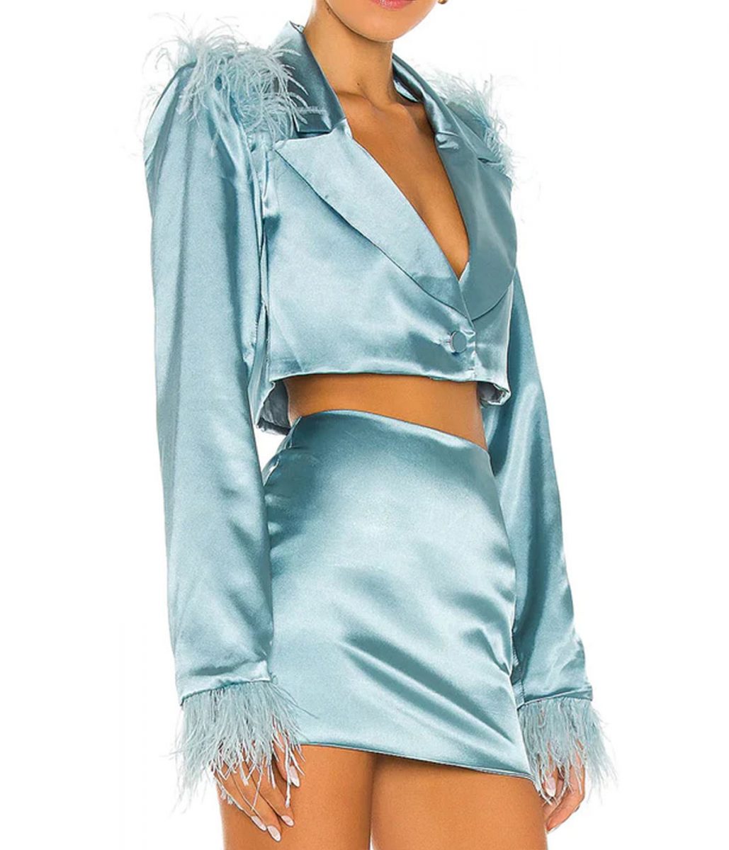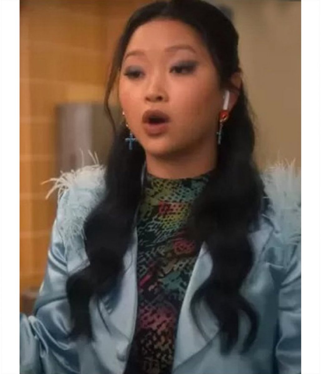 Lana Condor Boo Bitch Erika Vu Blue Cropped Satin Jacket