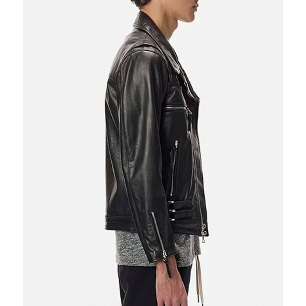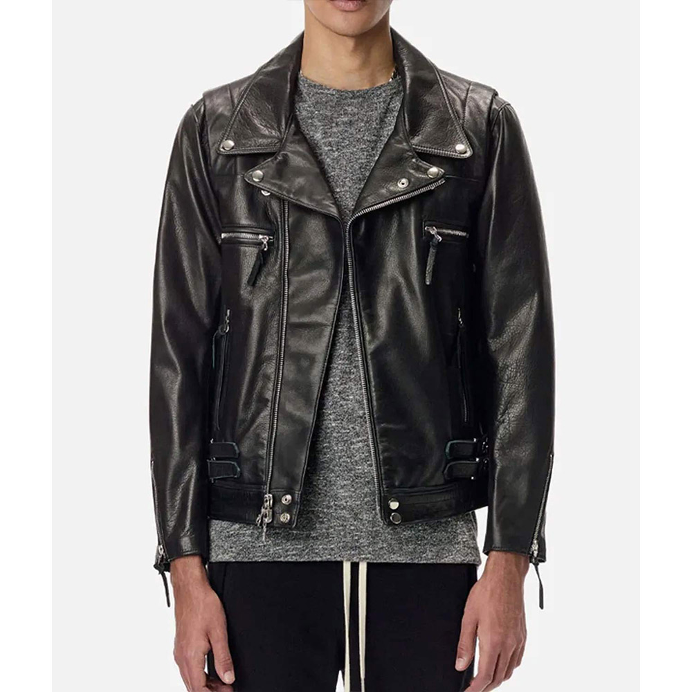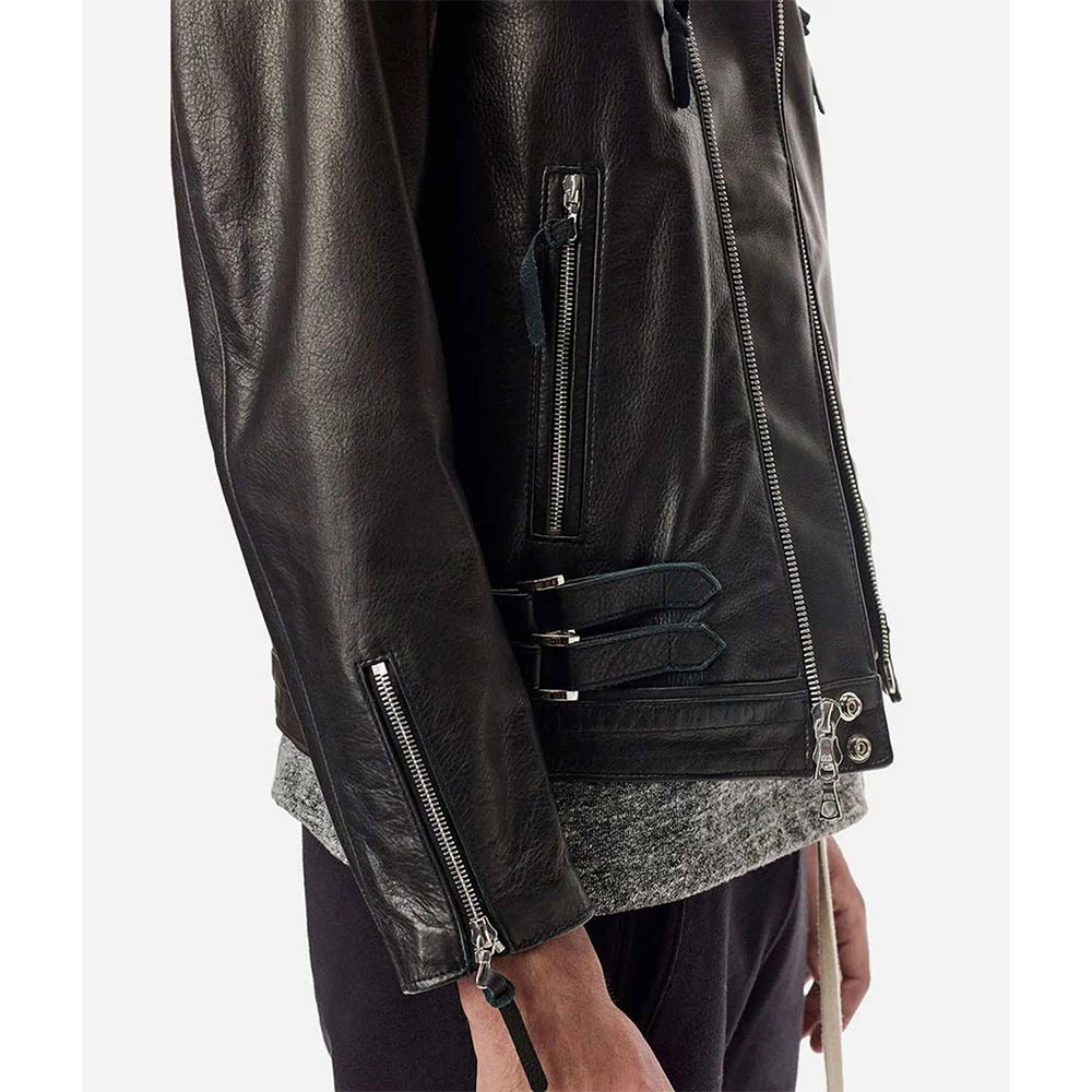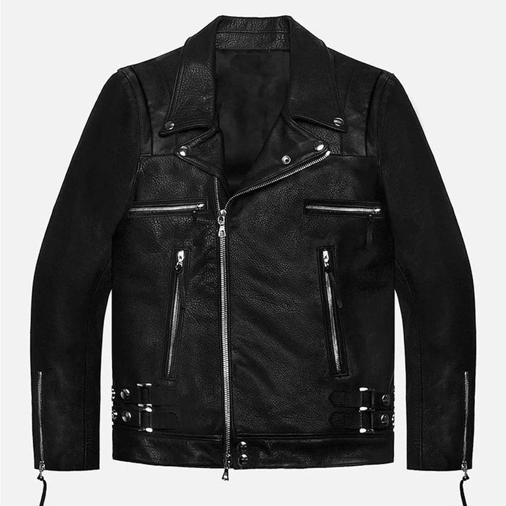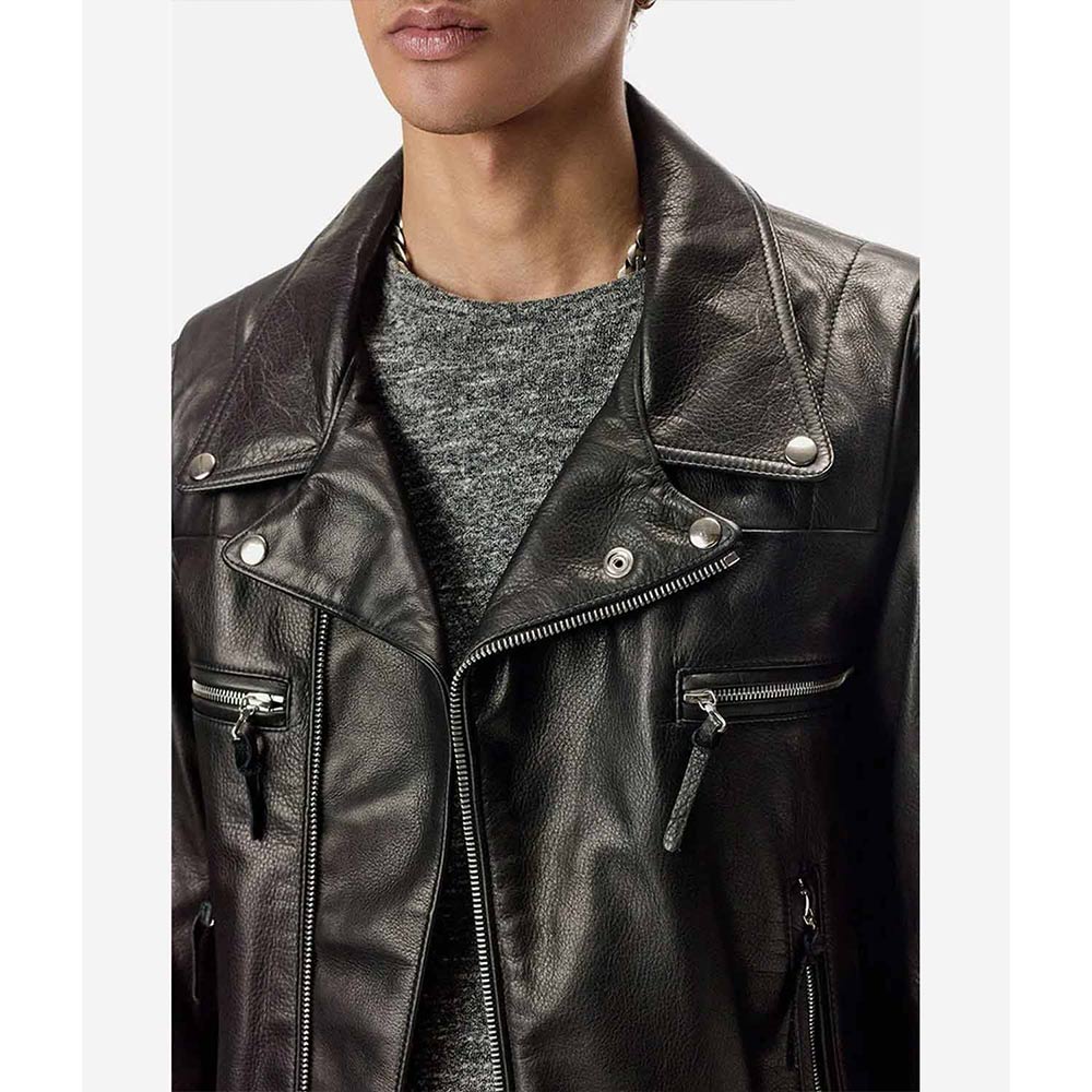 The Lebron Biker jacket displays an iconic style that gives you an edgy appearance and becomes a true fashion inspiration with its high-quality stuff and stitching. Prepare for all conditions with the asymmetrical zipper closure offering additional protection. The lapel collar of the Lebron James leather jacket gives a voguish touch to your ensemble. This attire in a sleek black hue is a wearable masterpiece that demands attention and brings a sense of depth and mystery.