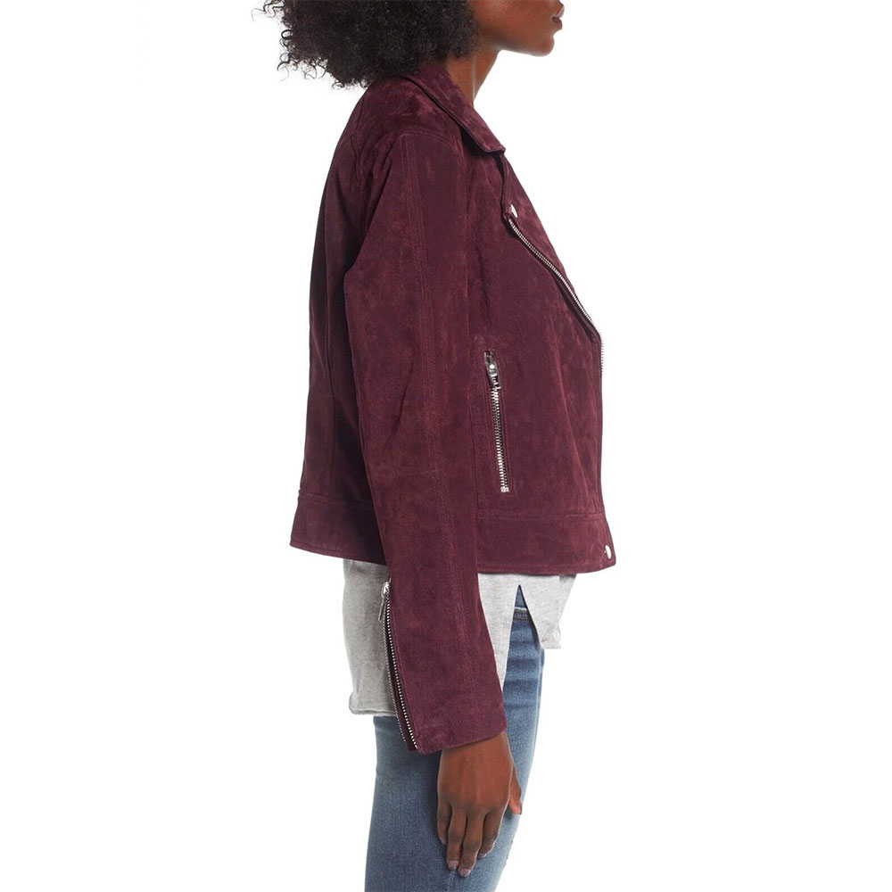 Elevate your style with the Hope Mikaelson Suede jacket meticulously crafted from high-quality suede leather for an aura of sophistication. The majestic maroon color adds an innovative and alluring touch, setting it apart from the crowd. With its lapel style collar and branded YKK zipper front closure, this Legacies Season 1 Danielle Rose Russell Maroon Suede jacket exudes timeless elegance. Stay warm and cozy with the soft inner viscose lining, ensuring comfort throughout the day. The long sleeves of Hope Mikaelson Suede jacket with zipper cuffs elevate its stylish appeal, adding a sleek and polished look. Experience the convenience of two inner and two side pockets, providing ample storage space for your essentials. The impeccable stitching guarantees durability, making it a worthwhile investment for your wardrobe.