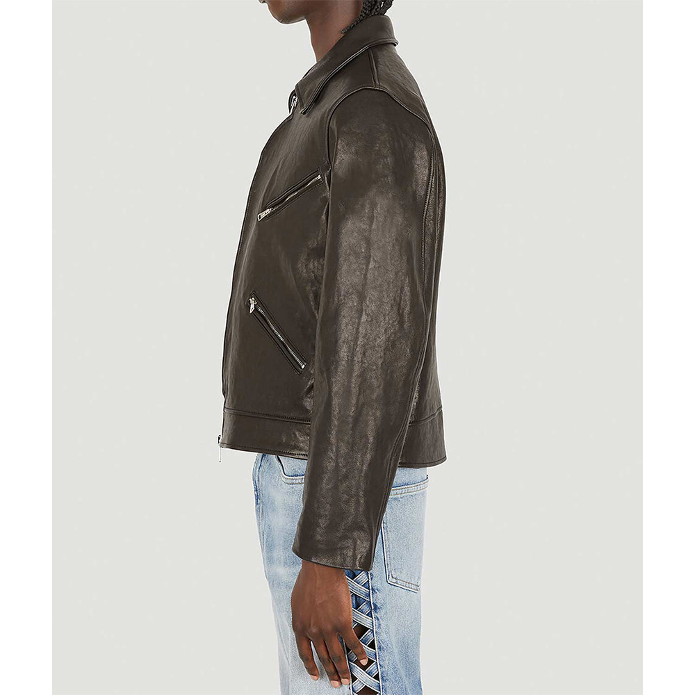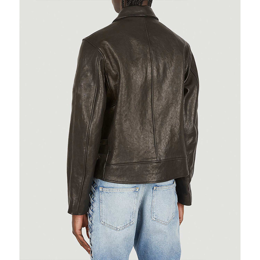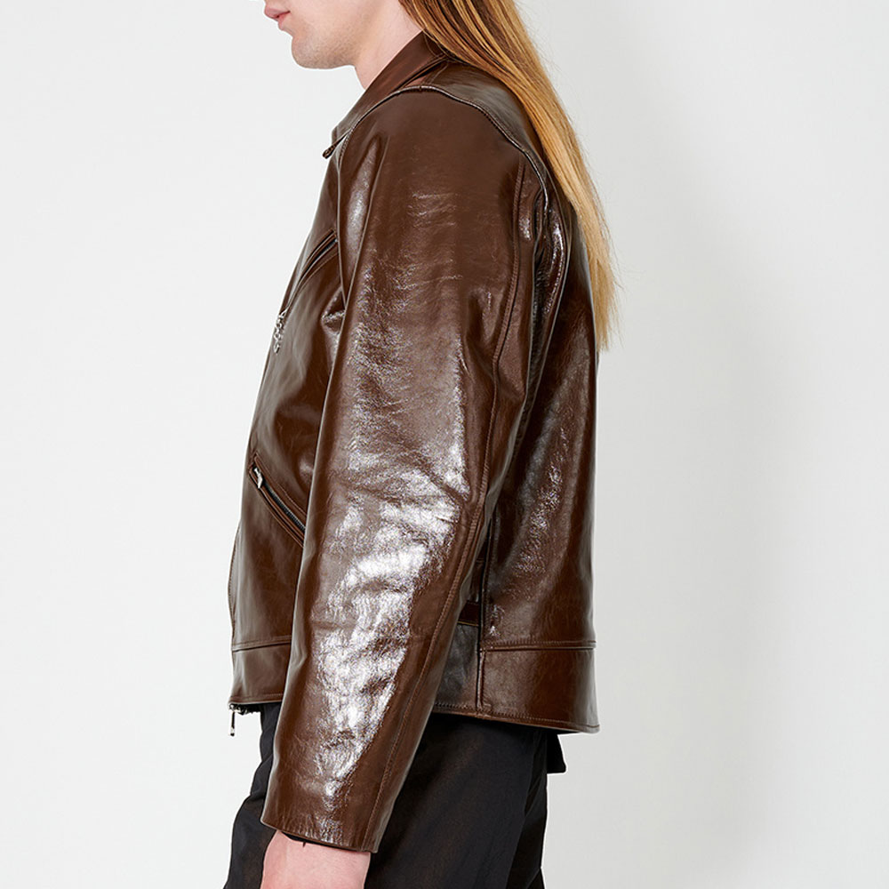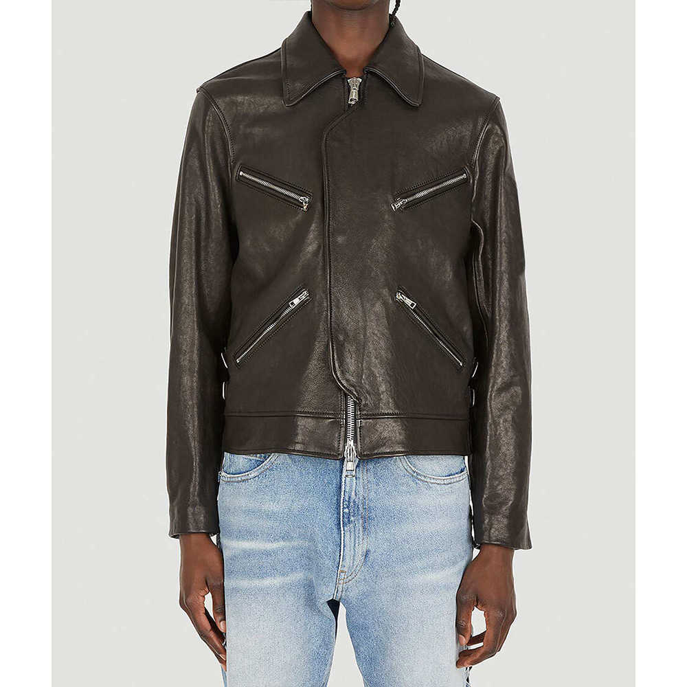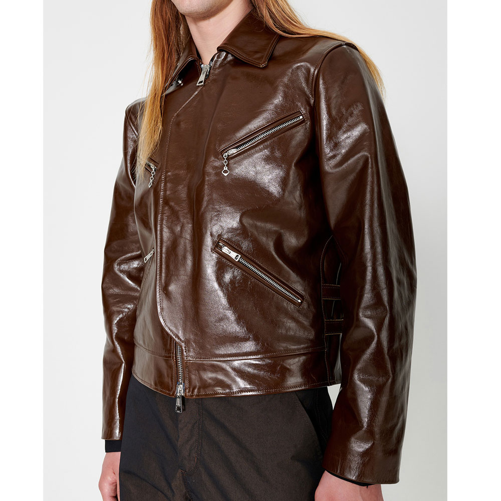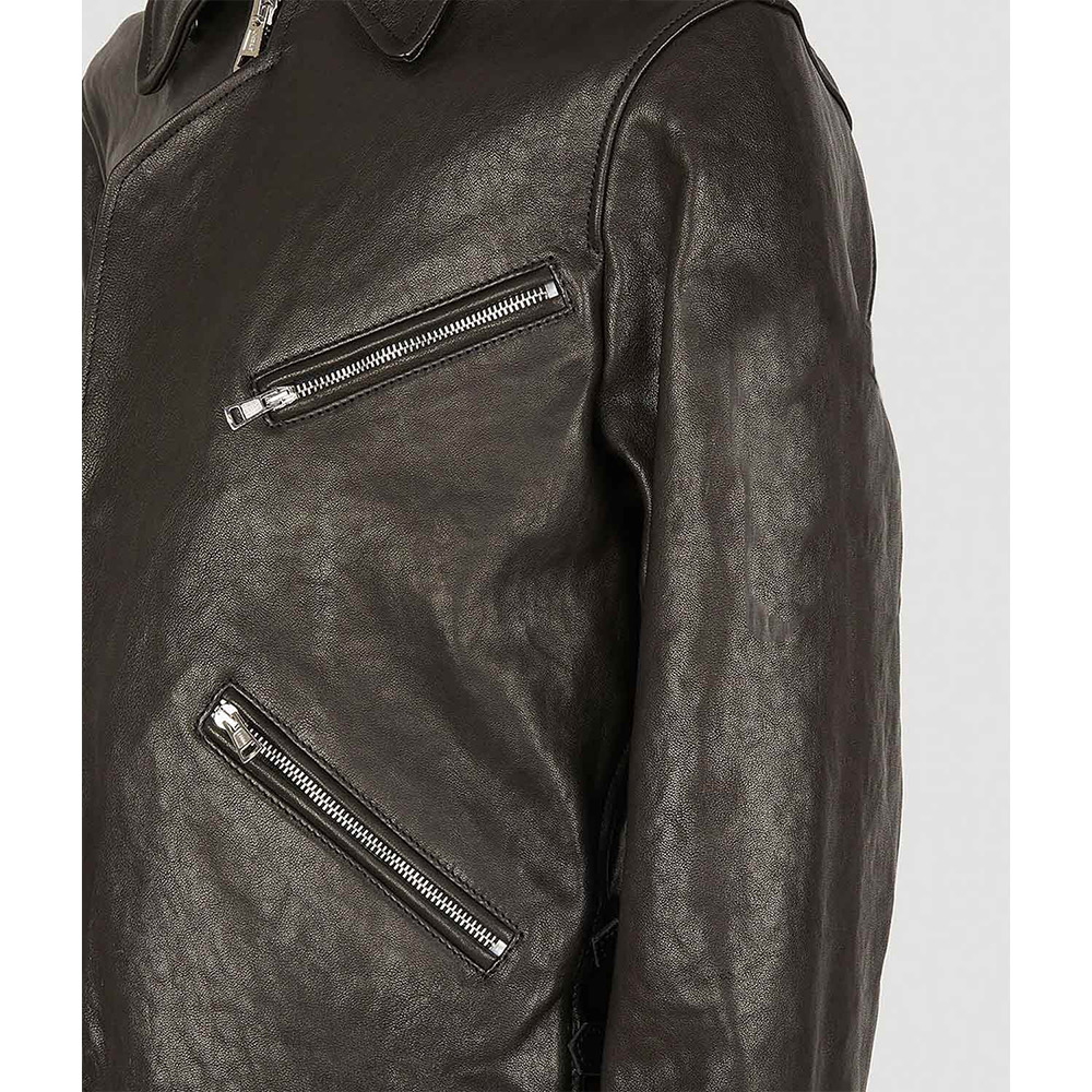 Elevate your style game with a dash of fashion flair embodied in the Legacy leather jacket. Skillfully crafted from opulent genuine leather, it reveals a commanding brown color that exudes individuality. The shirt-style collar and iconic YKK front zipper closure meld seamlessly, forming a fusion of style and self-assuredness. Its uniquely arresting design makes a bold declaration, making it a prime choice for lively gatherings with companions. The elongated sleeves of the Legacy demon leather jacket, complete with open hem cuffs, strike a harmonious equilibrium between comfort and audacity. Enveloped in the tender embrace of a viscose inner lining, warmth and serenity accompany your every move. Meanwhile, utilitarian waist zip pockets and concealed inner compartments cater to your essentials with finesse.