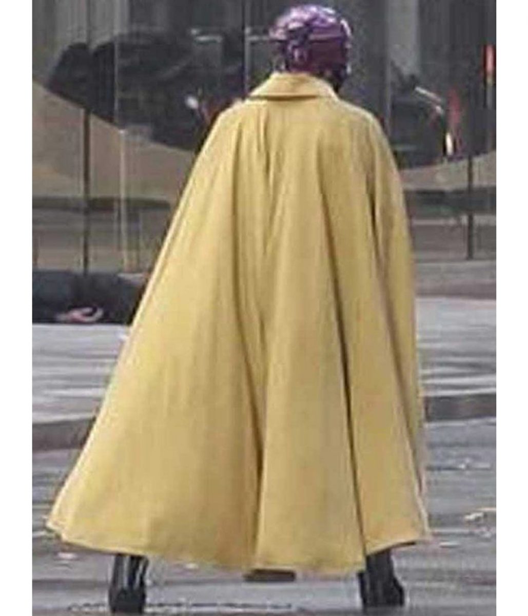 The Grace Sampson Cape is made from pure Cotton. The cape is available in majestic yellow color which gives it an innovative and striking look. The collar of the cape is shirt style. It has a belted-style front closure. A soft viscose inner lining of the cape keeps you warm and relaxed. The sleeves of the Leslie Bibb Jupiter’s Legacy Cape are open and full-length. The cape has two sides waist and two inside pockets for keeping stuff and money. The fine quality stitching of the Grace Sampson Cape makes it durable and comfortable to wear. The cape is an ideal choice for movie lovers.