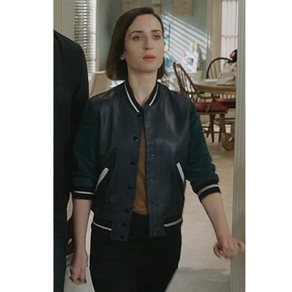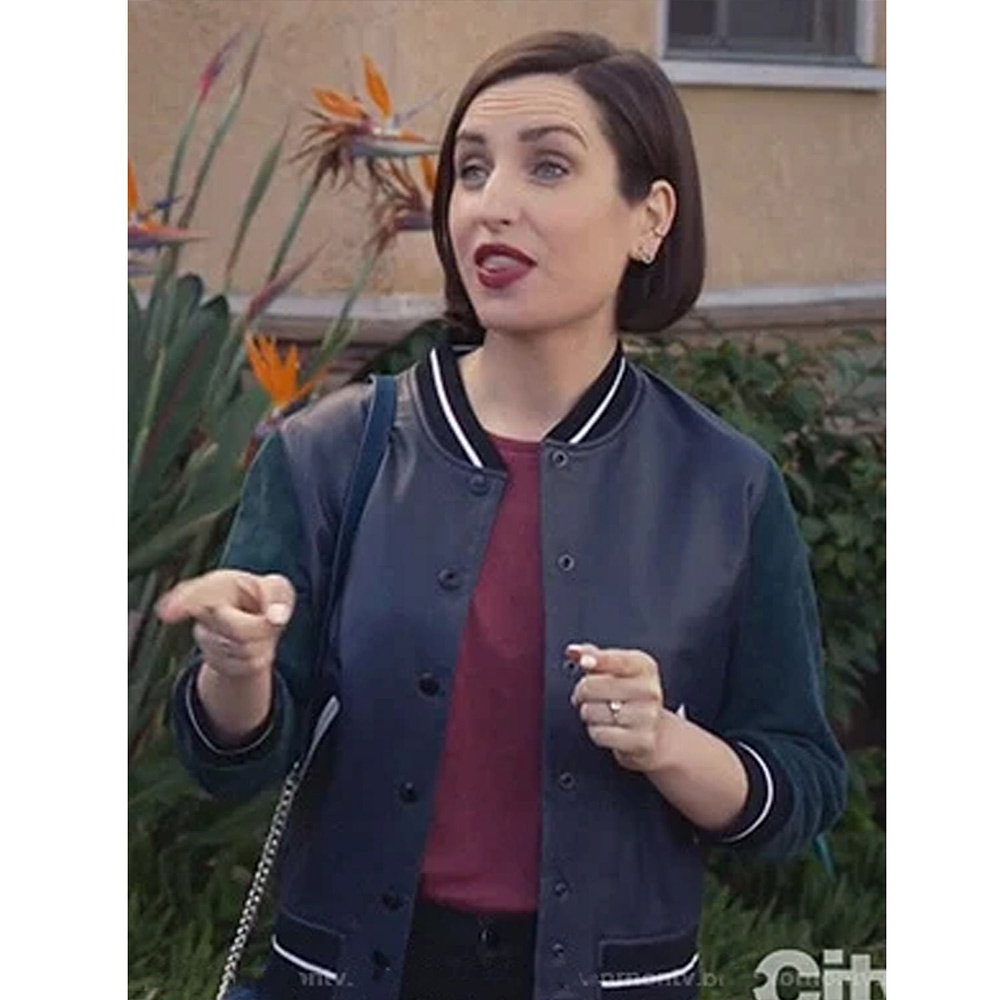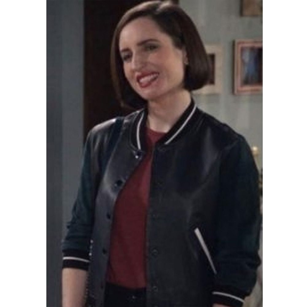 Life in Pieces Jen Short Black Bomber Leather Jacket