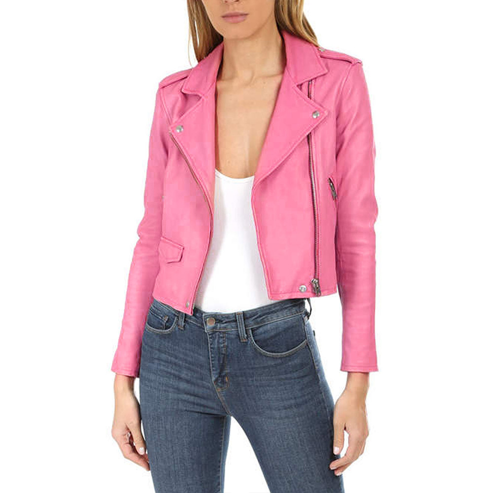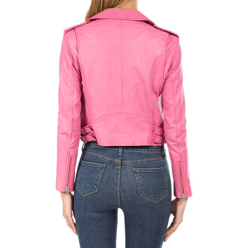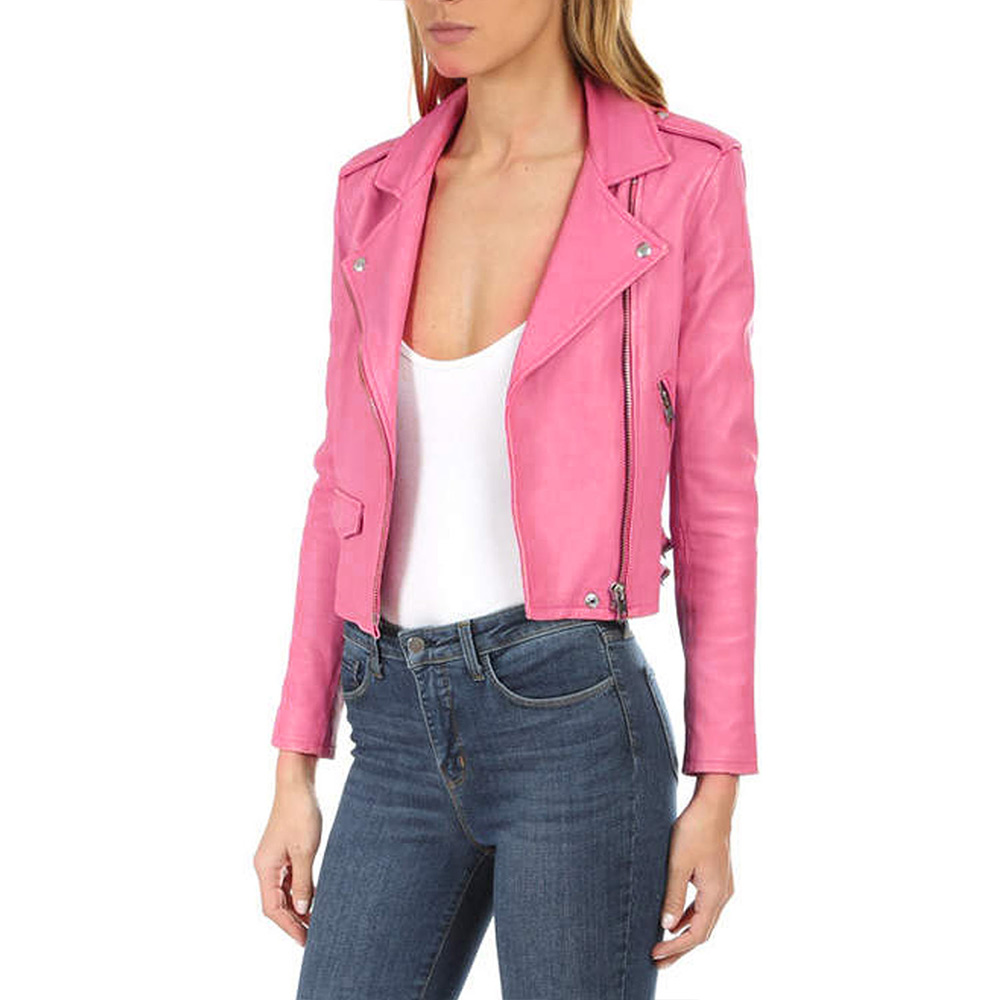 Embrace the allure of the Jen Short Pink Leather jacket, meticulously crafted with high-quality genuine leather. Its majestic pink color brings forth an innovative and attractive aesthetic. Sporting a lapel style collar and branded YKK zipper front closure, this Life in Pieces Zoe Lister-Jones Pink Leather jacket seamlessly blends style and functionality. The viscose inner lining ensures warmth and relaxation. With long sleeves adorned with open hem cuffs, a comfortable and sophisticated fit is guaranteed. The Jen Short Pink Leather jacket boasts two inner and two side pockets, providing ample storage options. Experience comfort and desirability with its fine quality stitching, making it the perfect choice for parties.