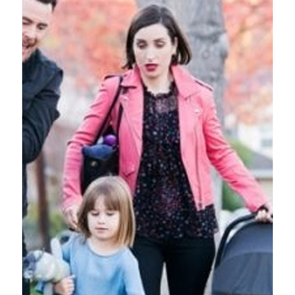 Zoe Lister-Jones Life in Pieces S04 Jen Short Biker Pink Leather Jacket