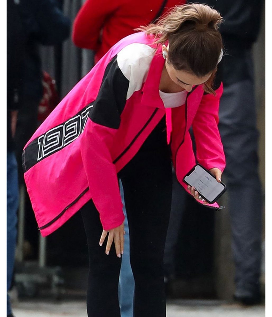 The Emily Cooper 1997 pink jacket is made from high-quality cotton fabric. The jacket is available in glorious pink color, which gives it an innovative and dazzling look. The collar of the jacket is turn-down style. It has a branded YKK front zipper closure. A soft viscose inner lining of the jacket keeps you warm and relaxed. The sleeves of the Emily in Paris Lily Collins Petite pink 1997 jacket are long ends with open hem cuffs. The fine quality stitching of the Emily Cooper 1997 pink jacket makes it durable and desirable to wear. The jacket is an ideal choice for stylish women.