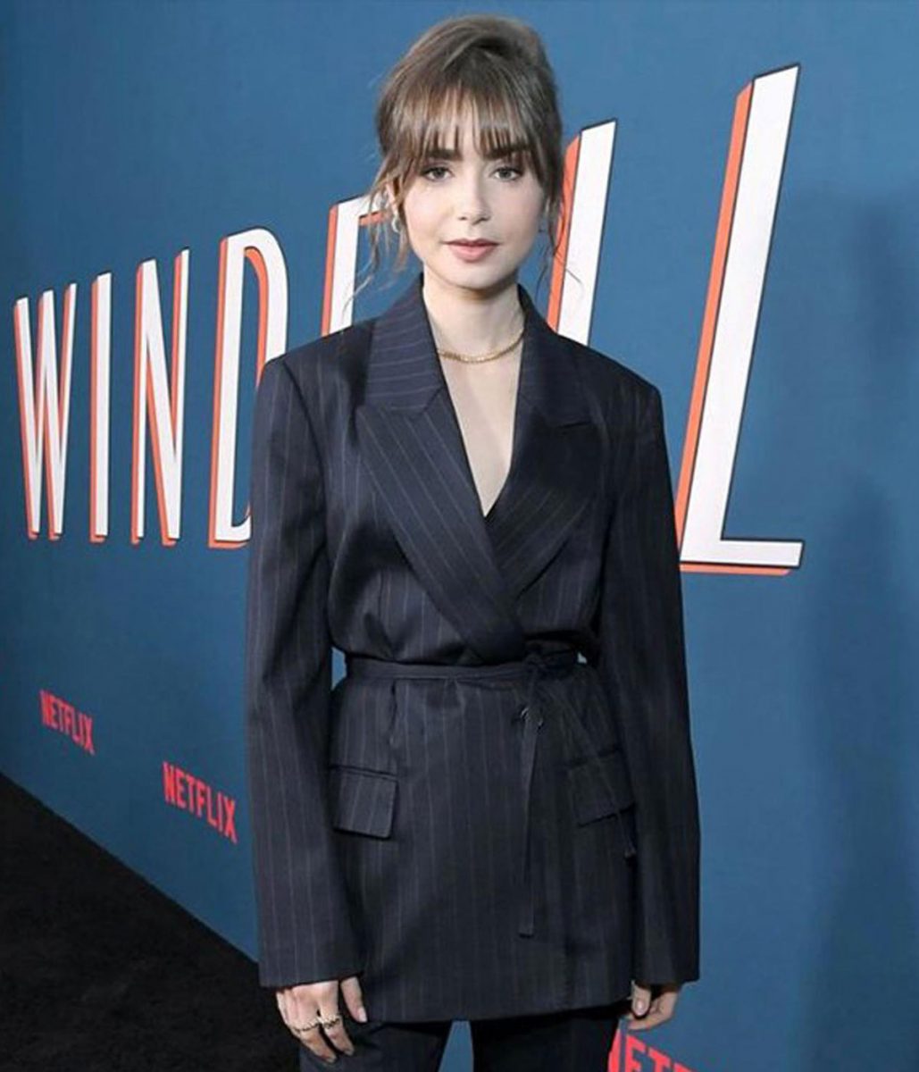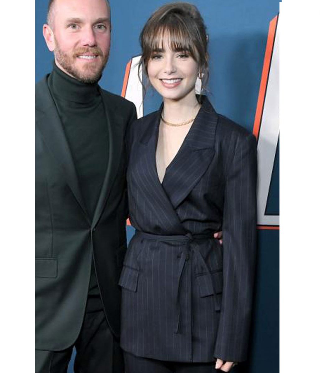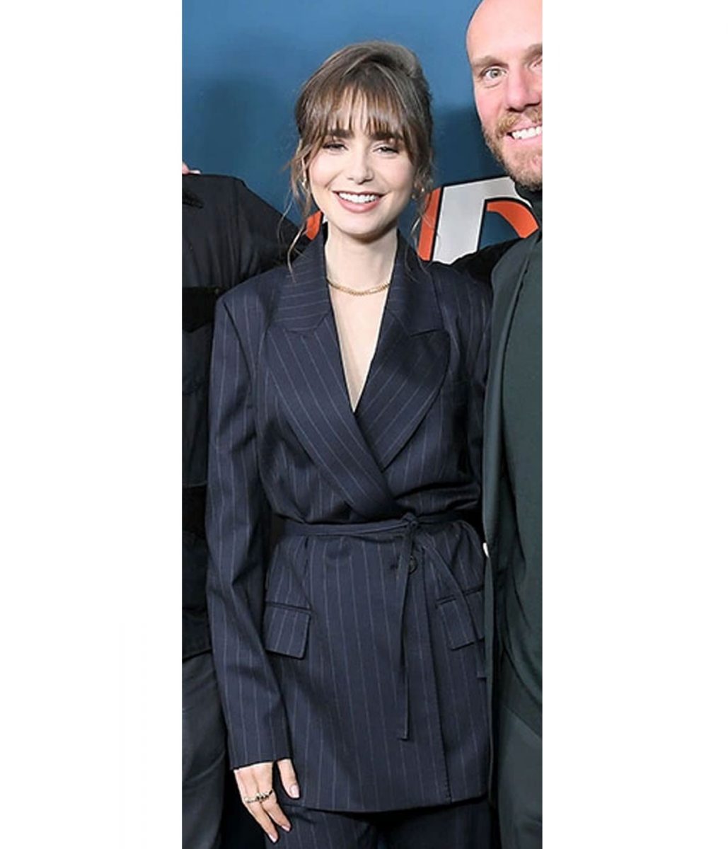 Lily Collins Windfall Film Premiere Blue Lining Blazer