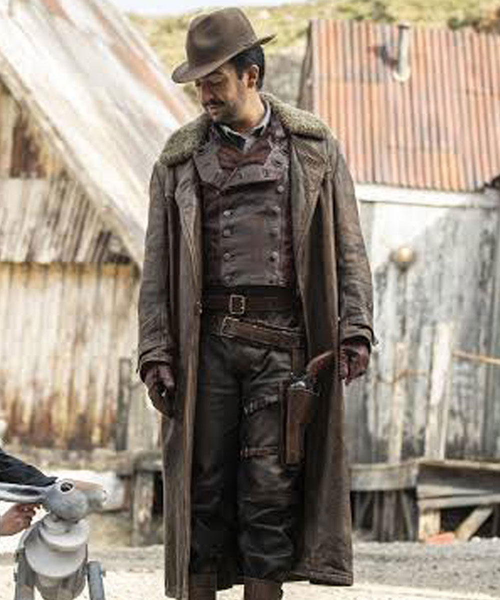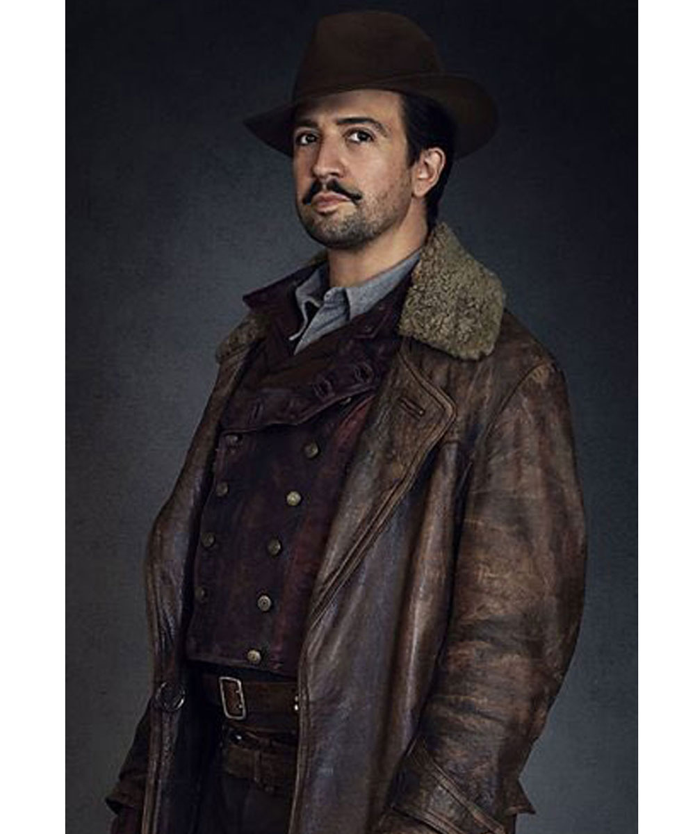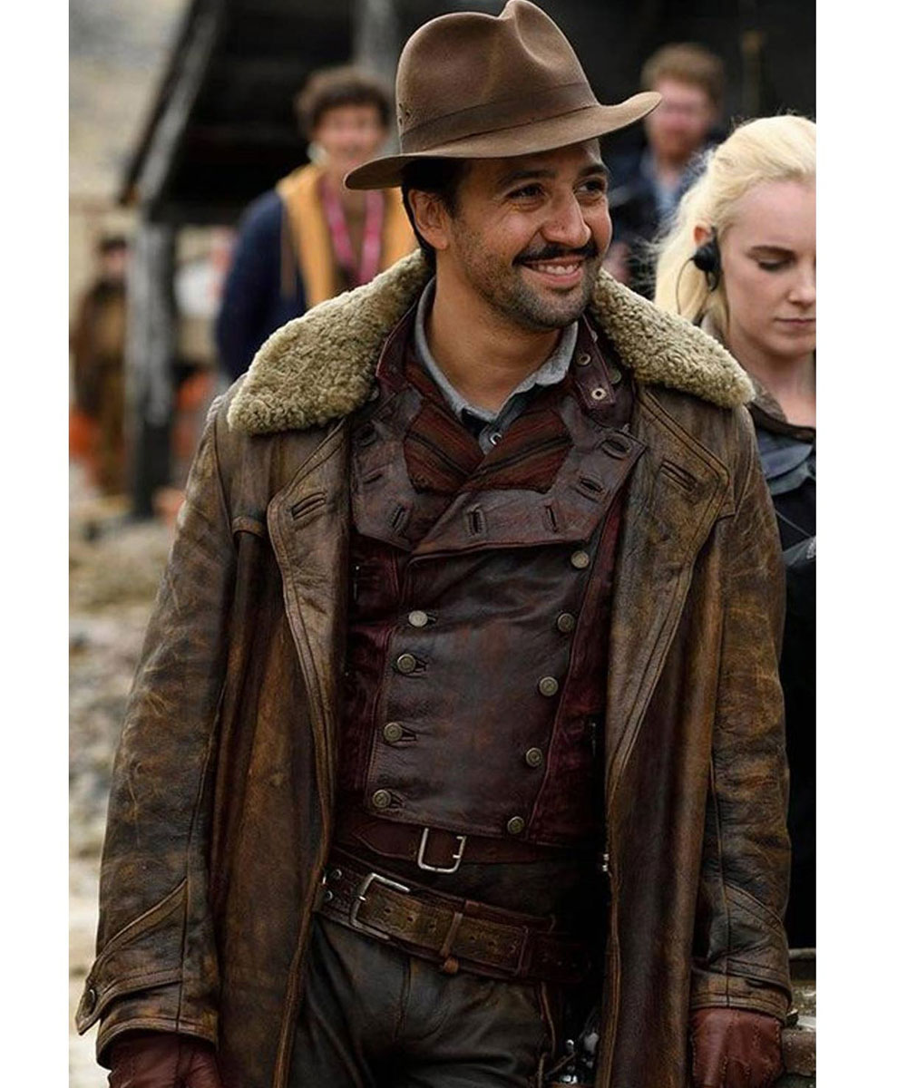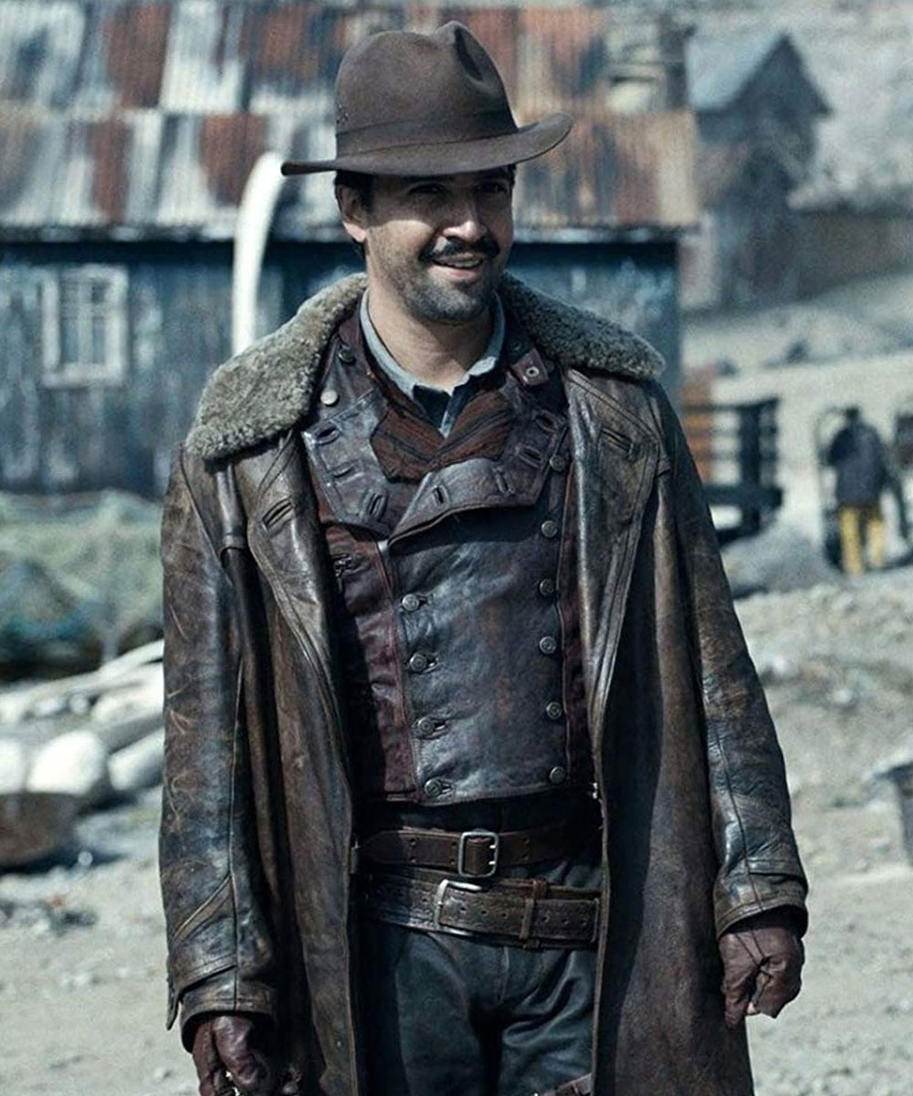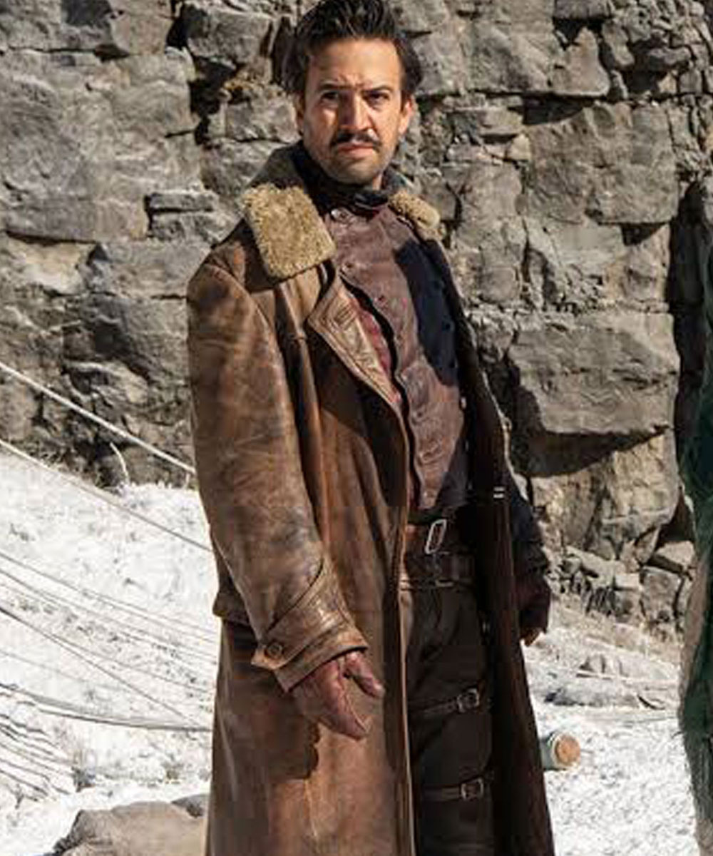 The Lee Scoresby coat is made from high-quality genuine leather. The coat is available in a majestic brown color which gives it a sophisticated and enchanted look. The collar of the coat is a shirt-style shearling lined. A soft viscose inner lining of the coat keeps you warm and relaxed. The sleeves of Lin Manuel Miranda his dark materials leather coat are long and fitted with belted open hem cuffs. The coat has a stylish front-open look. The coat has two side waist pockets and two inner pockets for keeping stuff. The coat is the exact clone of the one worn by the character in the series. The fine quality stitching of the Lee Scoresby coat makes it durable and comfortable to wear. The coat is ideal for a night out with friends and cosplay.