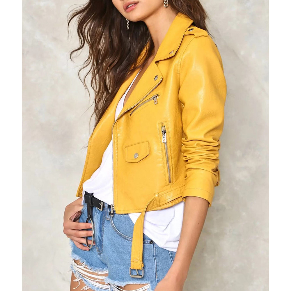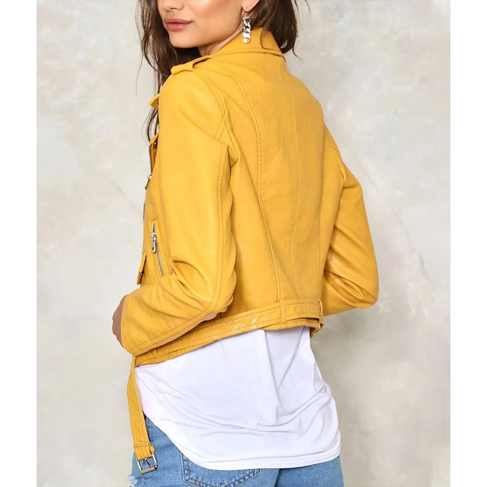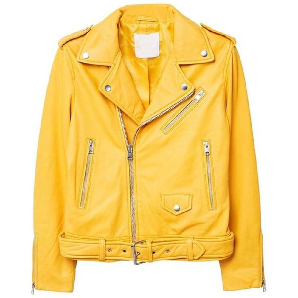 Emanate the warmth of sunshine and style with the “Liv Rooney Yellow Leather Jacket.” This genuine leather masterpiece, inspired by Dove Cameron’s portrayal in the mystery drama series Liv and Maddie, is your ticket to vibrant fashion. The jacket’s radiant yellow hue adds a burst of energy to your wardrobe. Its lapel-style collar and asymmetrical zipper front closure exude sophistication and uniqueness. The long sleeves feature zipper cuffs, allowing you to adjust your style as needed, while the belted hemline adds a chic touch. With two side pockets for convenience, this jacket combines practicality with fashion effortlessly. The soft viscose lining ensures comfort throughout your day. Crafted with fine quality stitching, this Liv and Maddie S04 Dove Cameron Yellow Leather Jacket is built to last and make a statement. Unveil your sunny disposition with the “Liv Rooney Yellow Leather Jacket” and embrace its vibrant charm.