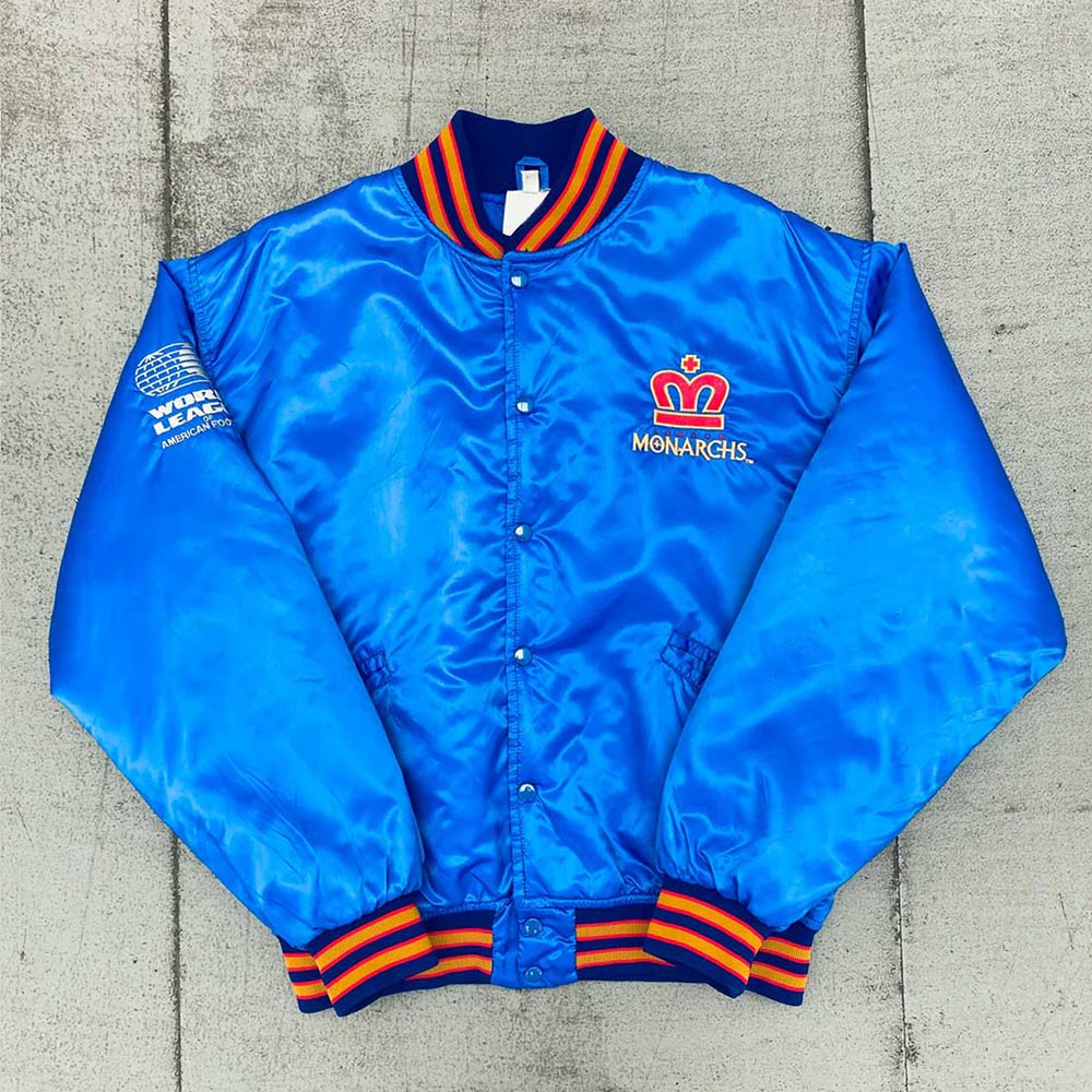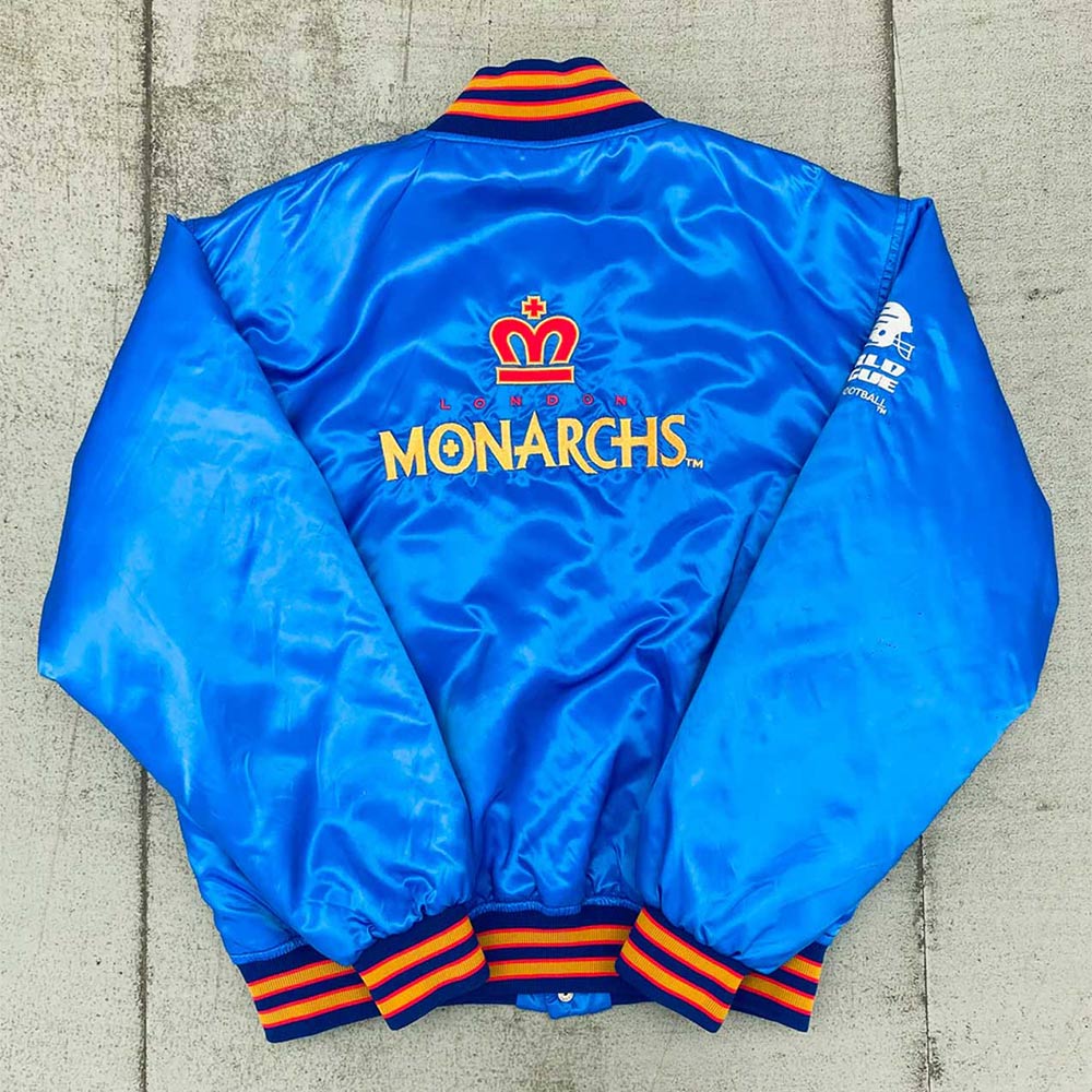 The London Monarchs of football had been a league winning team before their disbandment in 1992 and this Spell Out London Monarchs 1992 Jacket will ensure fans remain triumphant in style. This jacket is made of satin material and comes in royal blue rich color to bring out an elegant classy looks. The design of the jacket is so special that it brings some nostalgia of the legendary football team, which makes it ideal for fans and collectors.