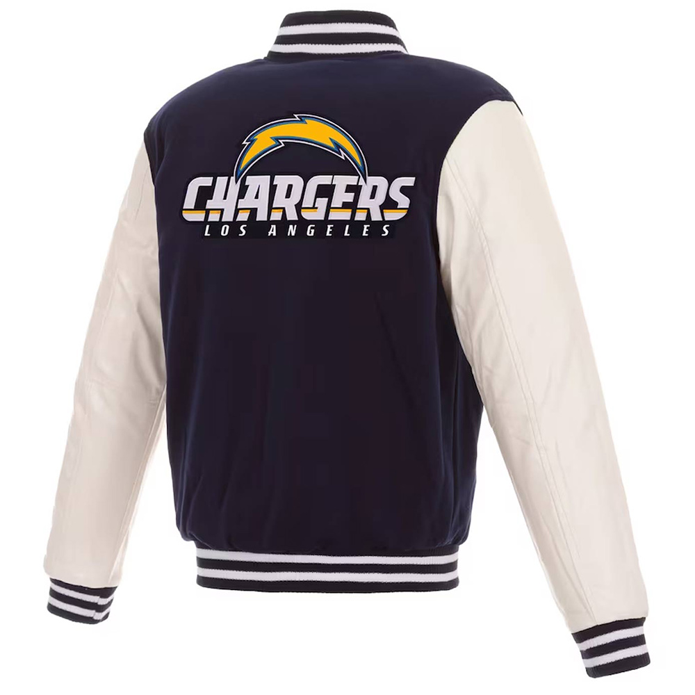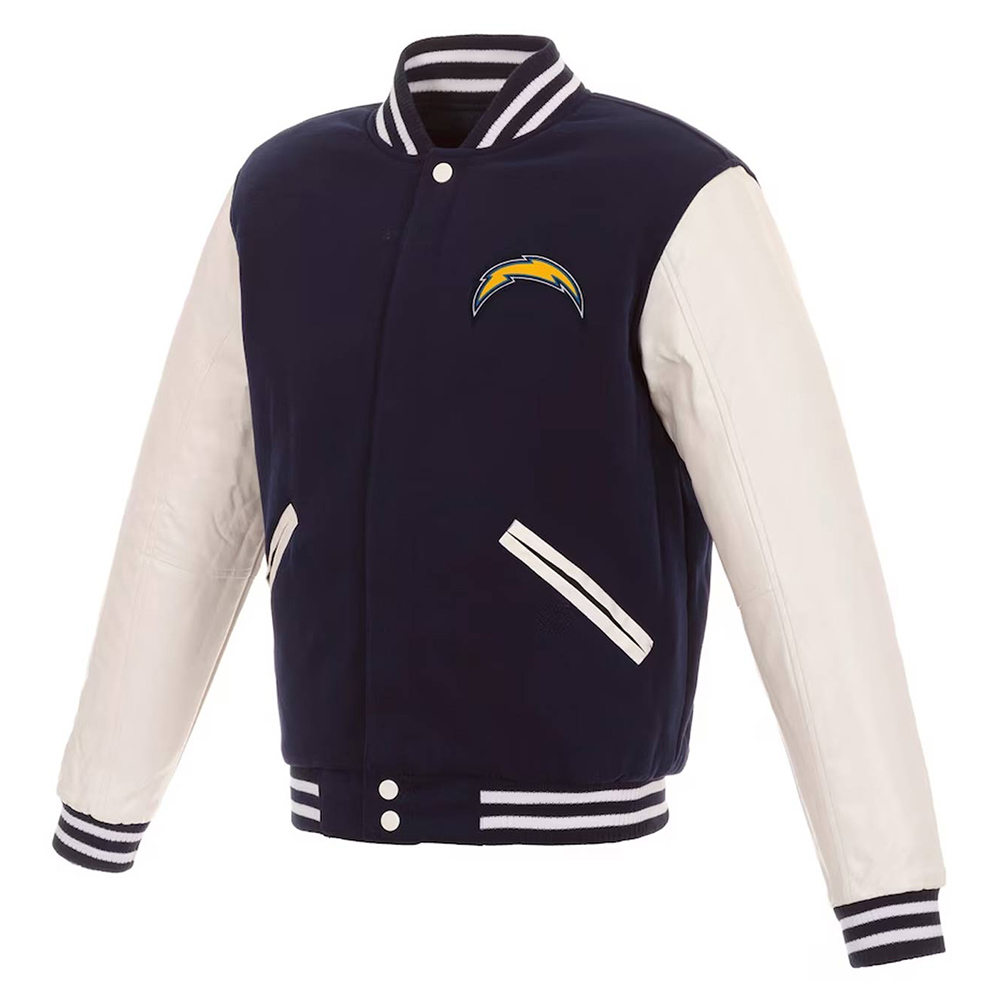 Los Angeles Chargers Navy and White Varsity Full-Snap Wool/Leather Jacket
