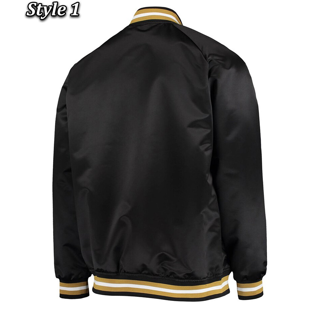 The jacket comes in a striking black color that reflects modern fashion while remaining timeless. A rib-knitted collar paired with a snap-tab front closure gives it the authentic bomber vibe that fans love. Inside, the soft viscose lining ensures warmth and comfort, making it a perfect companion for both stadium nights and casual outings.
