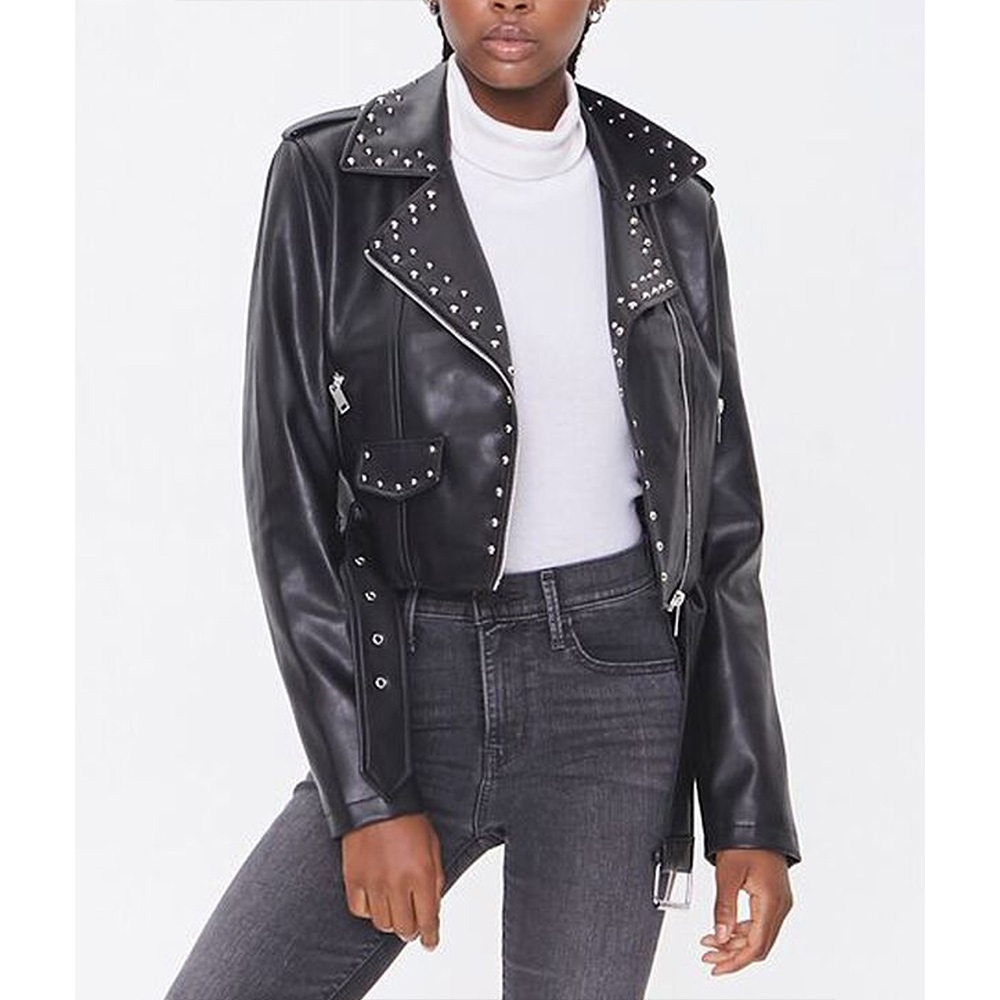 Embrace the allure of the Rory Studded Leather jacket meticulously crafted with high-quality genuine leather. Its mesmerizing black color brings forth an innovative and dazzling aesthetic. Sporting lapel style collar and asymmetrical Zipper front closure, this Lucifer S06 Brianna Hildebrand Studded Leather jacket seamlessly blends style and functionality. The soft viscose inner lining ensures warmth and relaxation. With long sleeves adorned with open hem cuffs, a comfortable and sophisticated fit is guaranteed. The Rory Studded Leather jacket boasts two inner and two side pockets, providing ample storage options. Experience comfort and desirability with its fine quality stitching, making it the perfect choice for parties.
