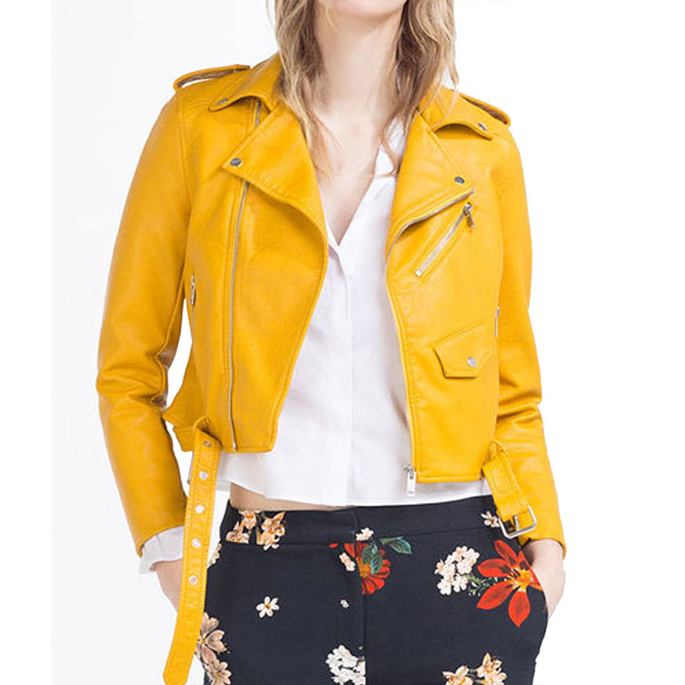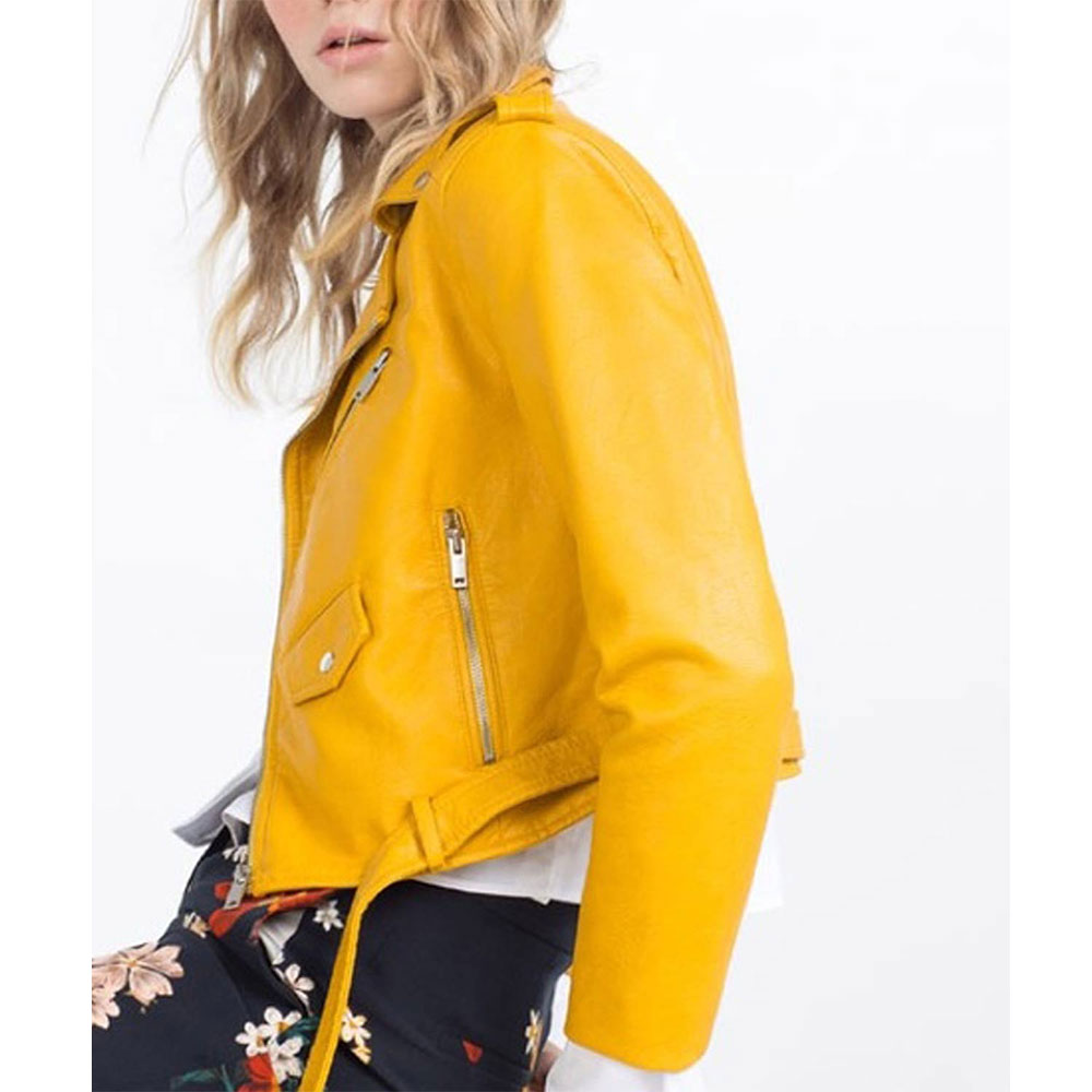 Embrace the allure of the Rory Yellow Leather jacket meticulously crafted with high-quality genuine leather. Its glorious yellow color brings forth an innovative and attractive aesthetic. Sporting lapel style collar and asymmetrical Zipper front closure, this Lucifer Season 6 Brianna Hildebrand Yellow Leather jacket seamlessly blends style and functionality. The soft viscose inner lining ensures warmth and relaxation. With long sleeves adorned with open hem cuffs, a comfortable and sophisticated fit is guaranteed. The Rory Yellow Leather jacket boasts two inner and two side pockets, providing ample storage options. Experience comfort and desirability with its fine quality stitching, making it the perfect choice for parties.