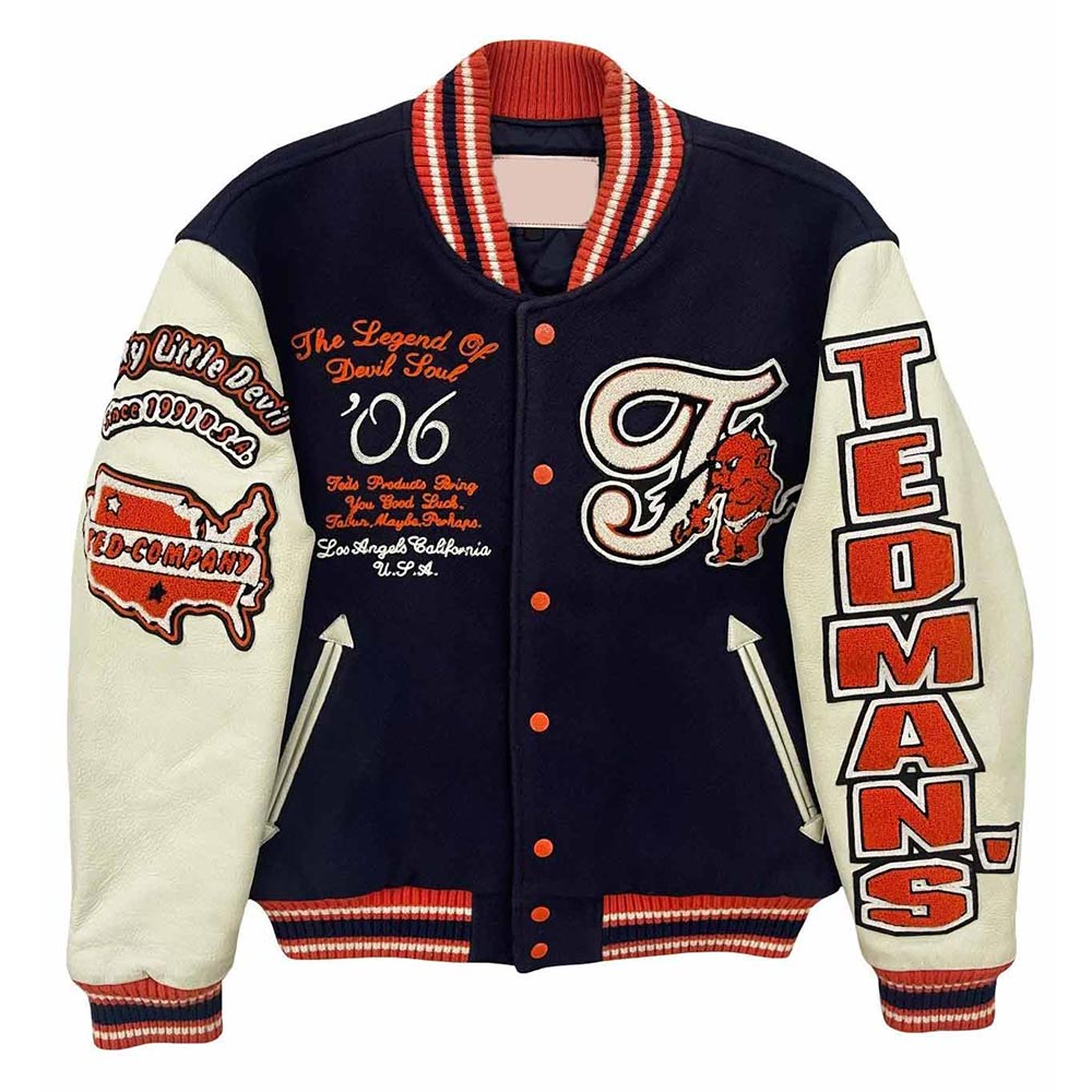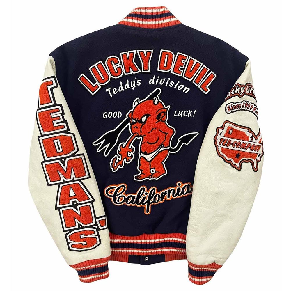 Unleash your rebellious style with the Wool/Leather Letterman Lucky Devil Tedman Varsity Jacket. This devilishly stylish masterpiece combines premium wool and leather for an edgy, high-quality look. The iconic design and attention to detail make it a standout piece in any wardrobe. Whether you’re channeling a retro vibe or making a contemporary fashion statement, this jacket is your key to standout style. Elevate your fashion game with a touch of devilish charm and high-quality craftsmanship. It’s not just a lucky devil varsity jacket; it’s a symbol of individuality and rebellious spirit, perfect for those who dare to defy conventional fashion norms.