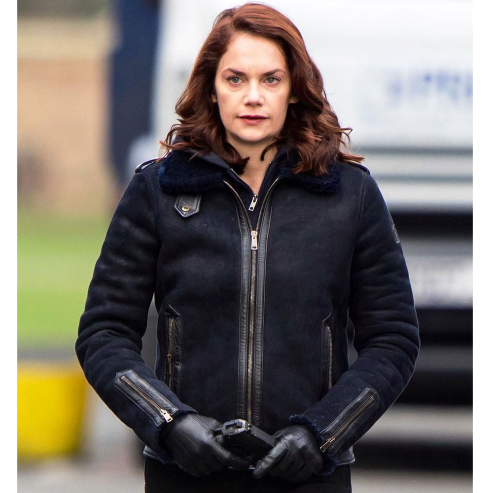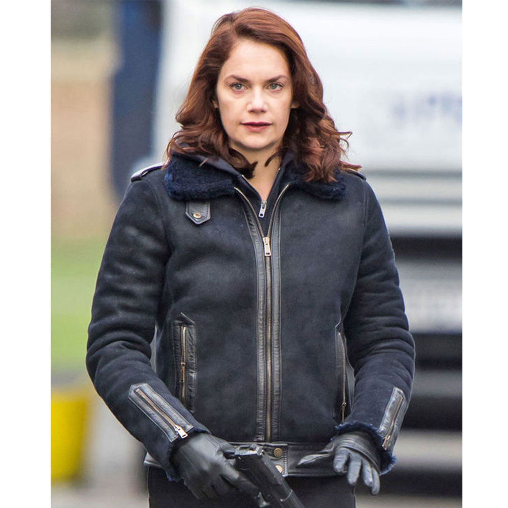 Ruth Wilson Luther Alice Morgan Shearling Suede Black Jacket