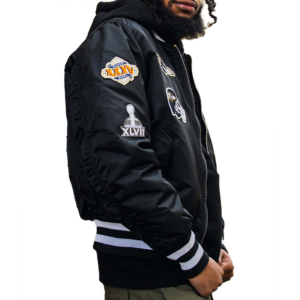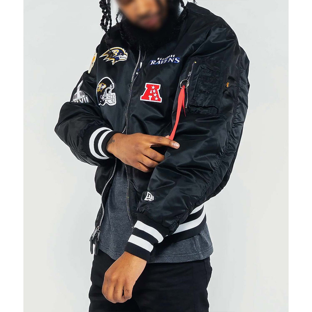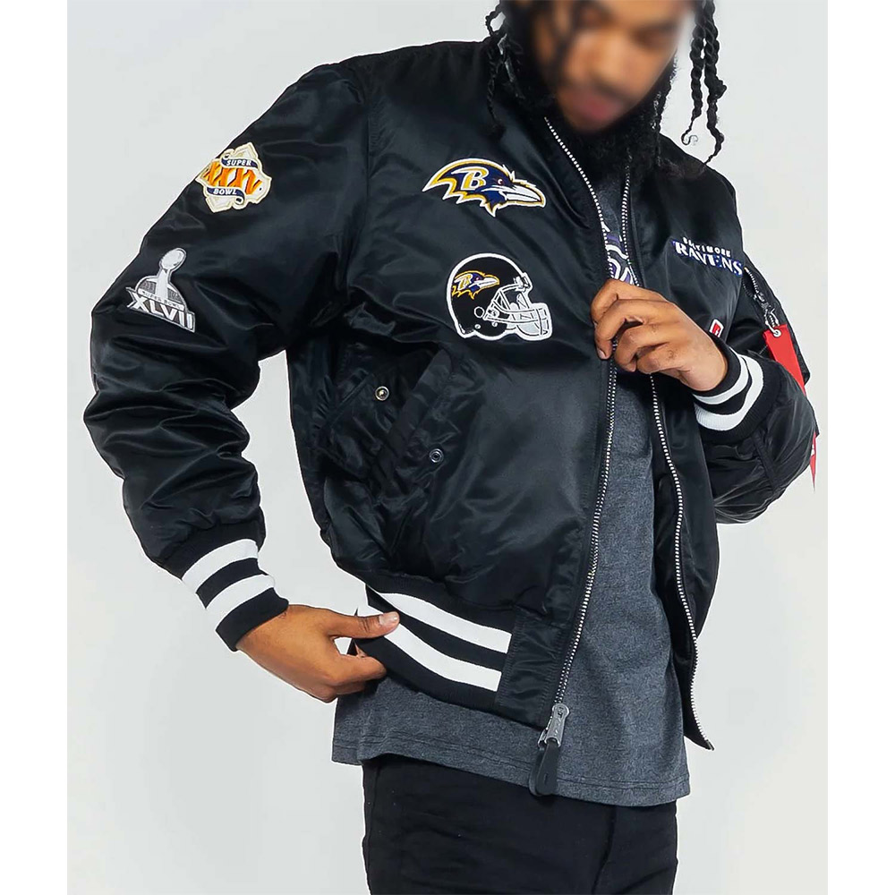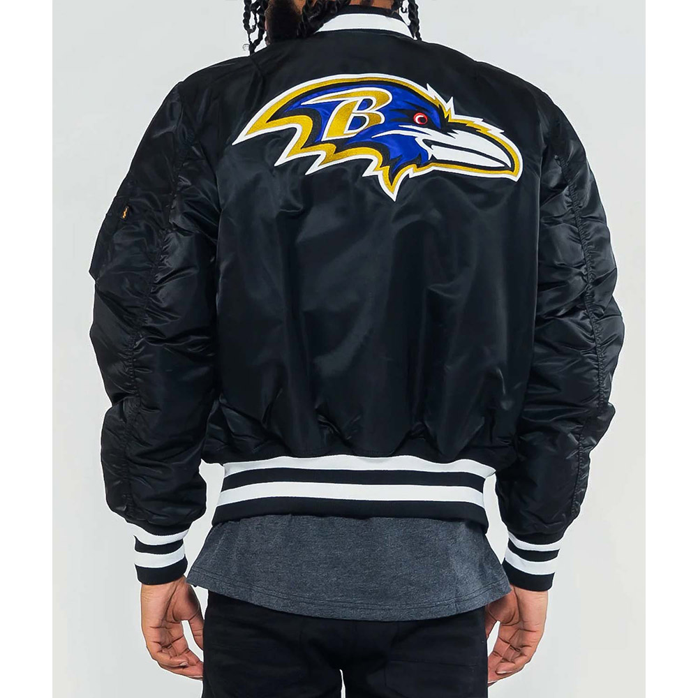 Baltimore Ravens MA-1 Black Satin Bomber Jacket