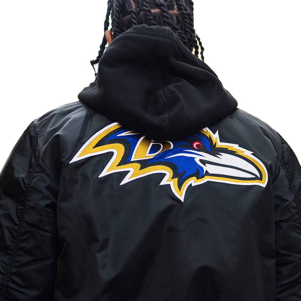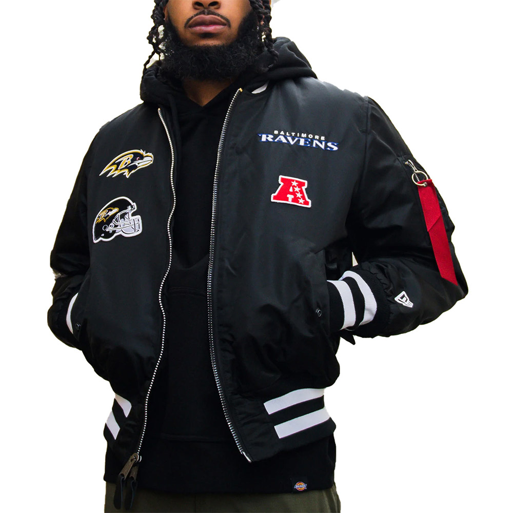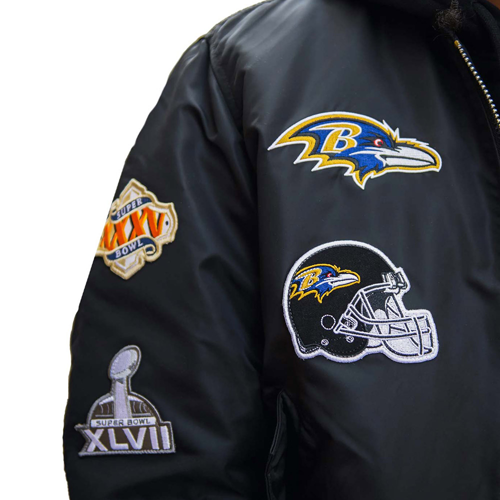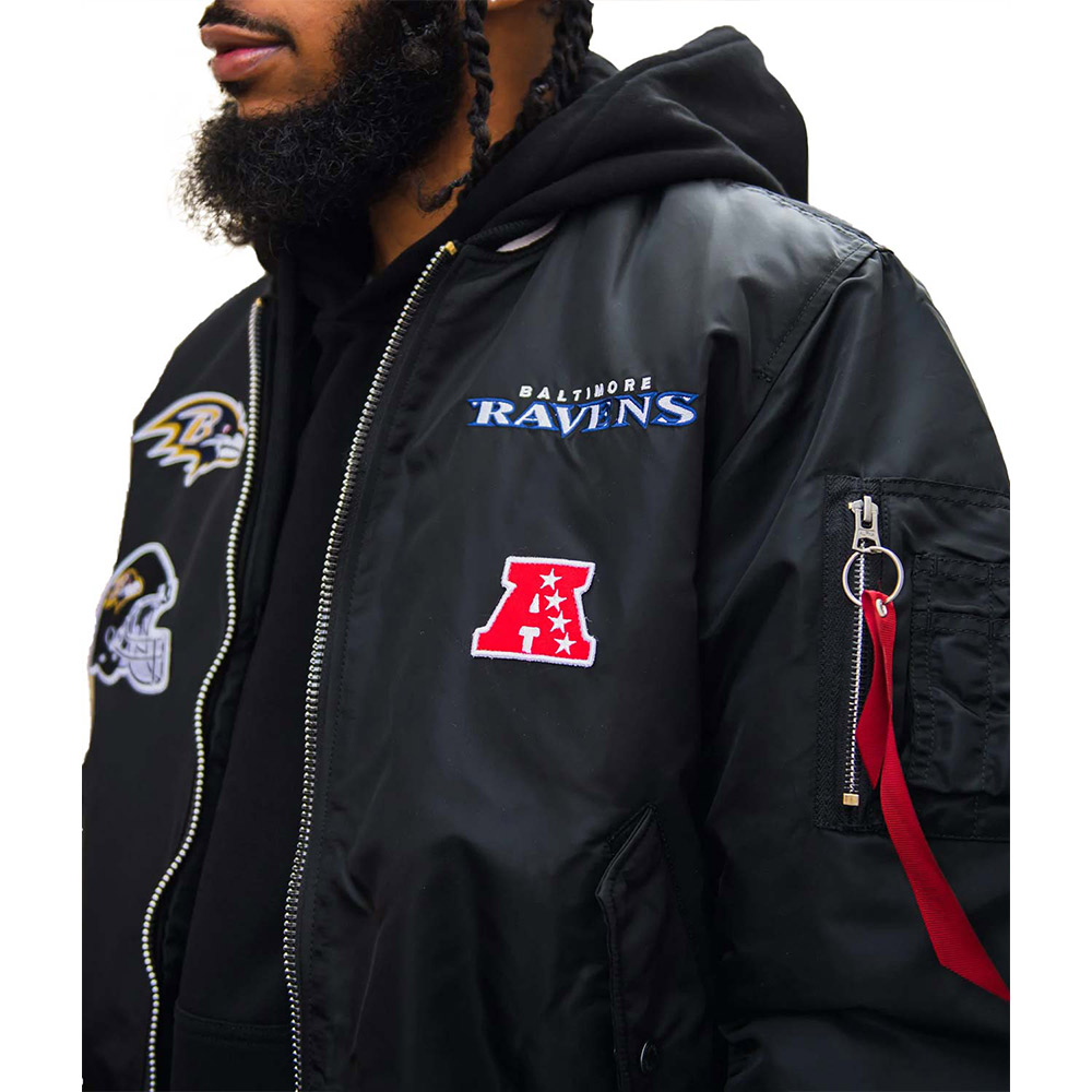 Baltimore Ravens MA-1 Black Satin Bomber Jacket