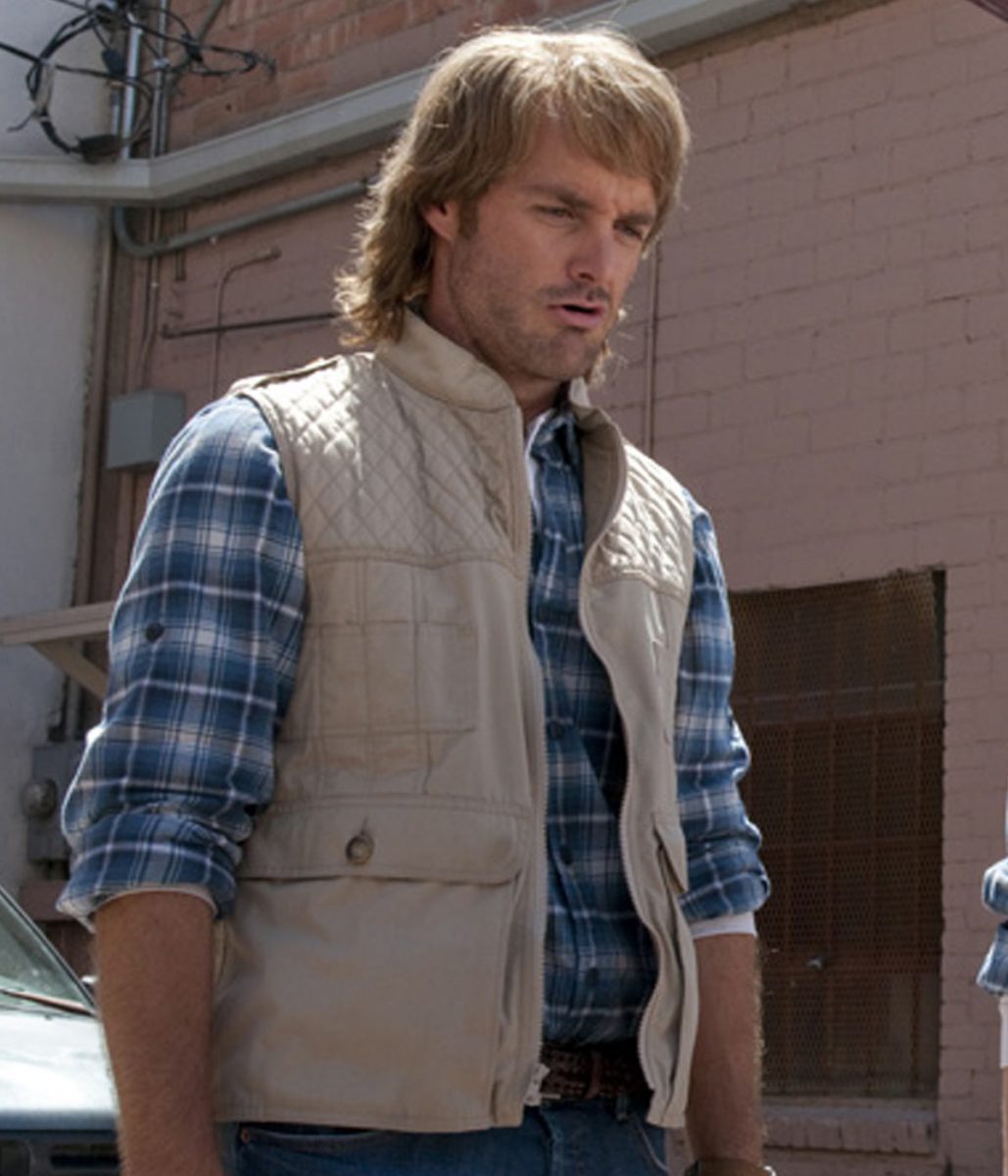 The Will Forte Macgruber vest is made from high-quality cotton. The vest is available in a glorious off-white color which gives it an innovative and attractive look. The collar of the vest is stand-up style. It has a branded YKK zipper front closure. A soft viscose inner lining of the vest keeps you warm and relaxed. The fine quality stitching of the Macgruber Will Forte vest makes it durable and comfortable to wear. The vest is an ideal choice for a night out with friends.