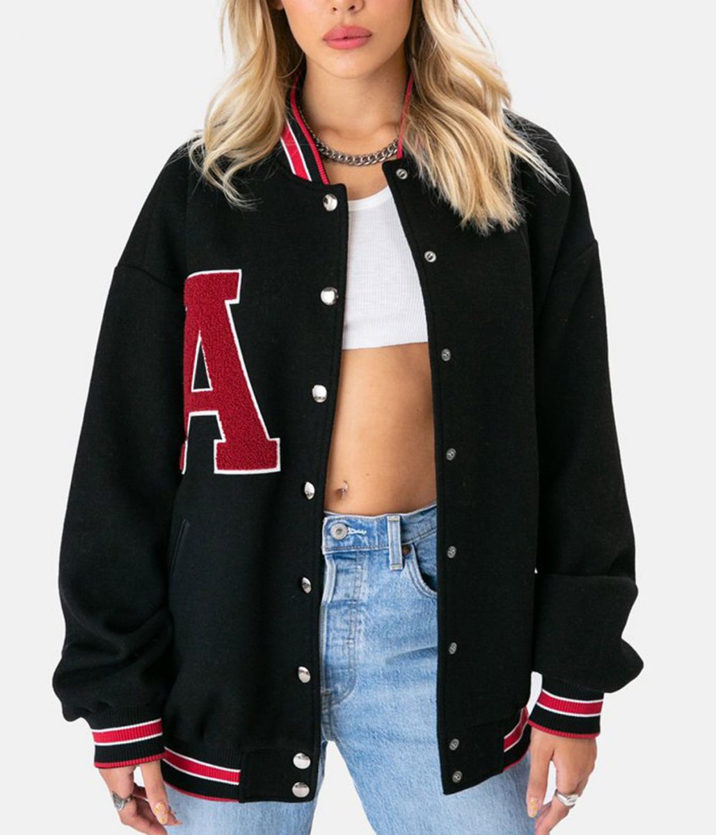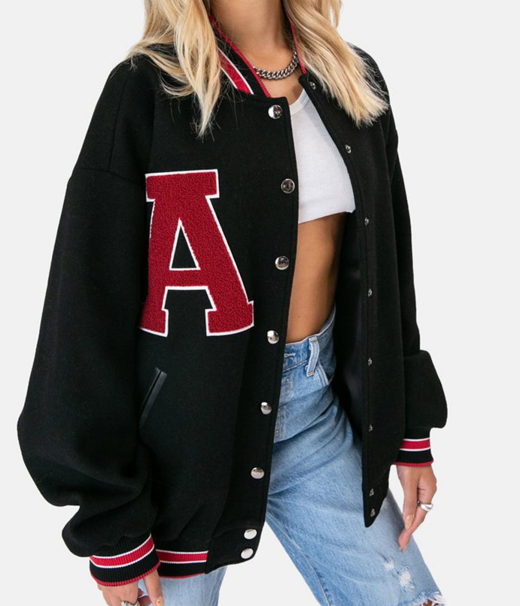 The outside of the Adika Varsity Jacket is fabricated from wool while its inside has a soft viscose lining which provides flamboyance and solace. The glorious black jacket has a rib-knitted collar with a buttoned closure. The sleeves of the Maddox Varsity Jacket are full with rib-knitted cuffs. To keep things the jacket has two side waist pockets. The rib-knitted hemline and the letter A on the chest are its eye-catching features. The Maddox Adika Varsity Jacket is finely stitched with the perfection of every detail.