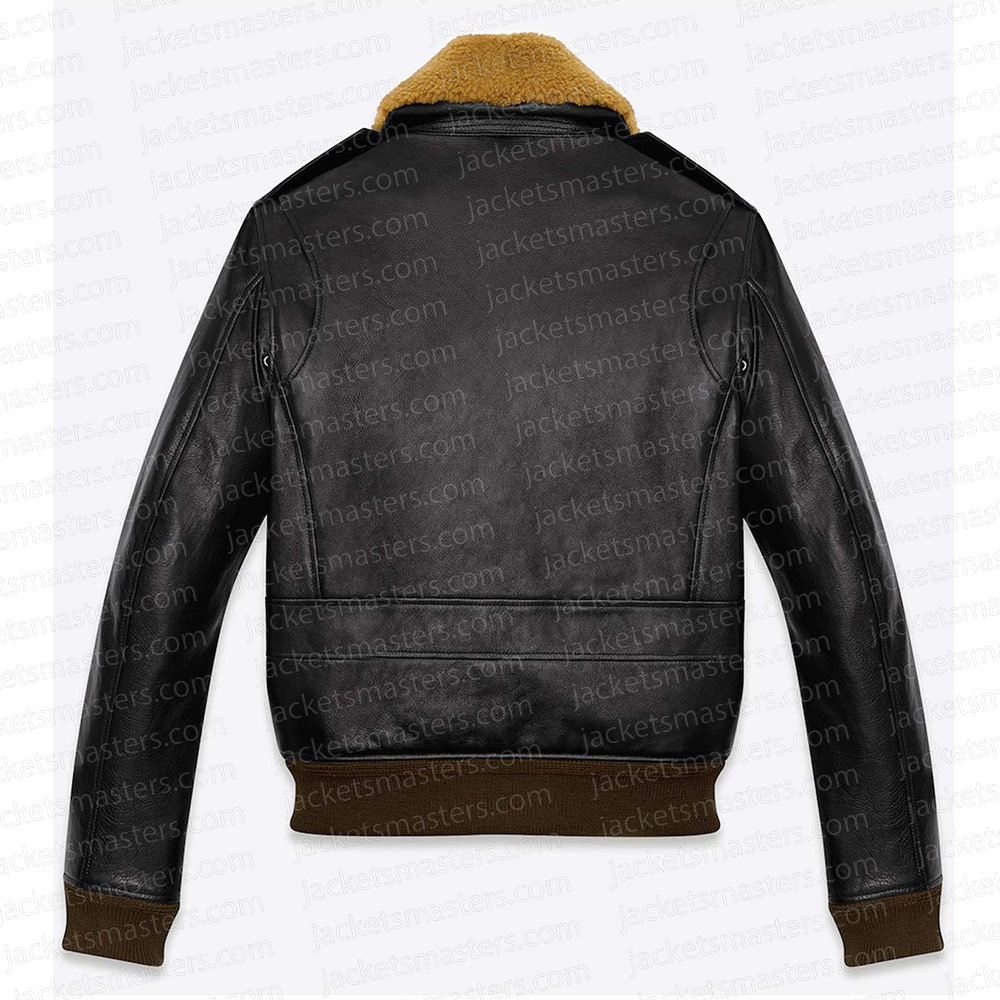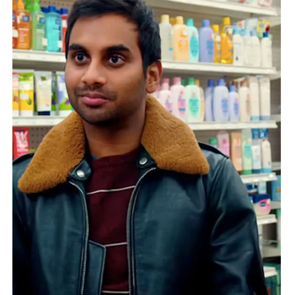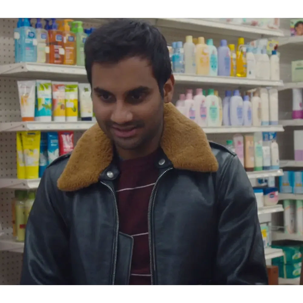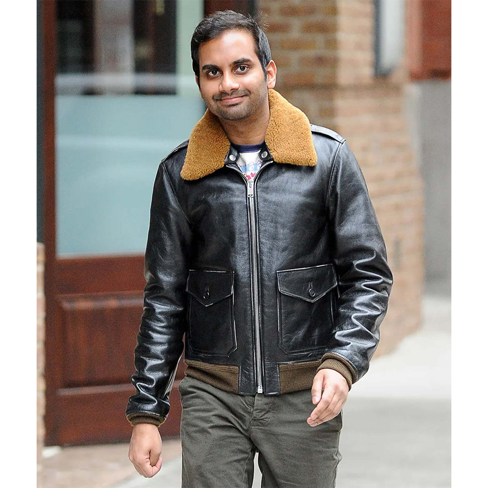 Master of None Dev Bomber Black Leather Jacket with Fur Collar