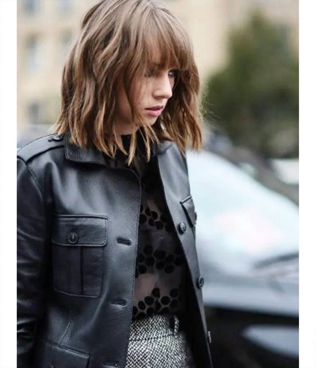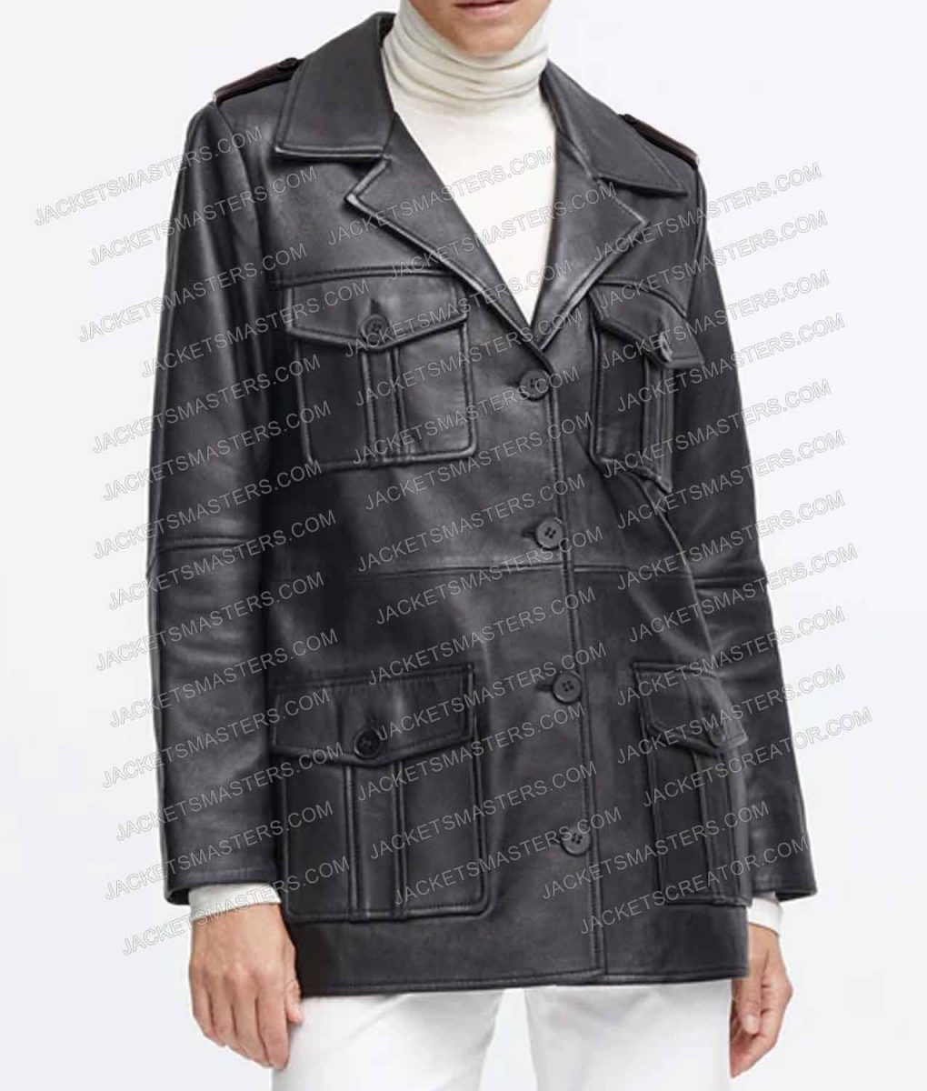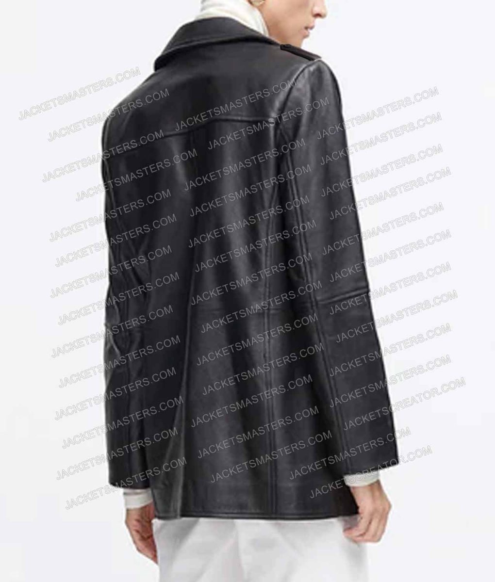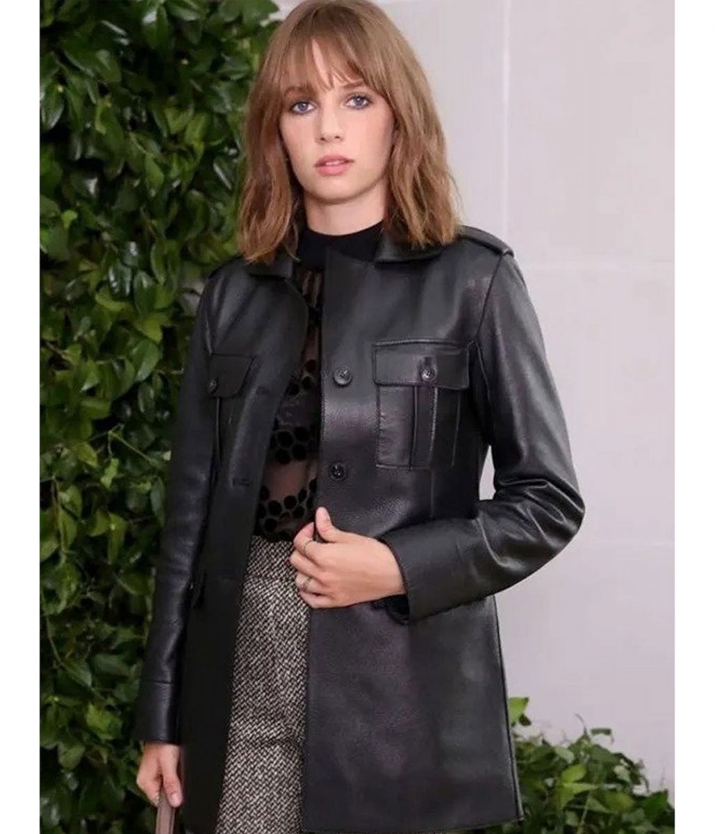Maya Hawke Stranger Things Black Mid Length Leather Coat