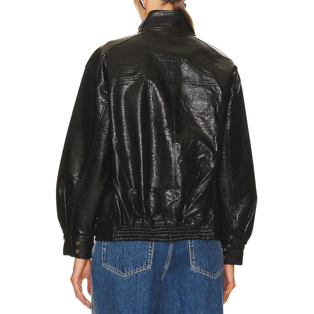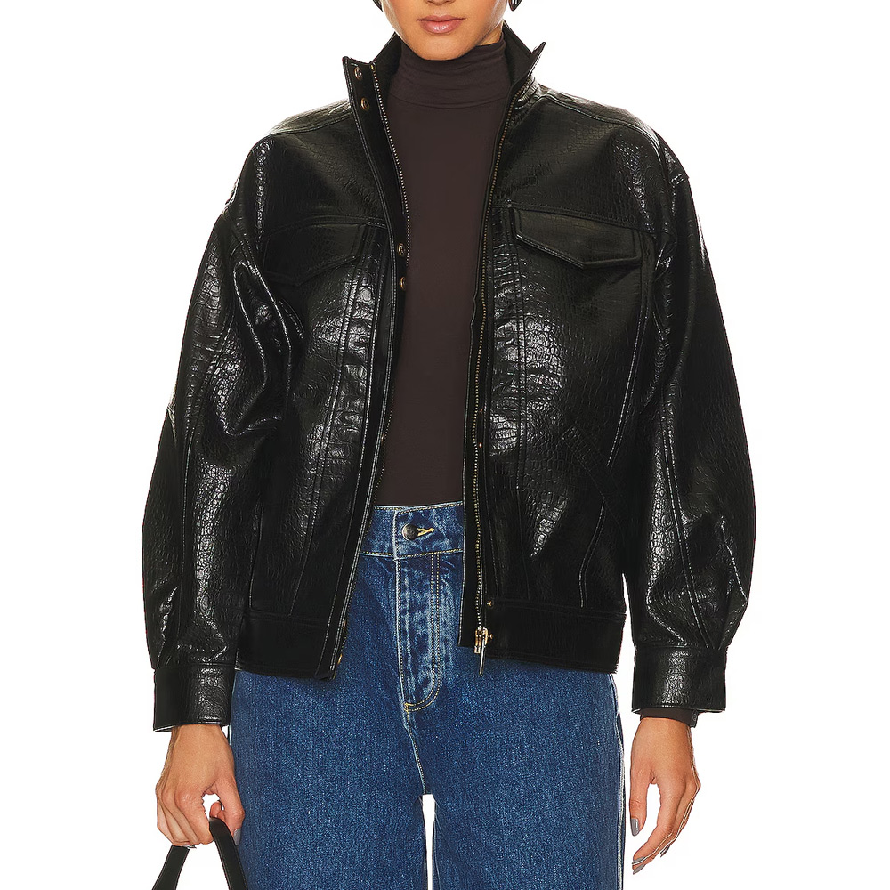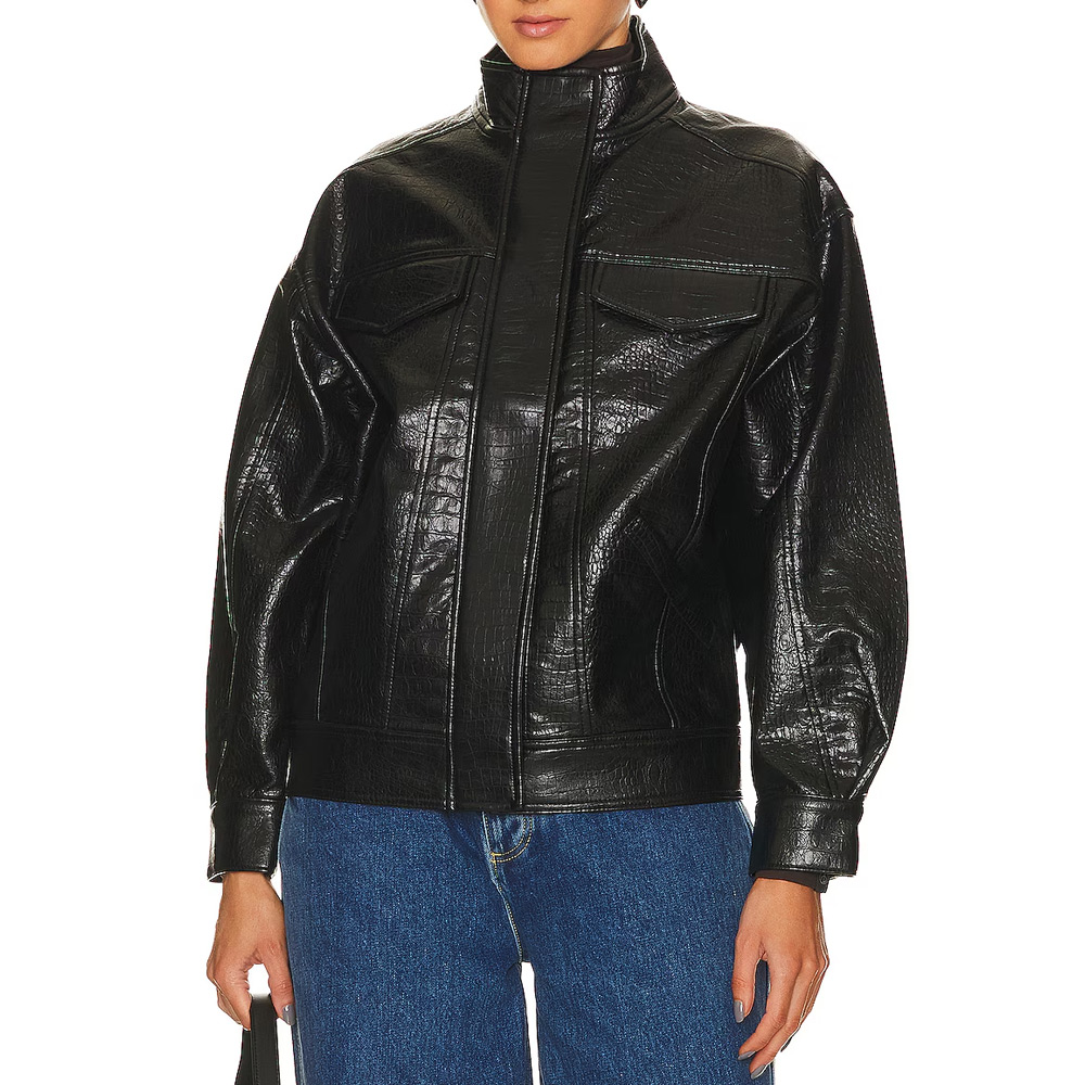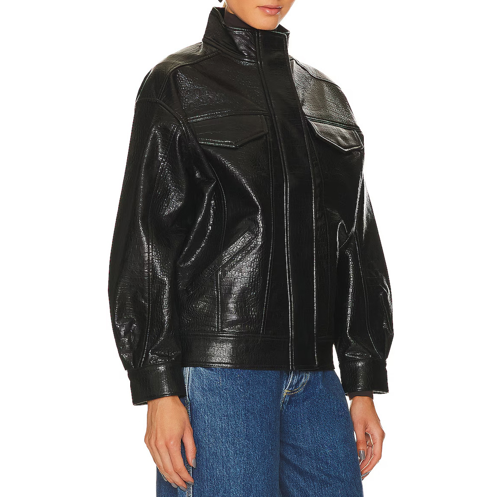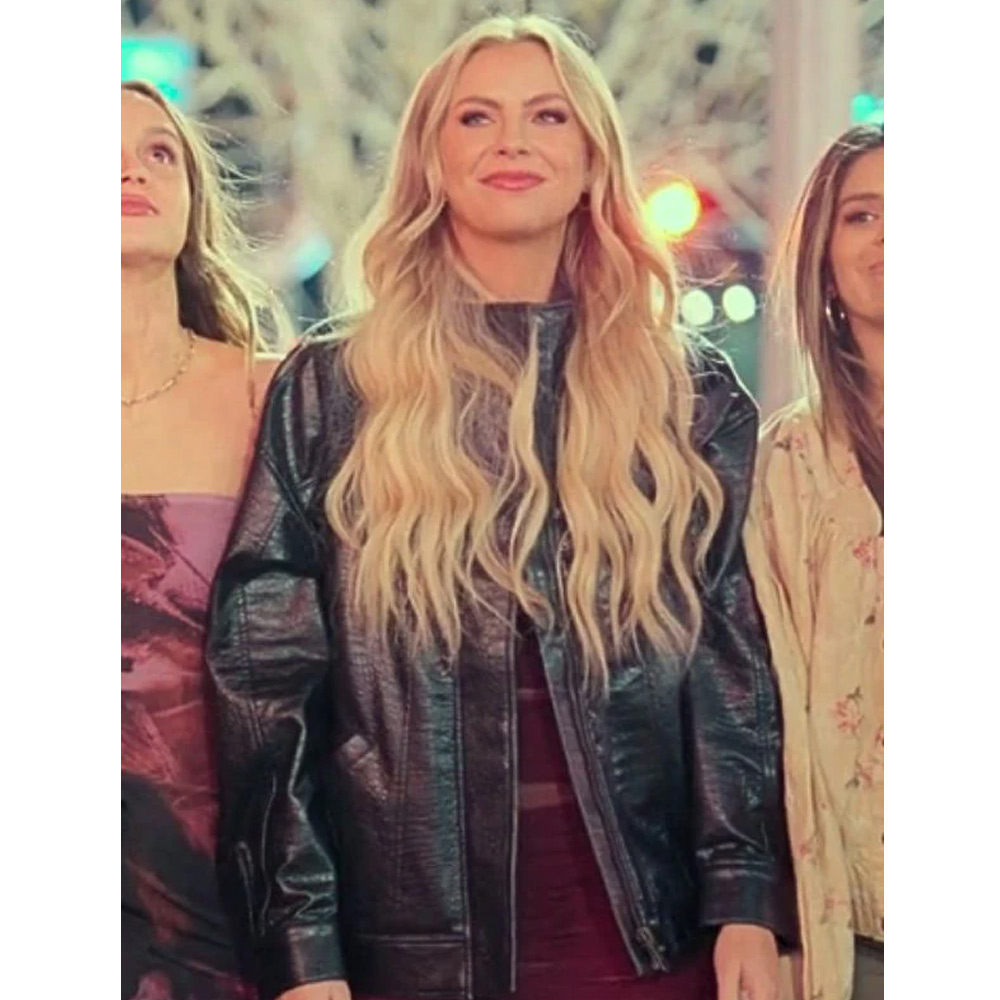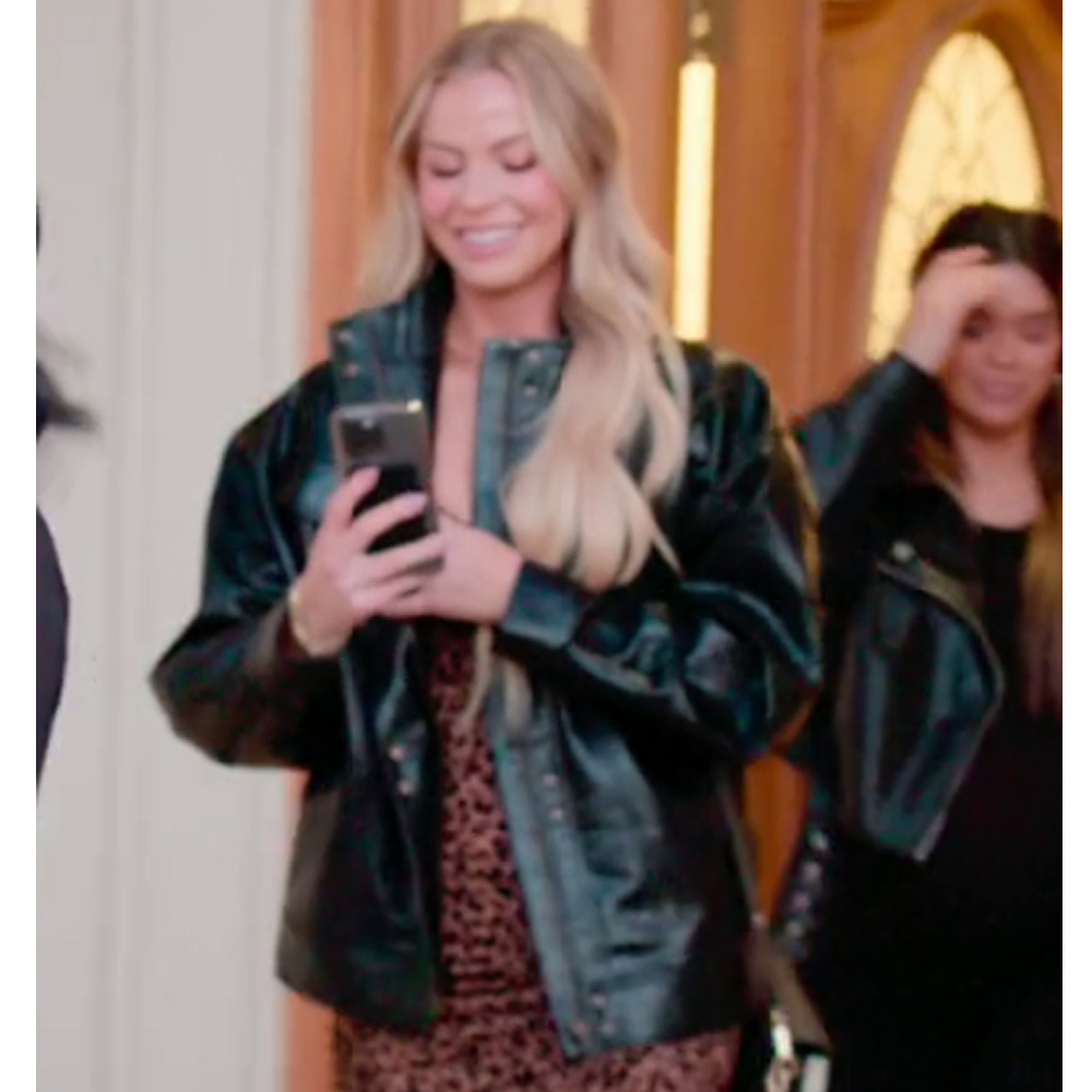 The Secret Lives of Mormon Wives Mayci Neeley Black Faux Bomber Leather Jacket