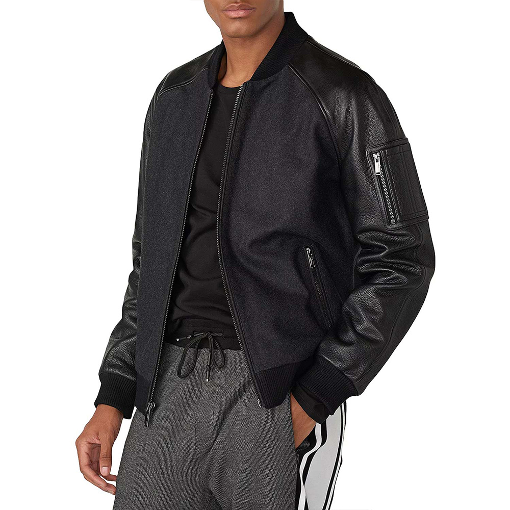 Introducing the Extra Melvin Robert Varsity Jacket, where comfort meets edge in a distinctive blend of wool and genuine leather. Inspired by Extra and worn by Melvin Robert, this bomber jacket in classic black is a statement of contemporary style. The rib-knitted collar, cuffs, and hemline add a sporty touch, while the branded YKK zipper closure enhances both style and functionality. The long sleeves, made from genuine leather, provide a sleek silhouette, combining luxury and urban appeal. The soft viscose lining ensures comfort, and with two side pockets and one inner pocket, this Melvin Robert Extra Varsity Jacket seamlessly marries fashion with practicality, making Extra Melvin Robert Varsity Jacket a standout piece in your wardrobe.
